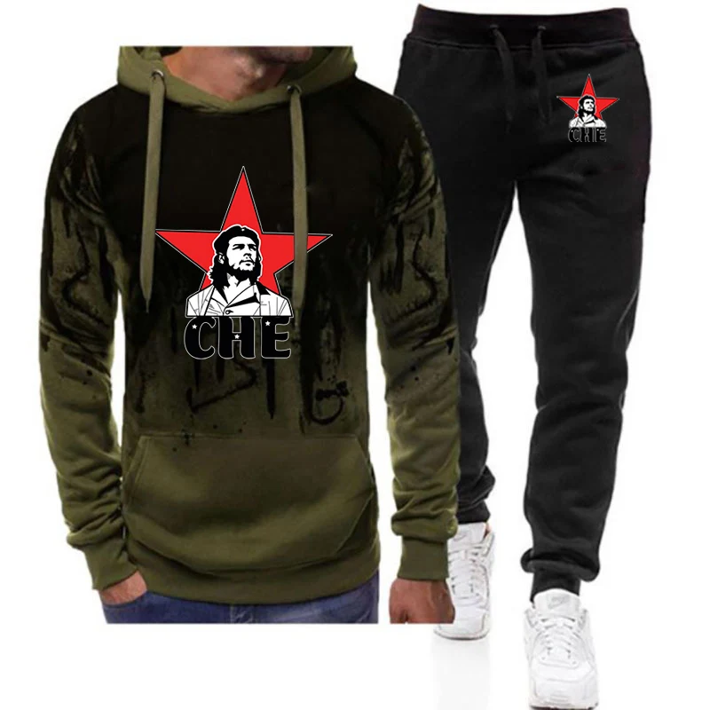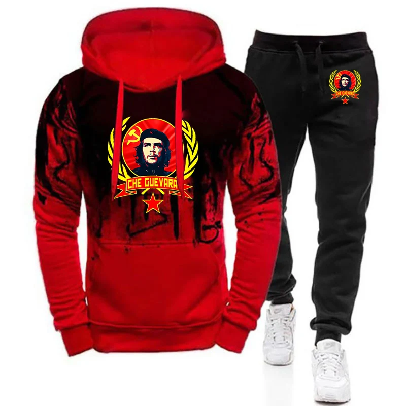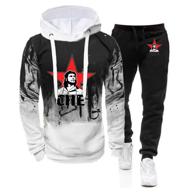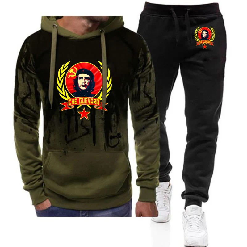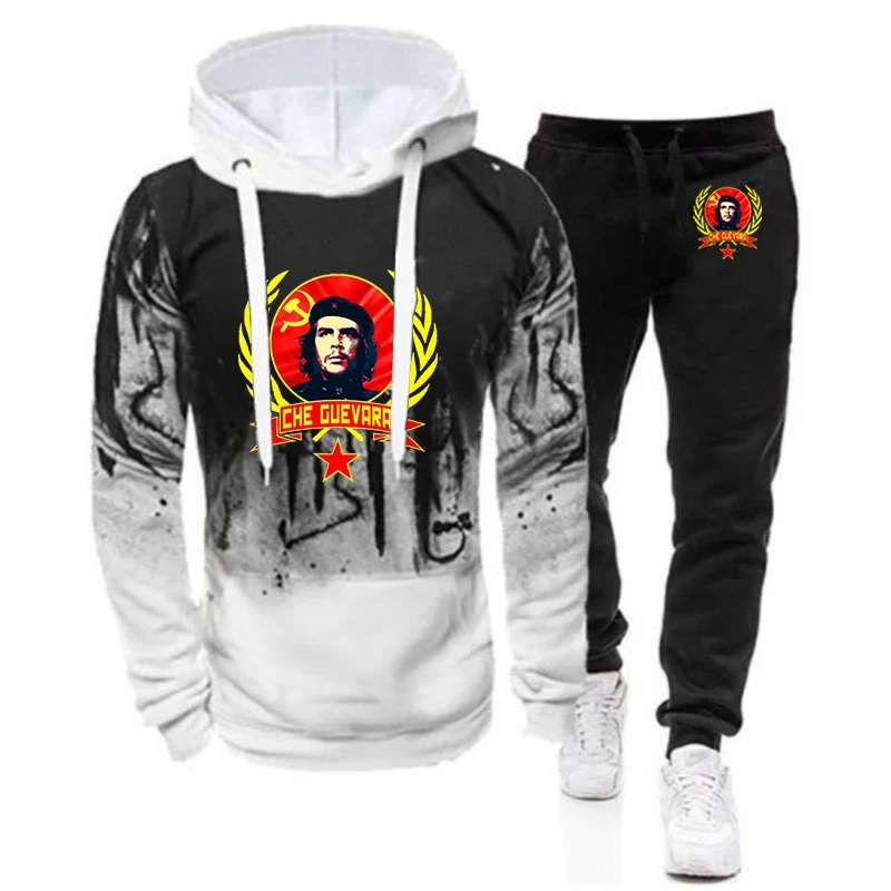 2025 Che Guevara Uomo Rebel Cuban Guerrilla Revolution Moda Primavera Autunno Tute Felpa con cappuccio sfumata + Pantaloni sportivi Harajuku Suit