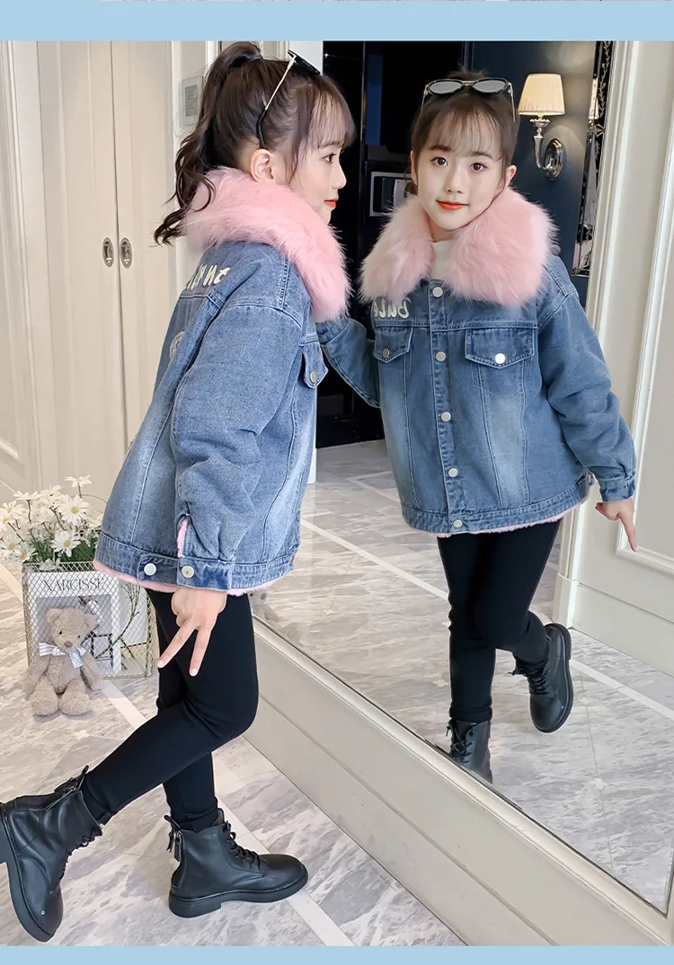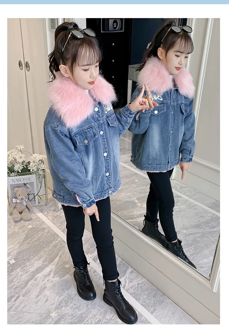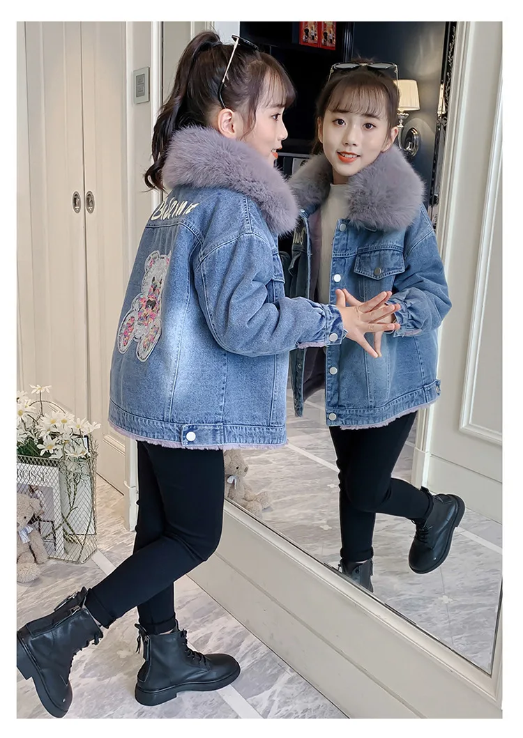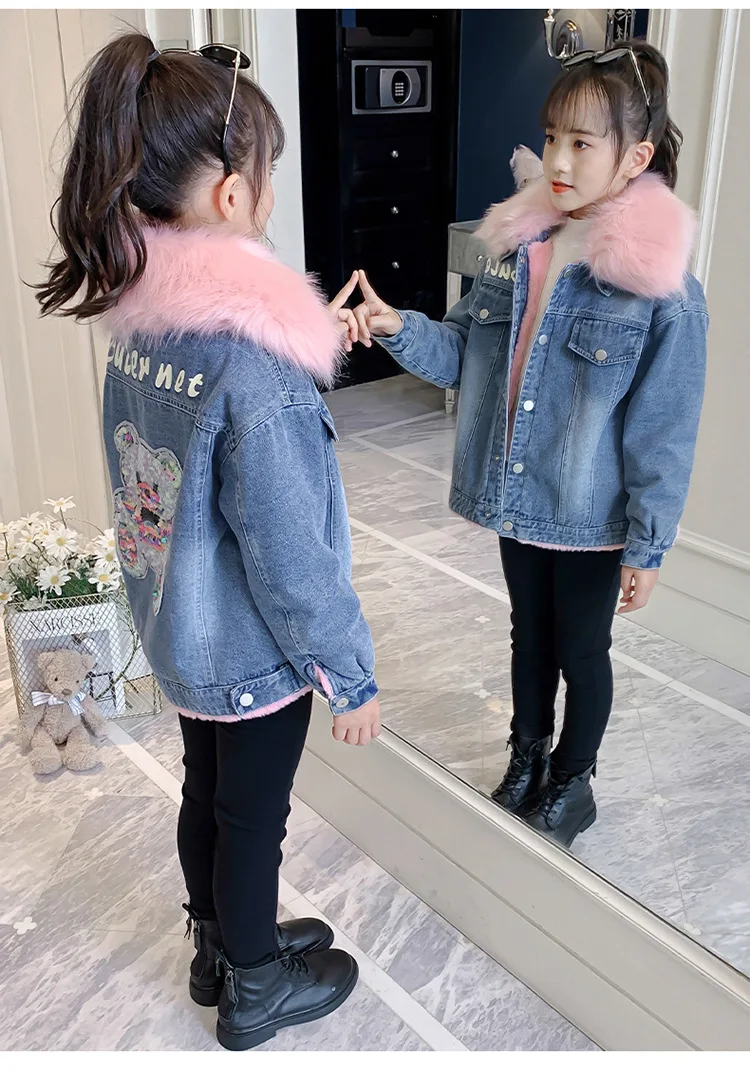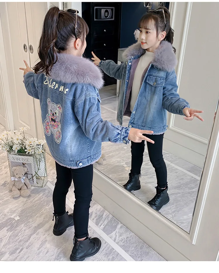 2025 coreano inverno ragazza giacca di jeans cartone animato orso con paillettes più velluto ragazza tuta sportiva cappotto 3-14 anni bambini adolescente Parka 12025 coreano inverno ragazza giacca di jeans cartone animato orso con paillettes più velluto ragazza tuta sportiva cappotto 3-14 anni bambini adolescente Parka