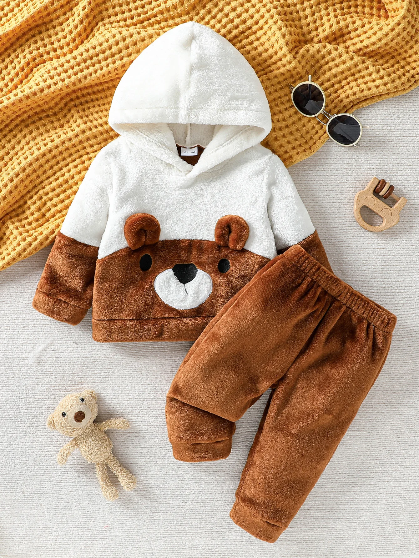 2025 Cute Baby Boys e Girls 2PCS Set di abbigliamento modello cartone animato con cappuccio a maniche lunghe in peluche vestito invernale caldo per 0-1Y