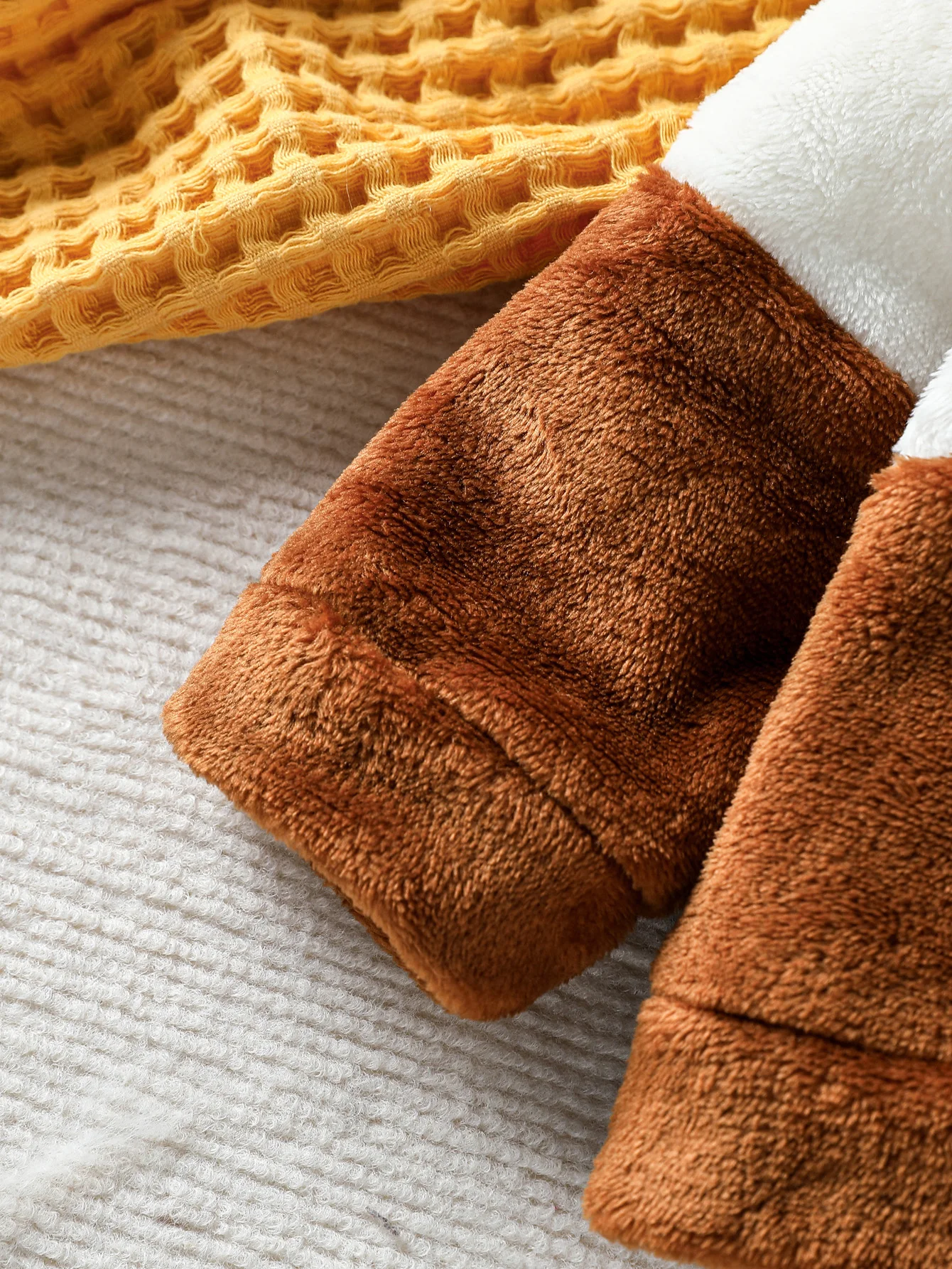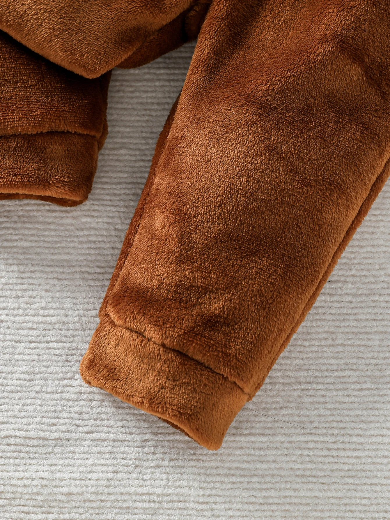 2025 Cute Baby Boys e Girls 2PCS Set di abbigliamento modello cartone animato con cappuccio a maniche lunghe in peluche vestito invernale caldo per 0-1Y