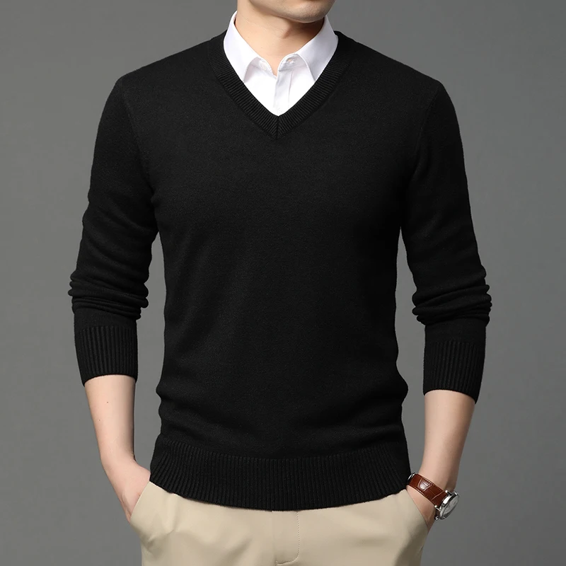 2025 di alta qualità nuovo marchio di moda pullover in maglia di lana maglione con scollo a V nero per uomo autunno inverno maglione casual abbigliamento da uomo 12025 di alta qualità nuovo marchio di moda pullover in maglia di lana maglione con scollo a V nero per uomo autunno inverno maglione casual abbigliamento da uomo