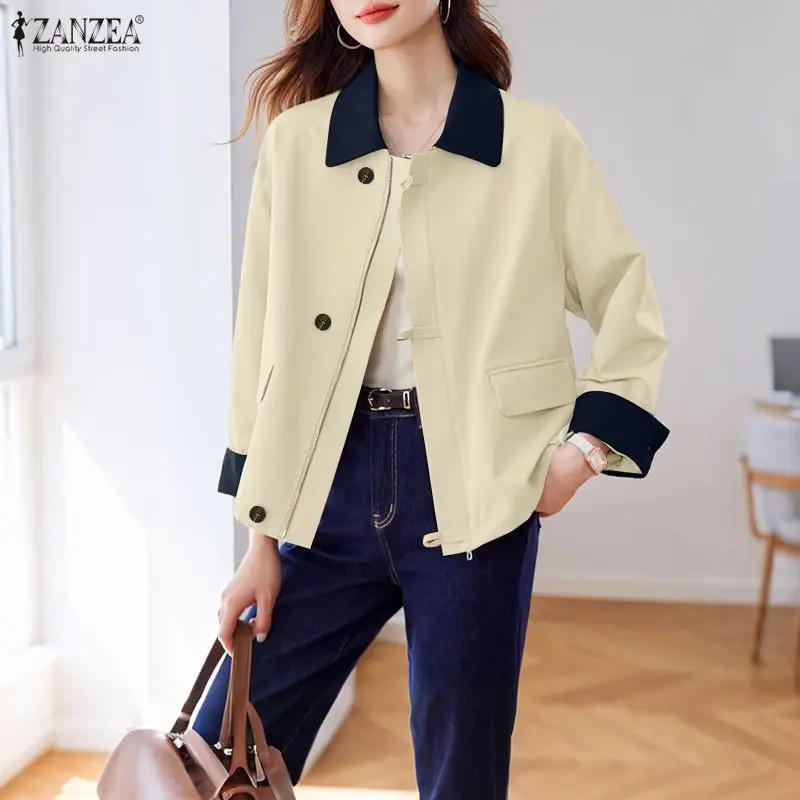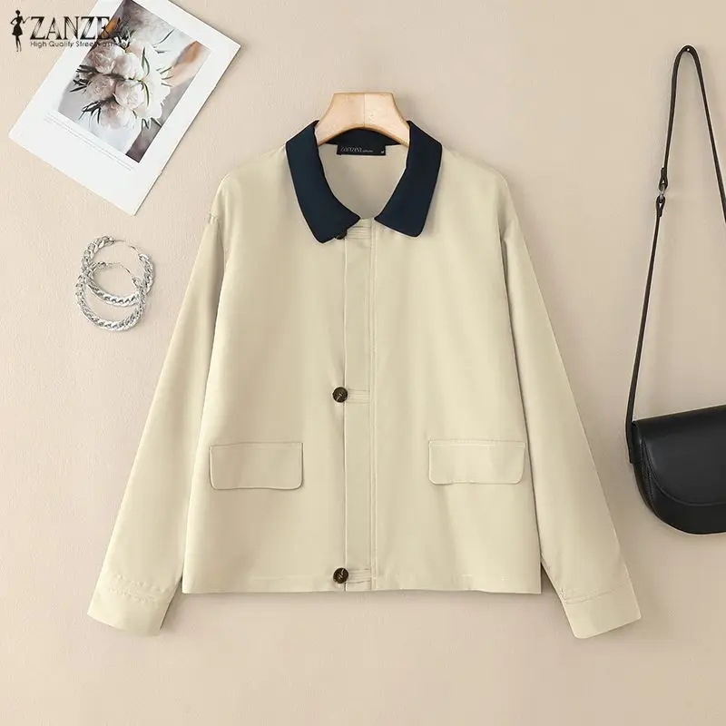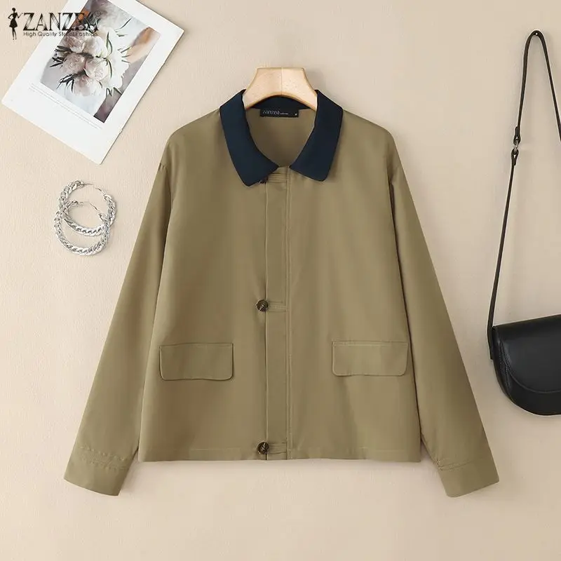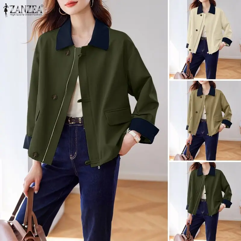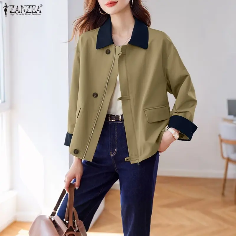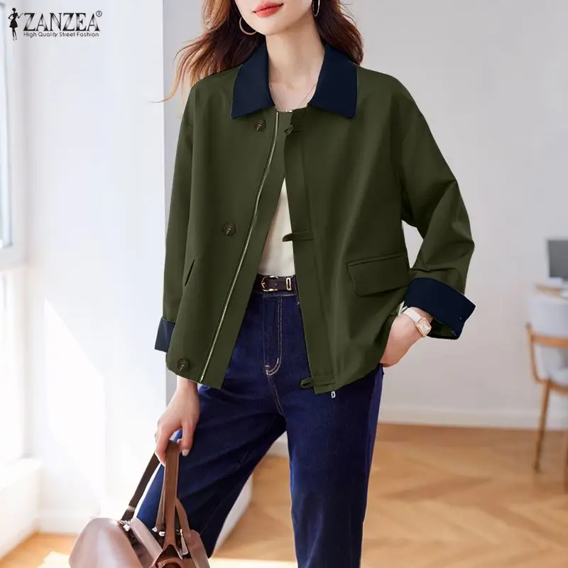 2025 Donne alla moda Giubbotti ZANZEA Autunno Cappotti Donna Cerniera Outwear Risvolto Collo Manica lunga Giubbotti Casual Pactwork OL Cappotti da lavoro 12025 Donne alla moda Giubbotti ZANZEA Autunno Cappotti Donna Cerniera Outwear Risvolto Collo Manica lunga Giubbotti Casual Pactwork OL Cappotti da lavoro