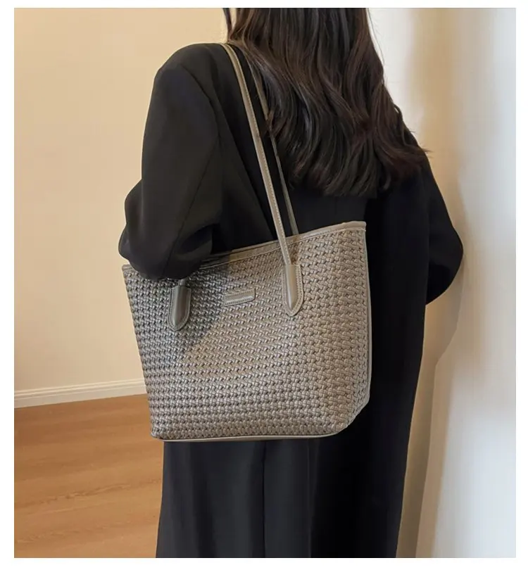 Borse casual da donna 2025 Nuove borse a tracolla di grande capacità Texture Borse tote in pelle PU brillante per borse eleganti a catena da donna
