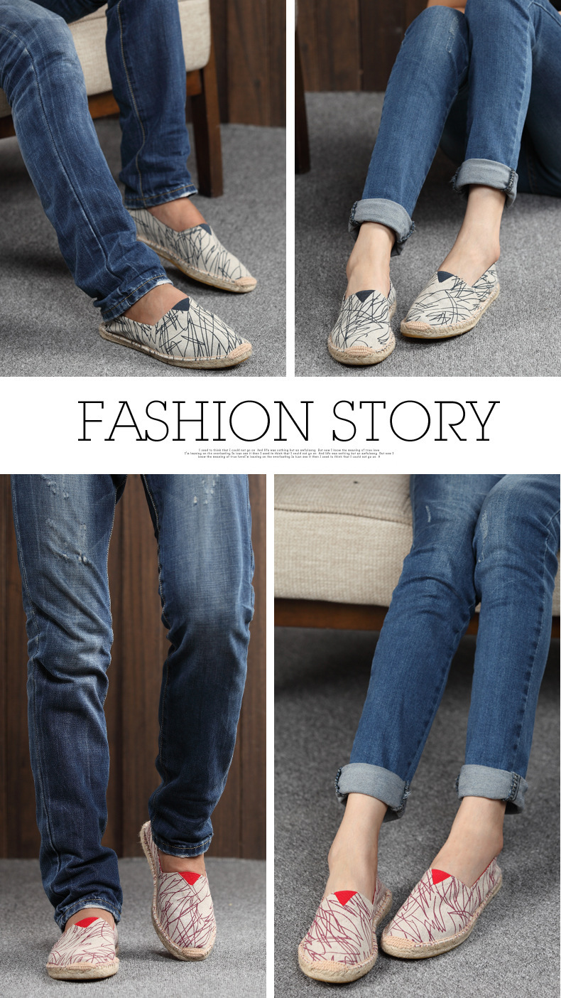 2025 Estate Autunno Uomo Scarpe di tela Scarpe casual da uomo traspiranti Slip-On Scarpe di canapa Graffiti Espadrillas Calzature da donna Appartamenti