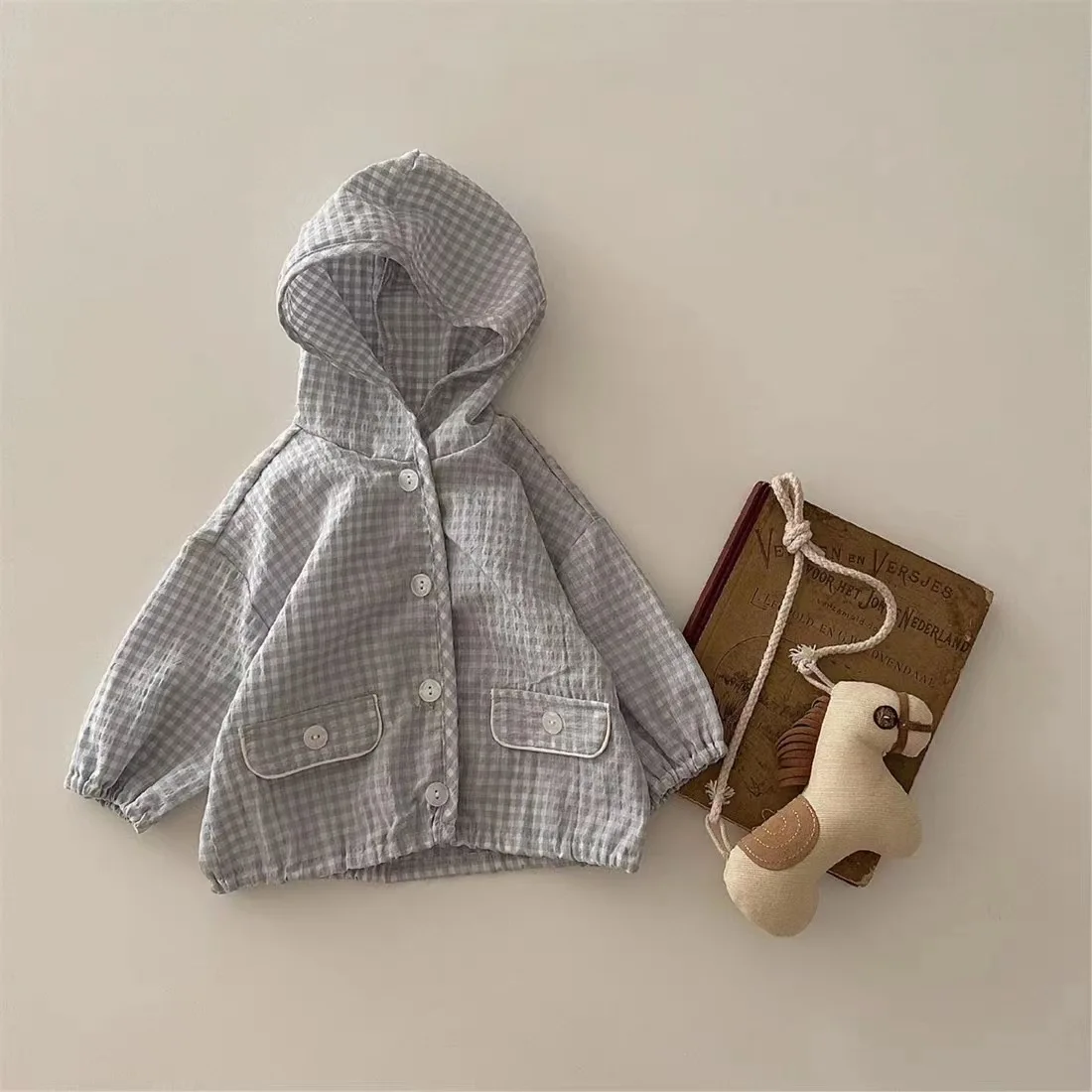 2025 Estate Nuovo Bambino Manica Lunga Protezione Solare Giacca Infantile Ragazza Plaid Con Cappuccio Protezione Solare Cappotto Bambino Ragazzo Sottile Cardigan Traspirante