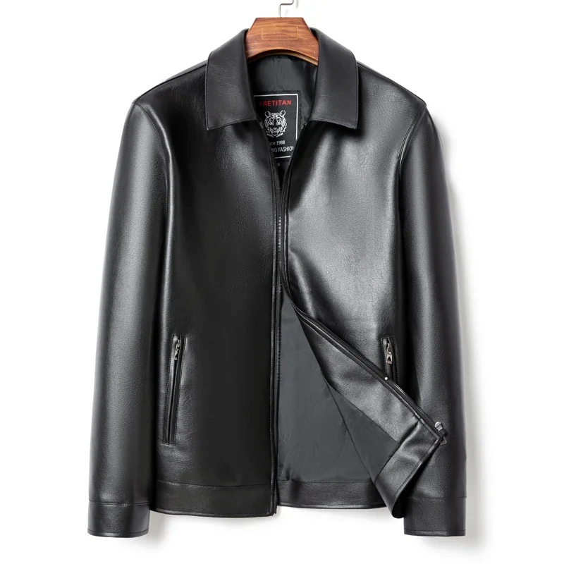 2025 Giacca da uomo in pelle con cerniera risvolto casual tendenza moda