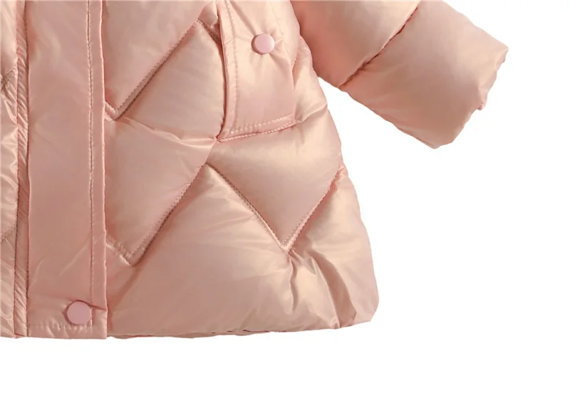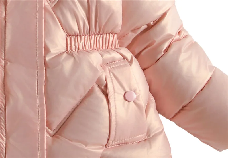 2025 Giacca invernale per ragazze Fodera in tinta unita Peluche spesso caldo lucido Parka con cappuccio impermeabile per ragazze 4-8 anni Tuta da neve in cotone