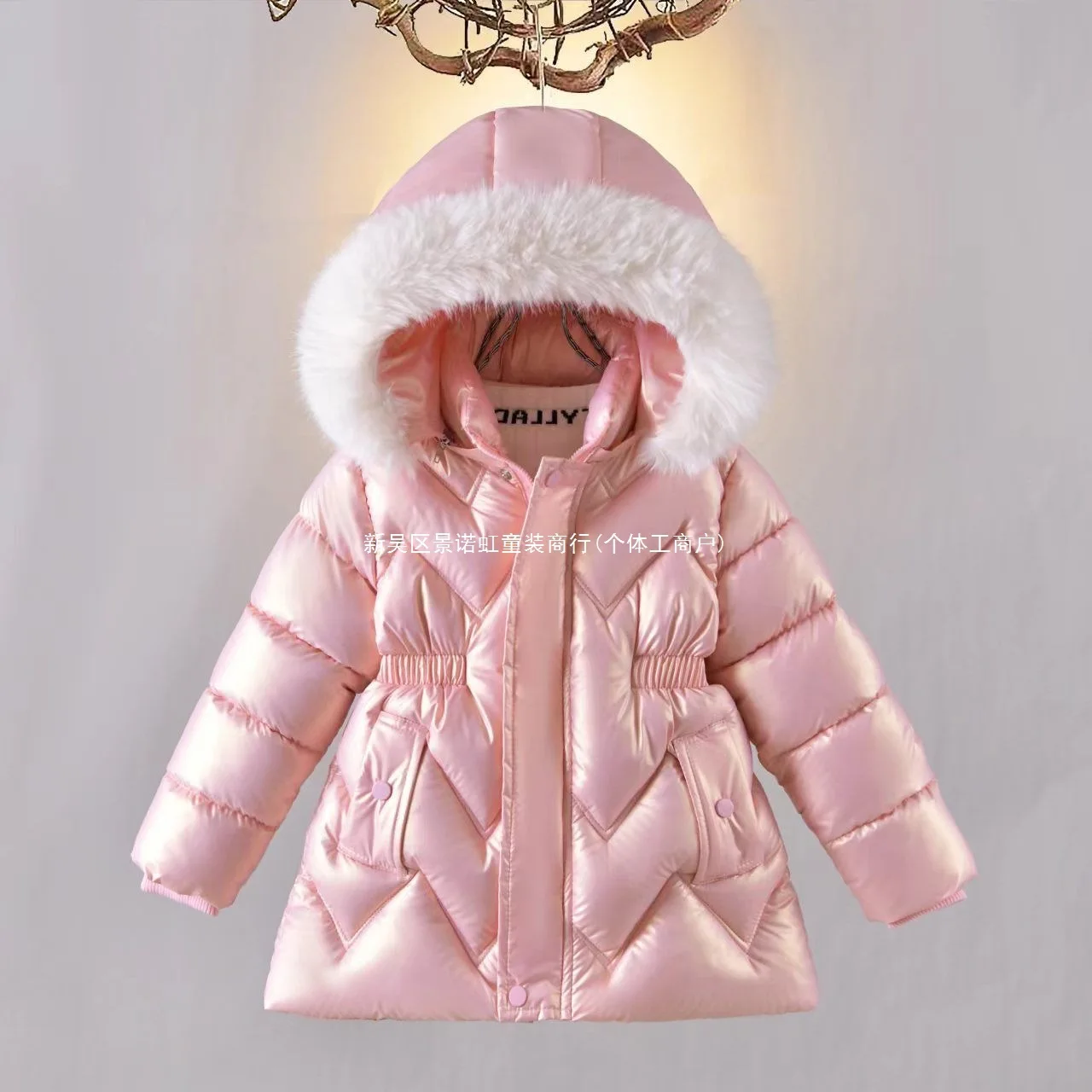 2025 Giacca invernale per ragazze Fodera in tinta unita Peluche spesso caldo lucido Parka con cappuccio impermeabile per ragazze 4-8 anni Tuta da neve in cotone 12025 Giacca invernale per ragazze Fodera in tinta unita Peluche spesso caldo lucido Parka con cappuccio impermeabile per ragazze 4-8 anni Tuta da neve in cotone