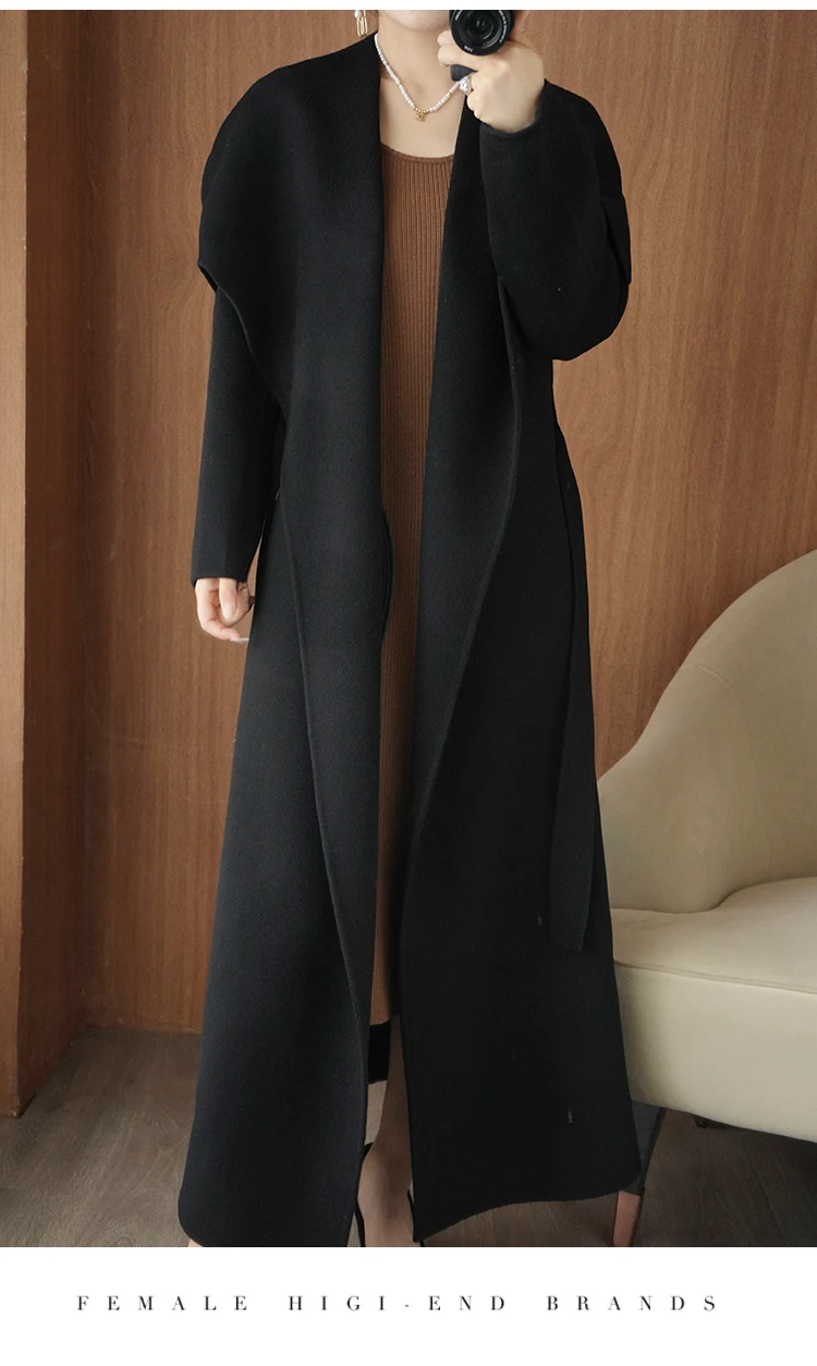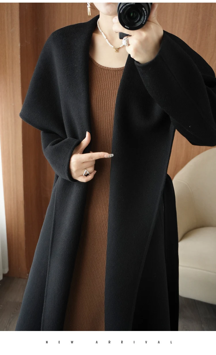 2025 Giacca lunga double face spessa 100% cashmere da donna Moda classica multifunzionale adatta per le imprese