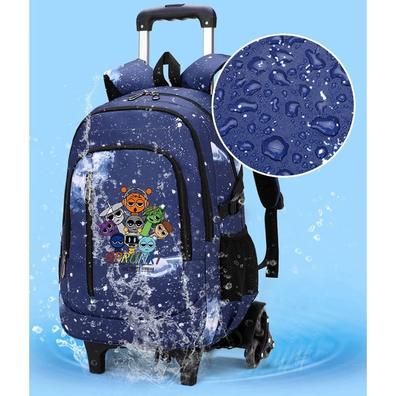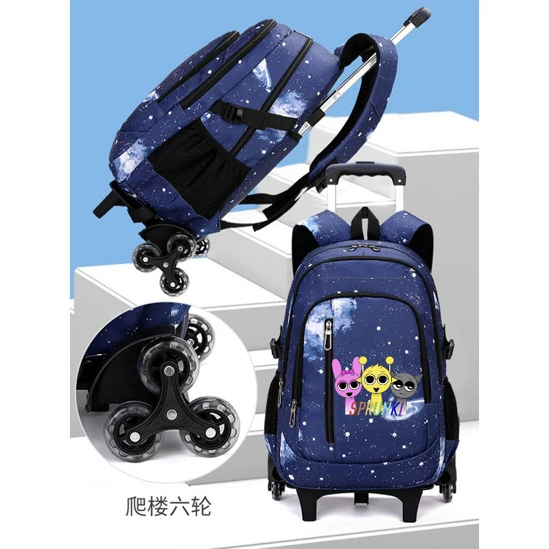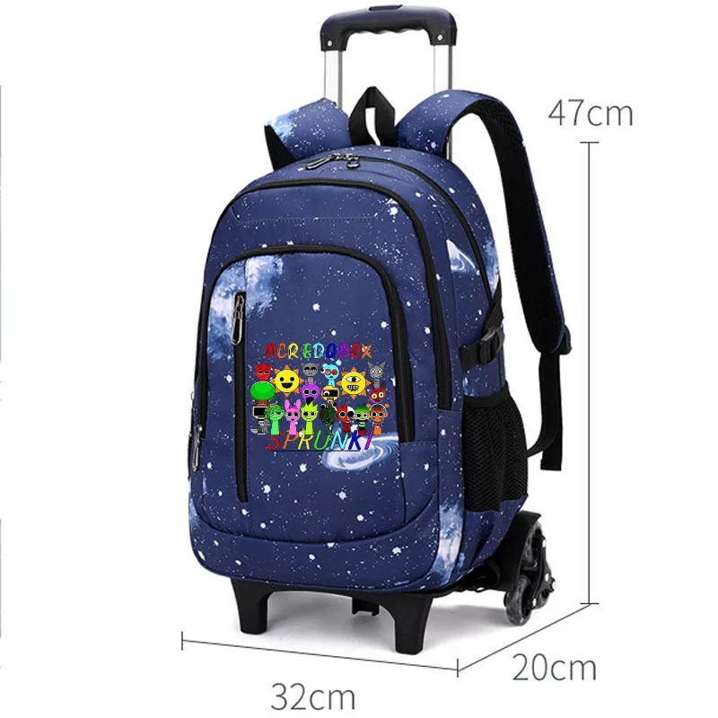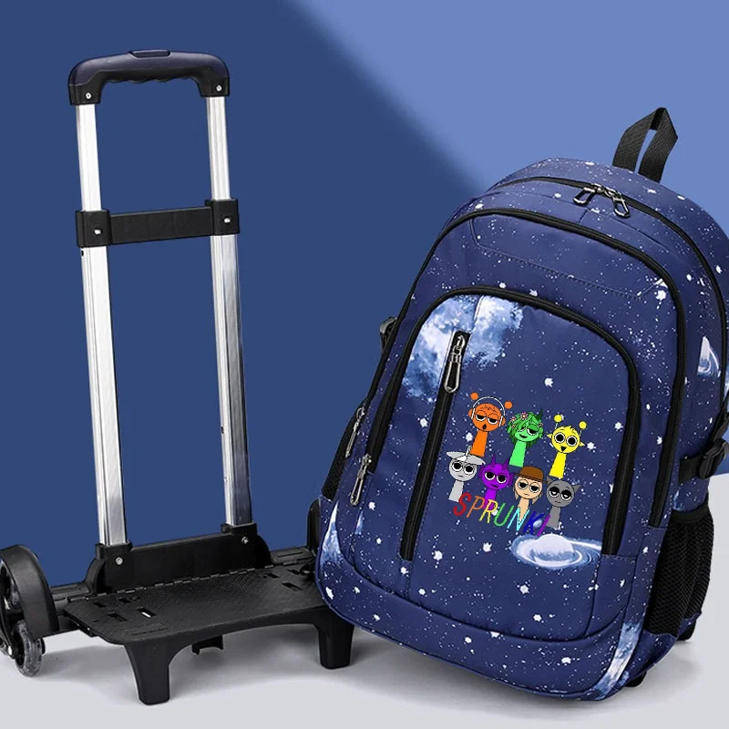 2025 Gioco Sprunki Zaino trolley 2 in 1 Borsa cielo stellato Laptop impermeabile di grande capacità Può salire le scale Borsa per il ritorno a scuola
