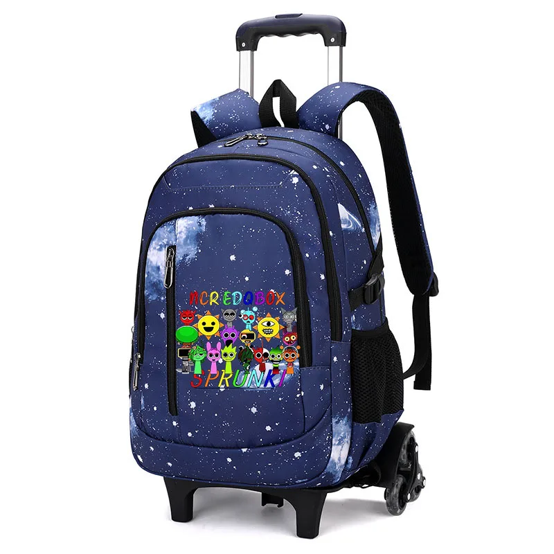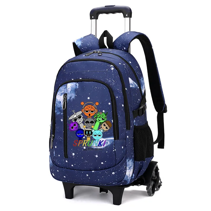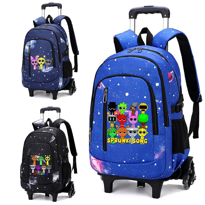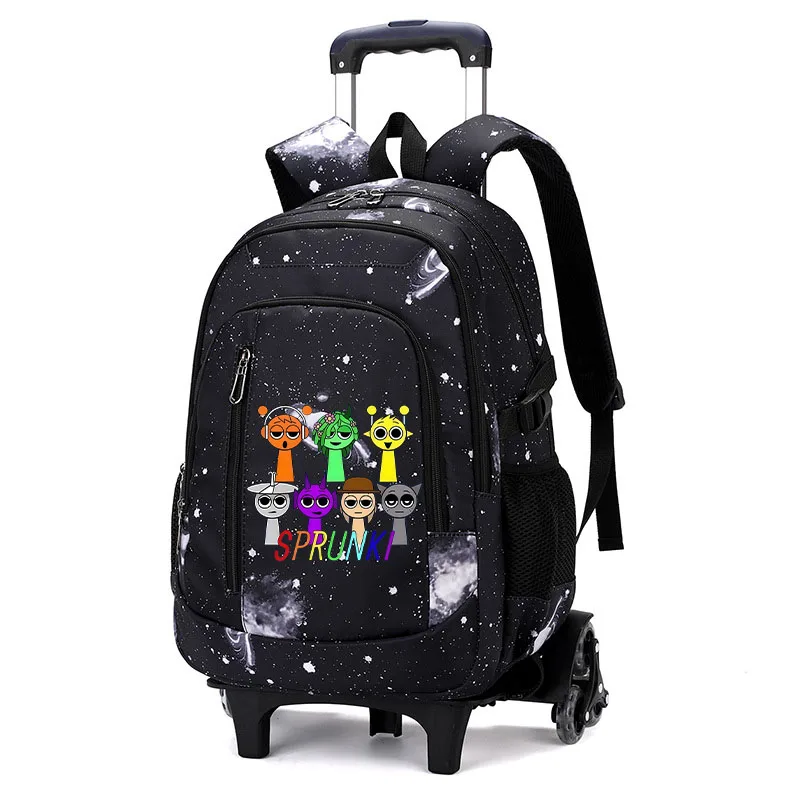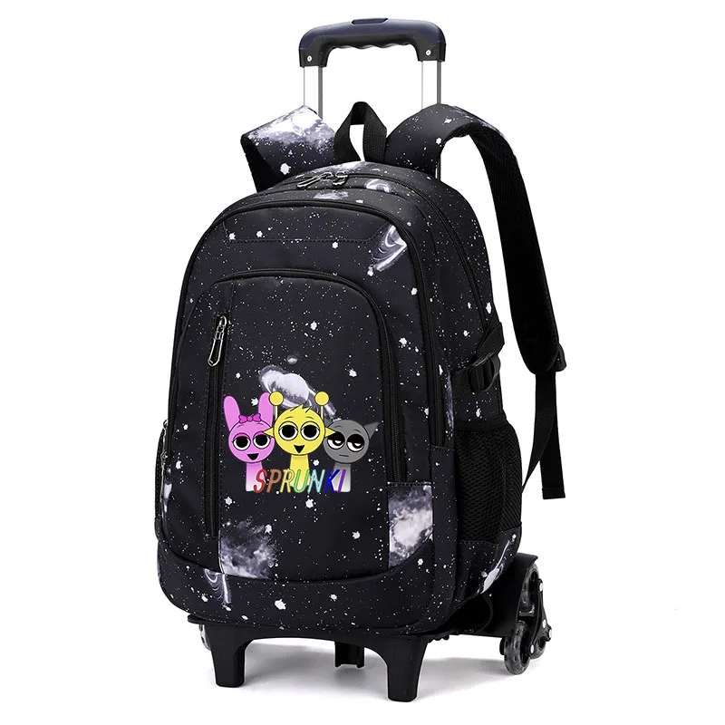 2025 Gioco Sprunki Zaino trolley 2 in 1 Borsa cielo stellato Laptop impermeabile di grande capacità Può salire le scale Borsa per il ritorno a scuola
