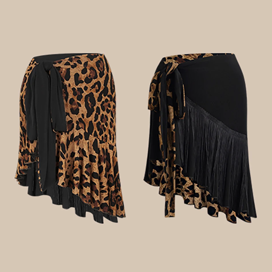 2025 Gonne leopardate da ballo latino femminile Donne adulte Sexy Due lati di usura Performance sul palco Dancewear Nappe con frange Gonne 25026