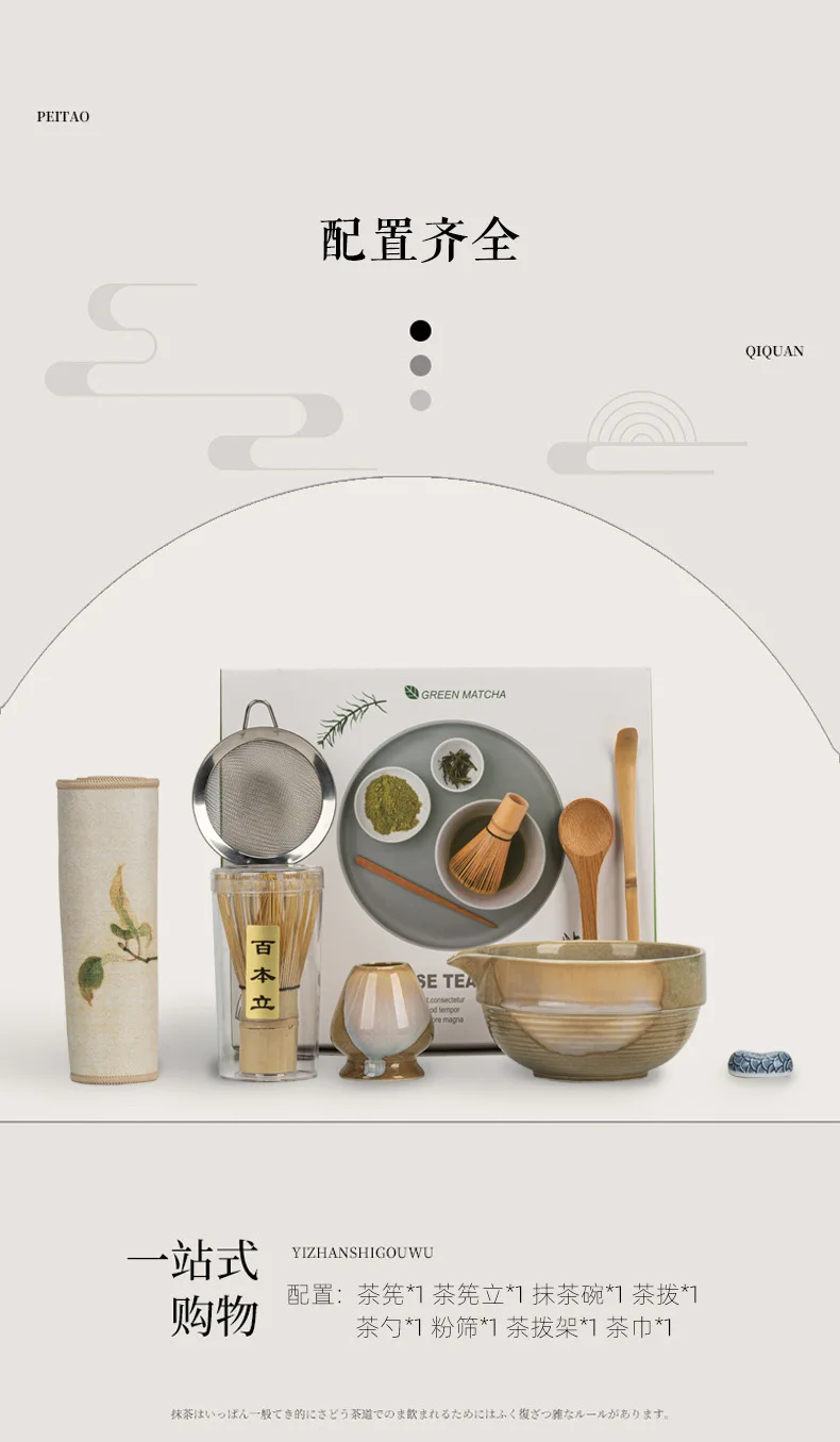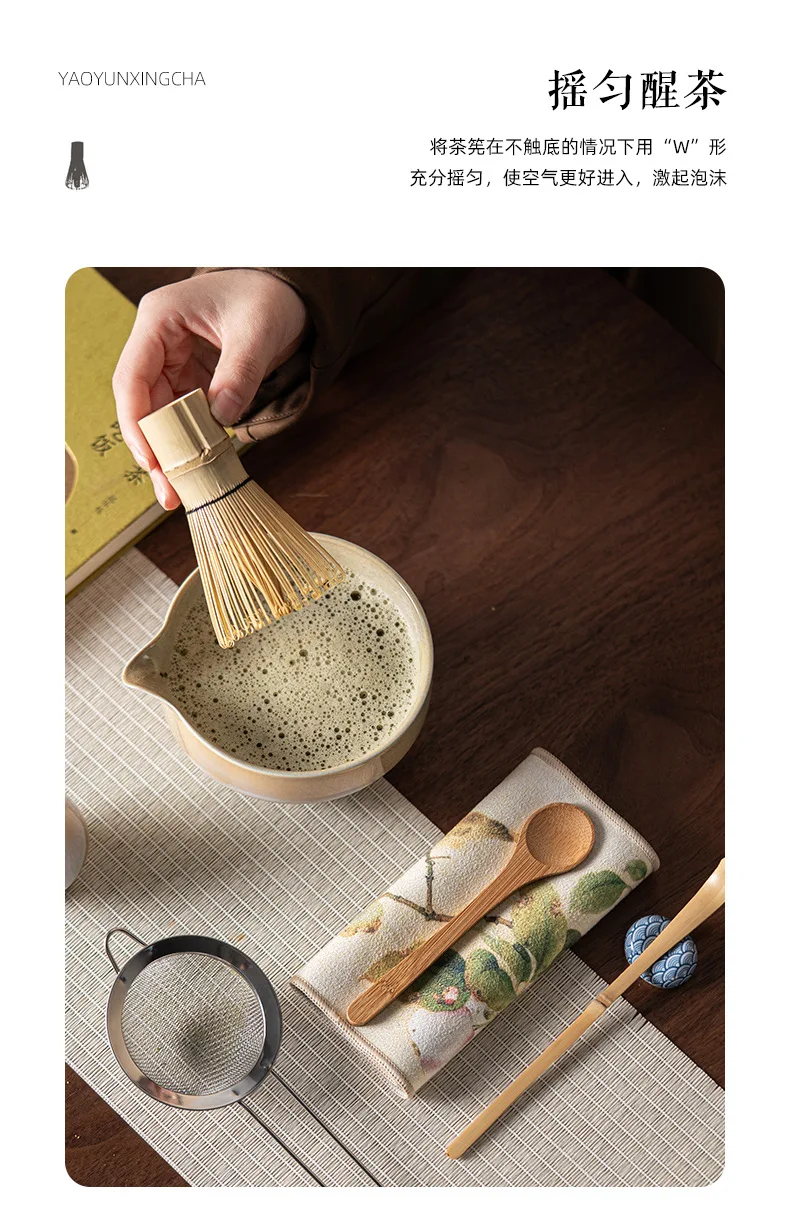 Completo con tutte le strumenti matcha necessari, questo kit è perfetto per gli appassionati di tè che cerca di migliorare la loro preparazione matcha.