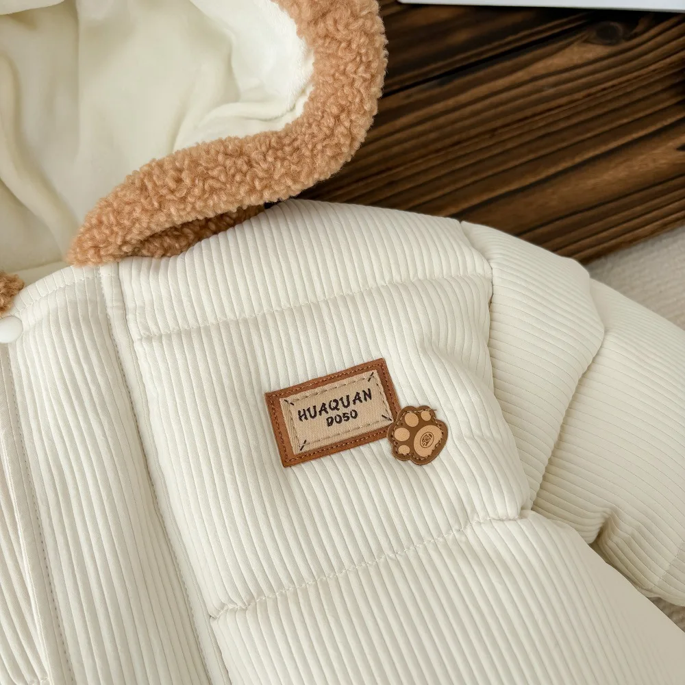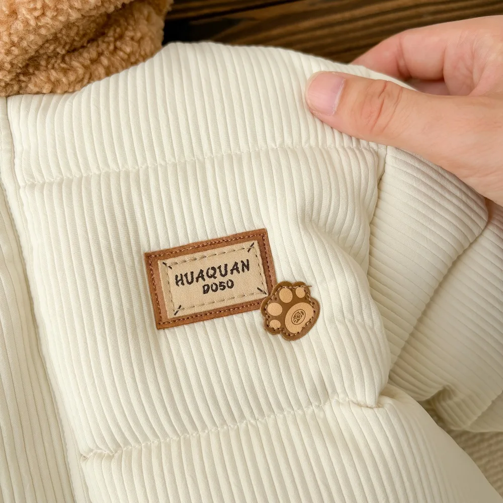2025 Inverno Nuovo in Bambini Neonati maschi Ragazze Addensare Caldo Orso Cartoon Modellazione Top Outwear, Giacca con cappuccio carina per bambini
