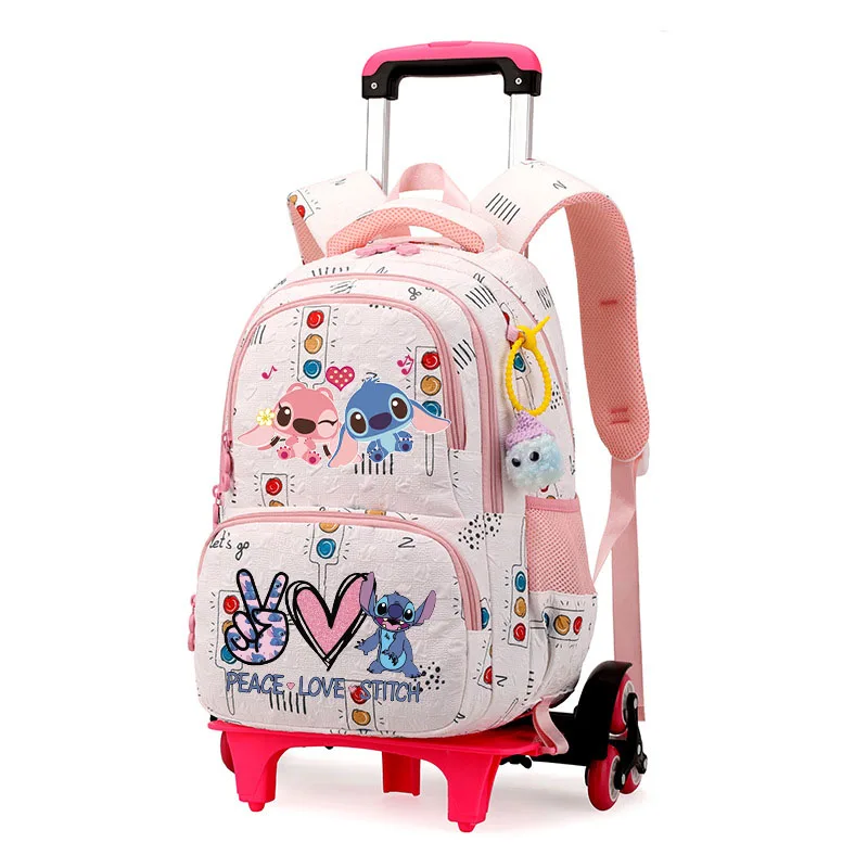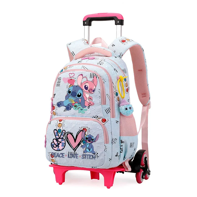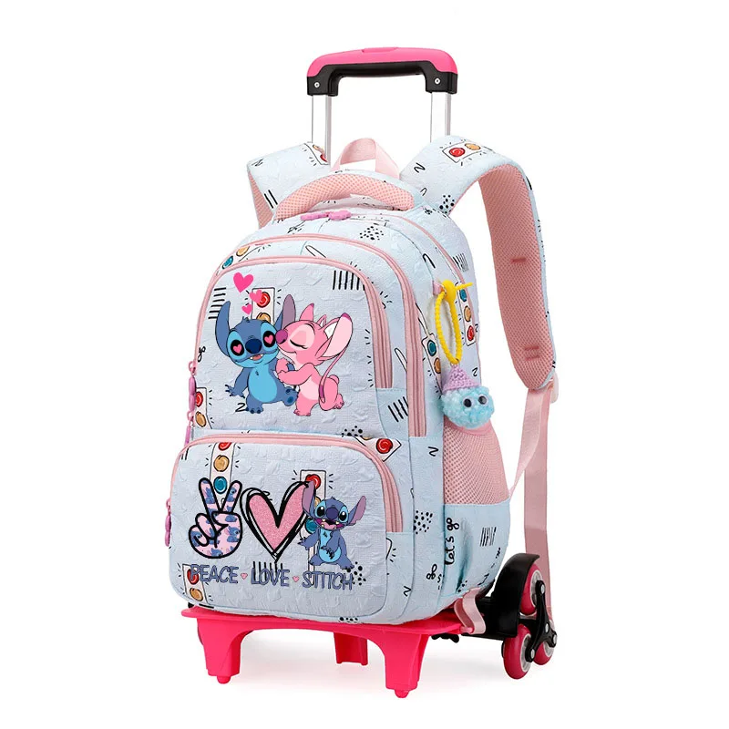2025 kawaii lilo stitch Zaino trolley 2 in 1 con ruote Laptop impermeabile di grande capacità può salire le scale Borsa per il ritorno a scuola