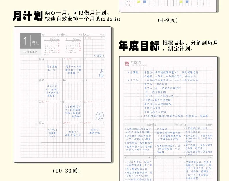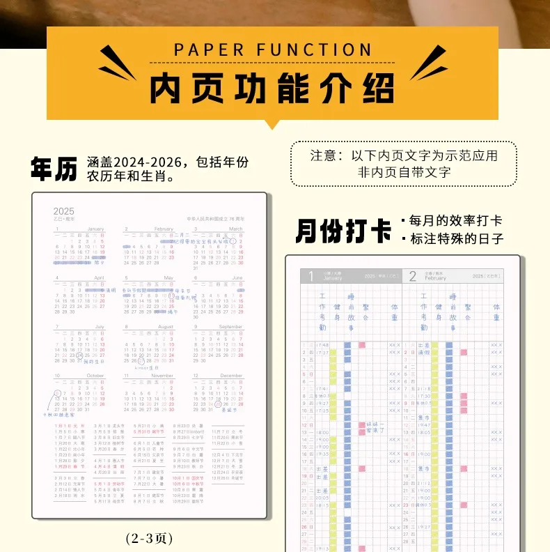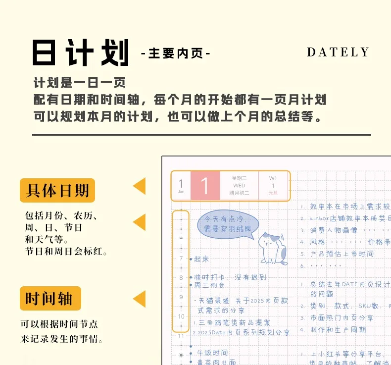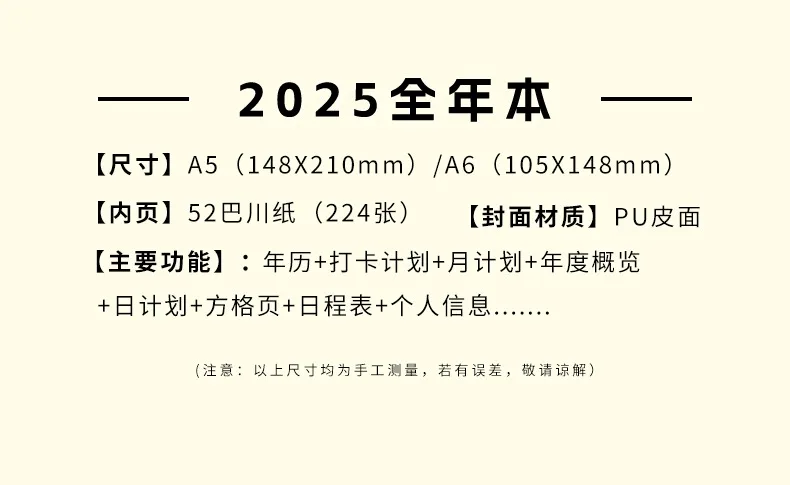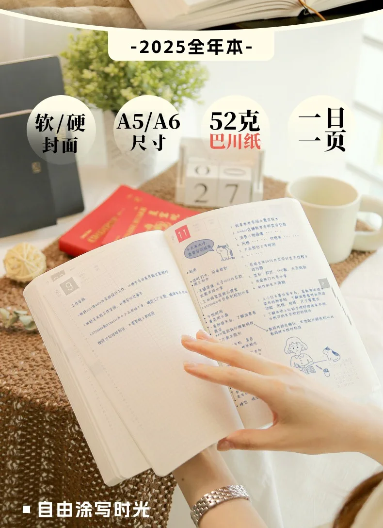 2025 Kinbor A6 A5 Notebook Diario dell’anno intero Programma giornaliero Quaderni e diari Timeline Piano settimanale Efficienza Ufficio scolastico