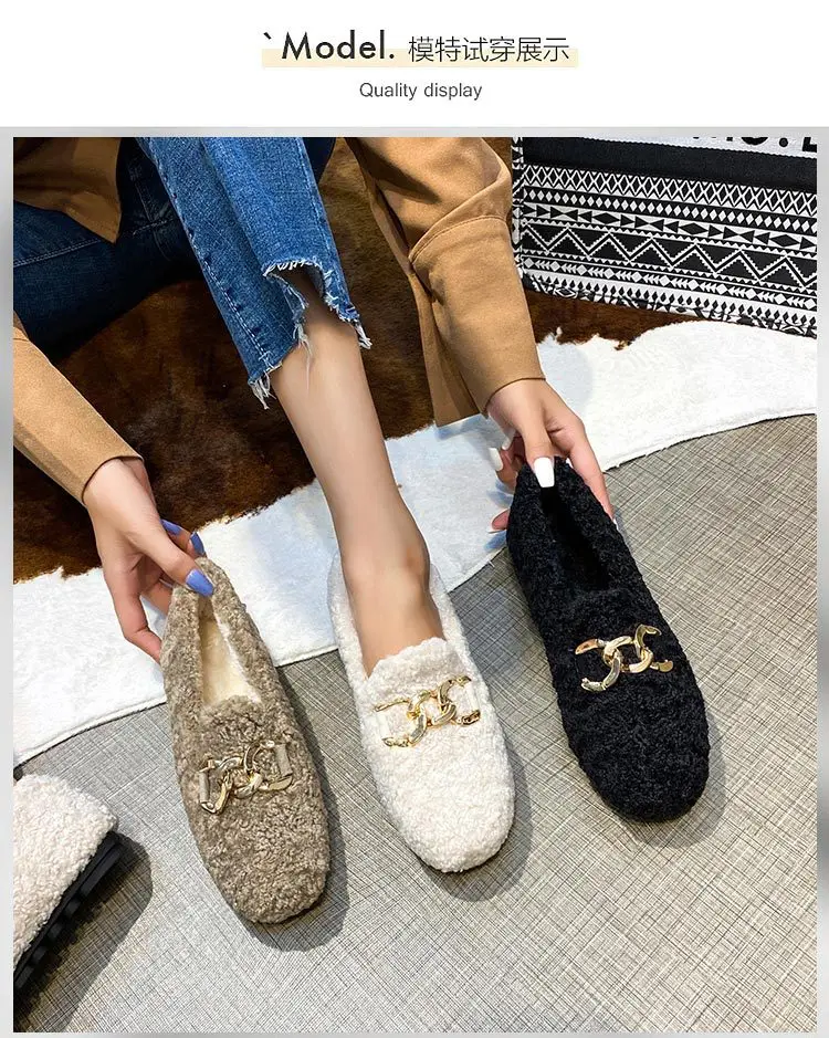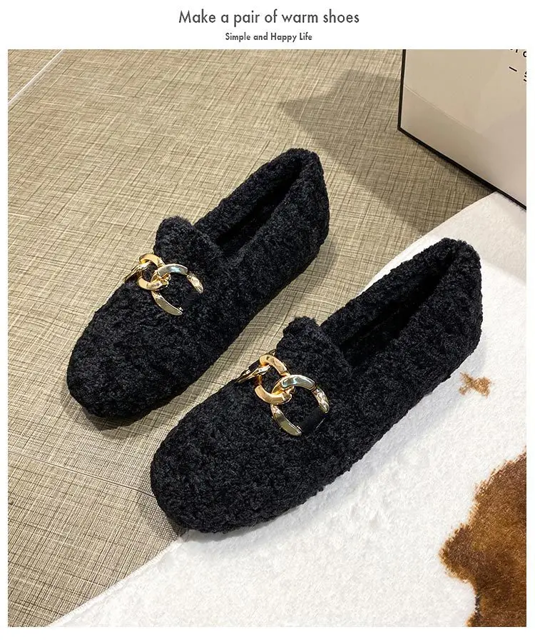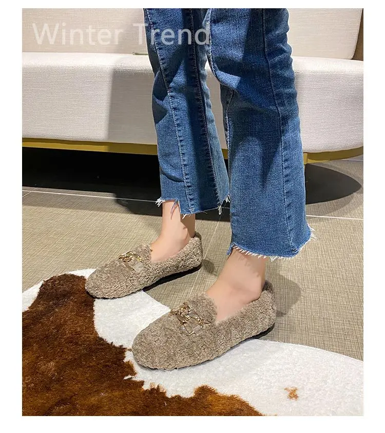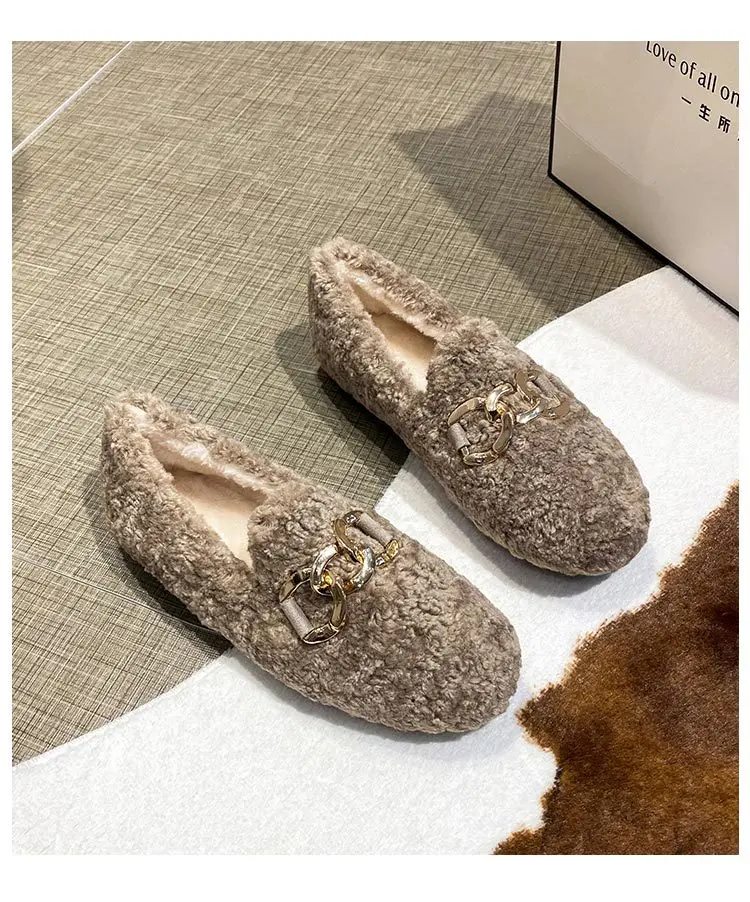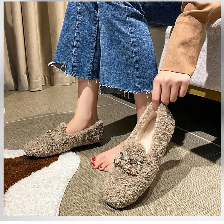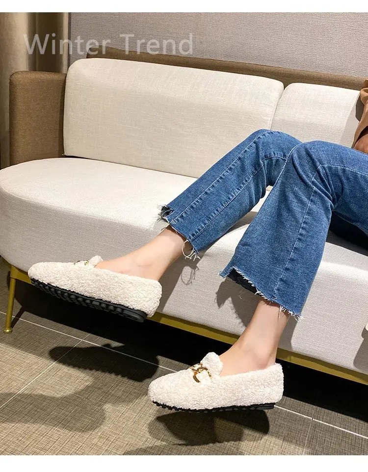 Mocassini in lana d’agnello da donna con fondo morbido in pelliccia invernale Mocassini a piedi nudi