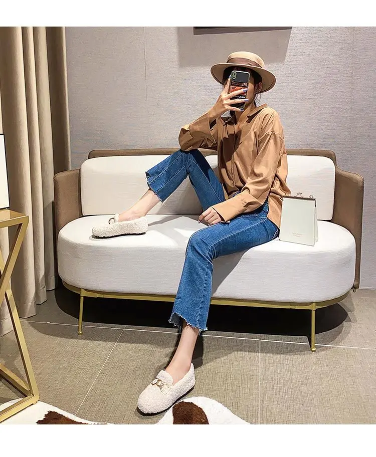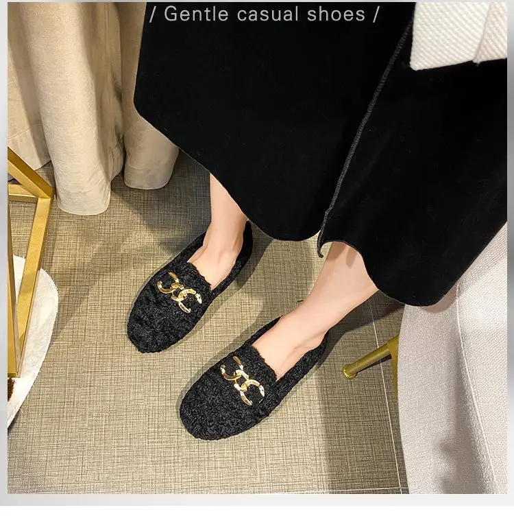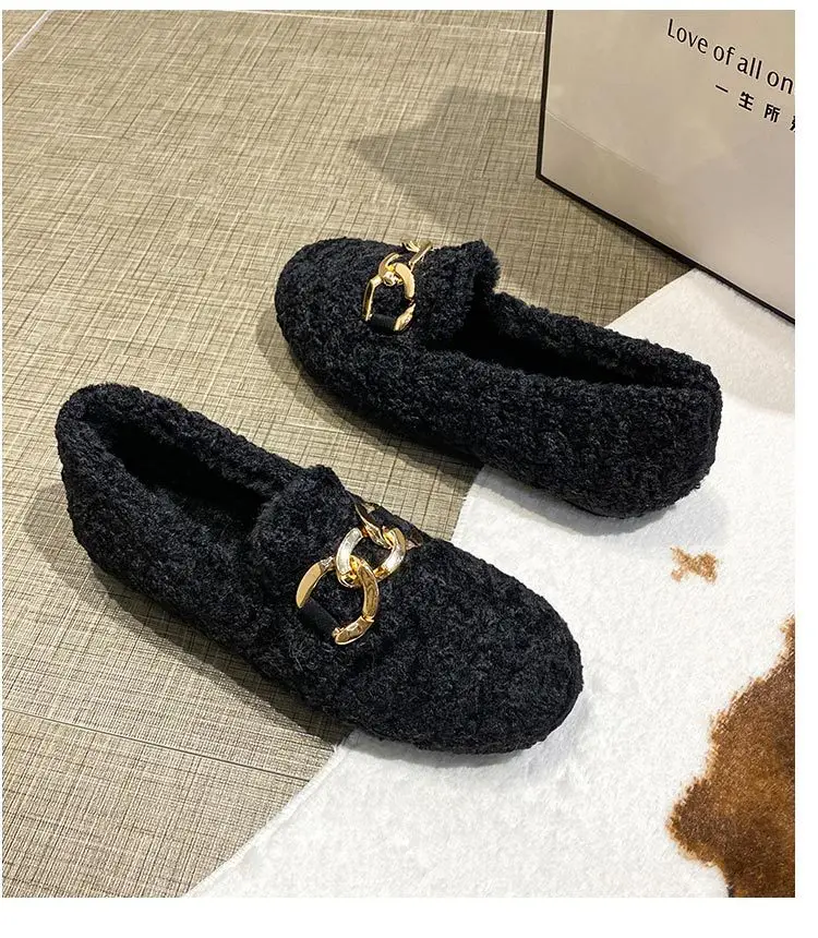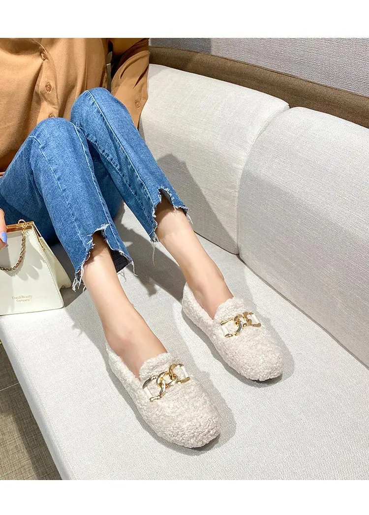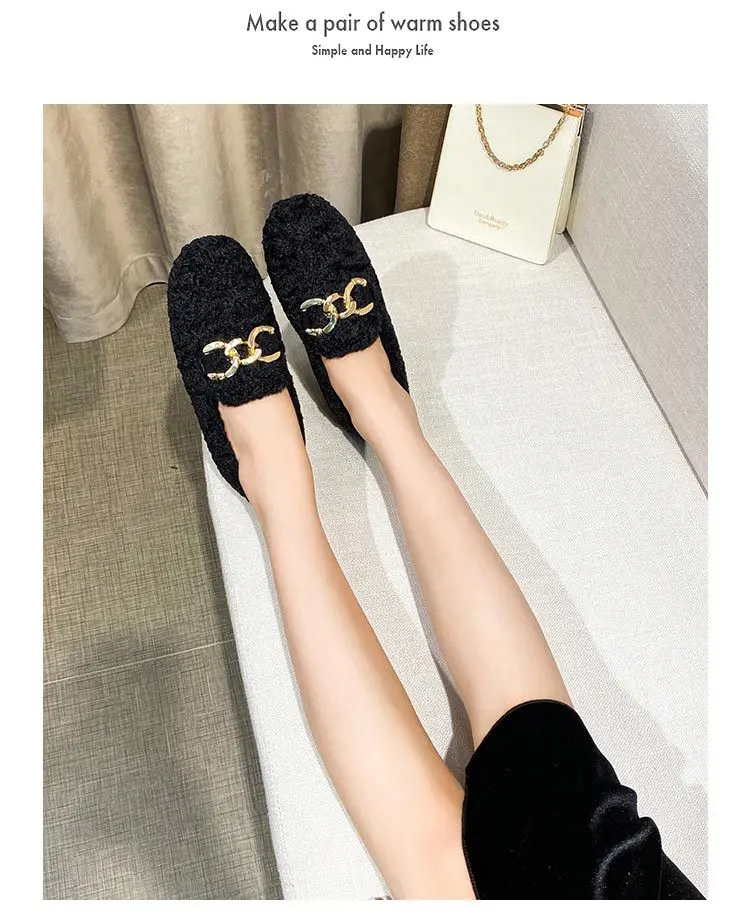 Mocassini in lana d’agnello da donna con fondo morbido in pelliccia invernale Mocassini a piedi nudi