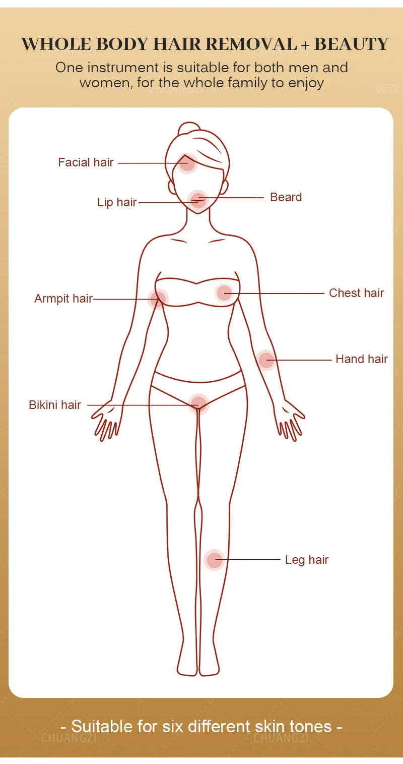* Dimensioni Big Spot: 12 * 25 mm per grandi aree come depilazione rapida della schiena, depilazione labbra e bella linea di barba