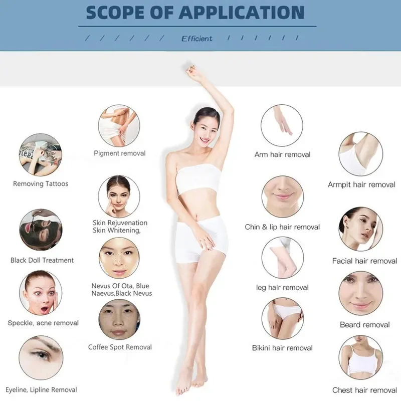 2.808nm+755nm+1064nm tre lunghezze d’onda laser combinate per tutto il trattamento di tipo di pelle 755nm per la depilazione della pelle bianca 1064nm per la depilazione della pelle nera o scura 808nm per altri tipi di depilazione del colore della pelle