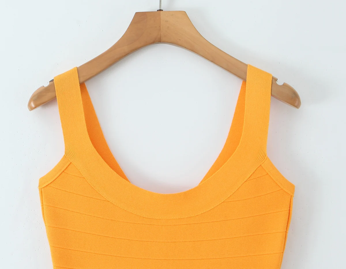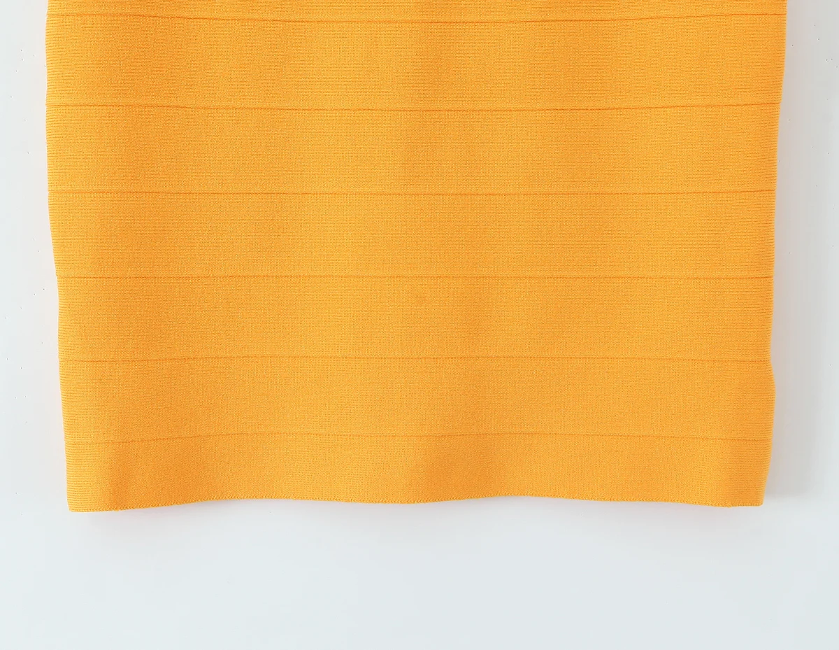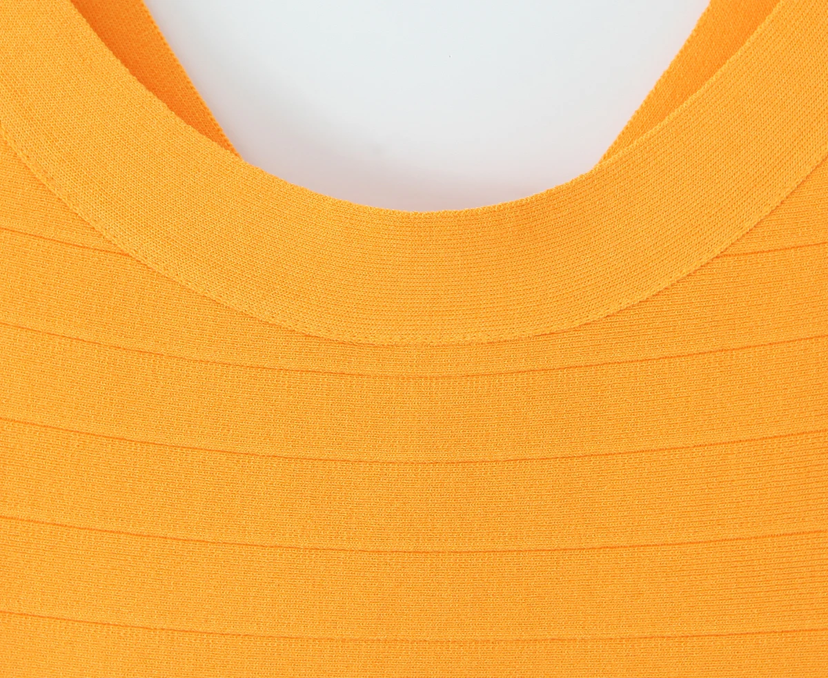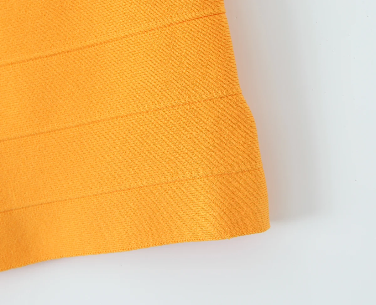 2025 Mini abito sexy con scollo a O lavorato a maglia da donna con cerniera posteriore pacchetto fianchi abiti corti dal carro armato abito attillato arancione rosa