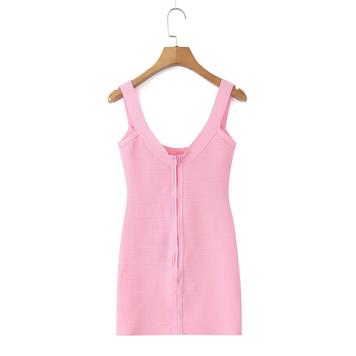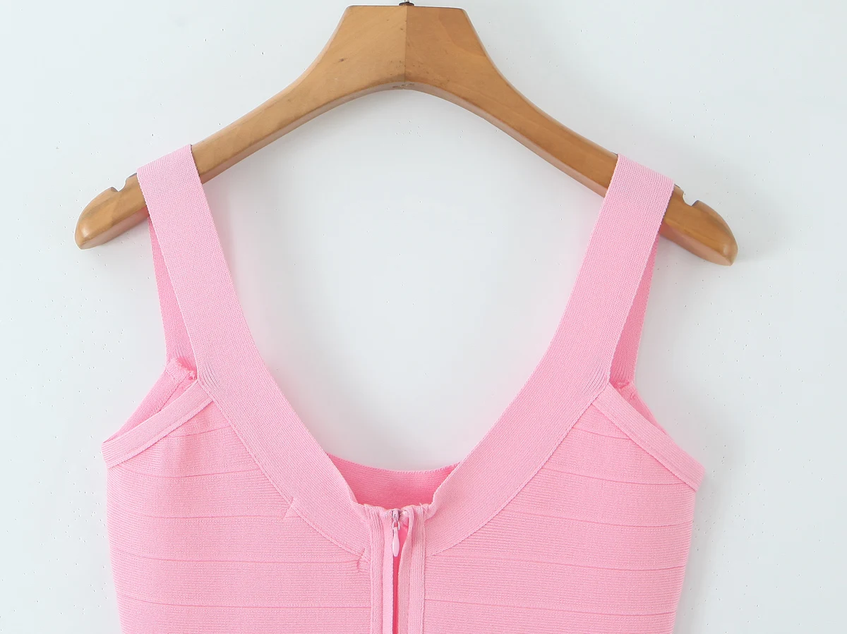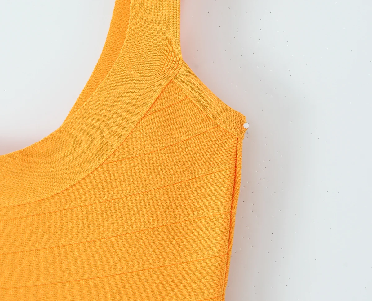 2025 Mini abito sexy con scollo a O lavorato a maglia da donna con cerniera posteriore pacchetto fianchi abiti corti dal carro armato abito attillato arancione rosa