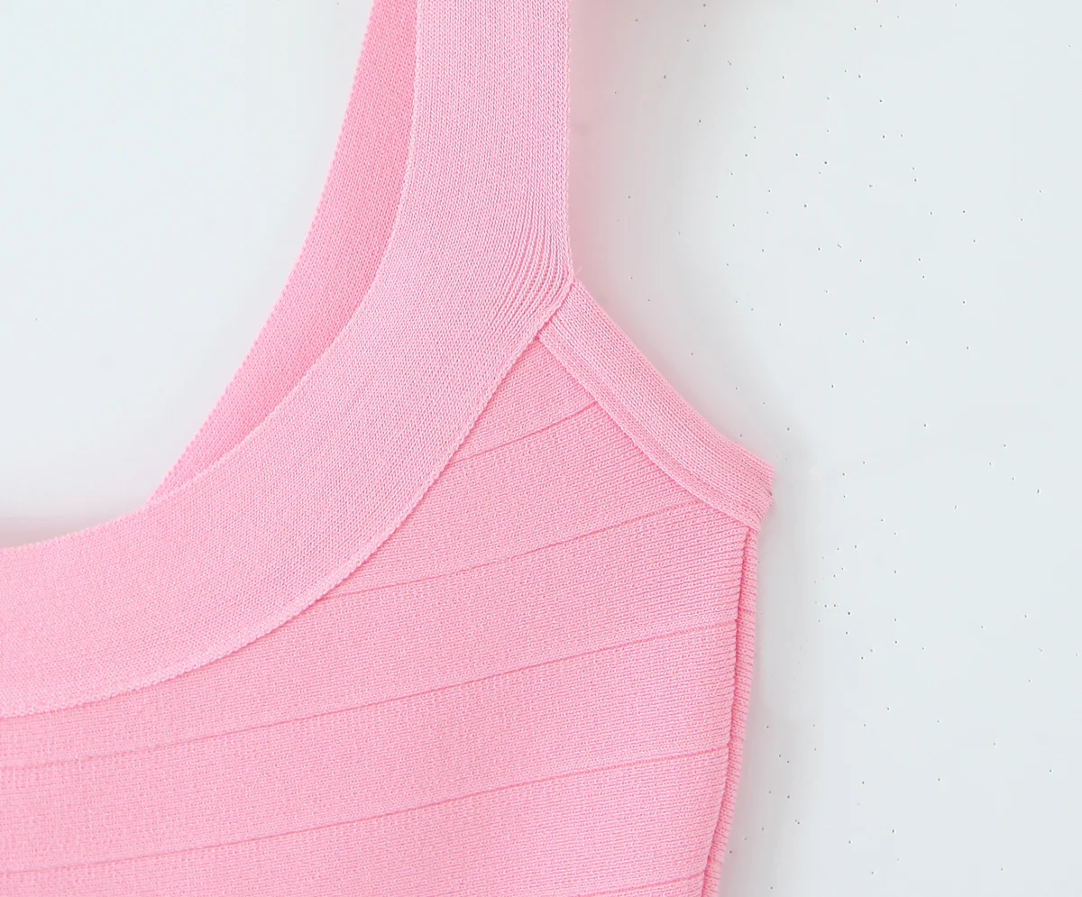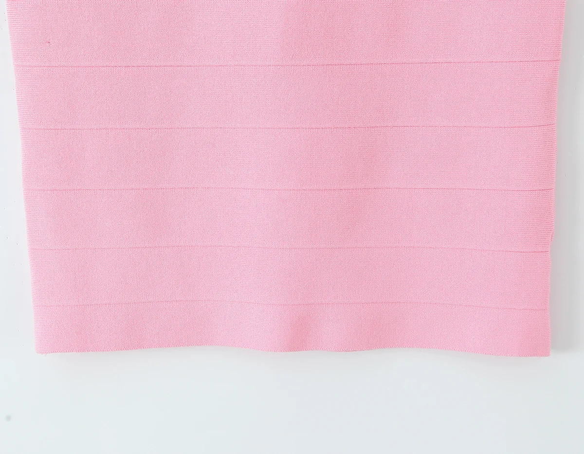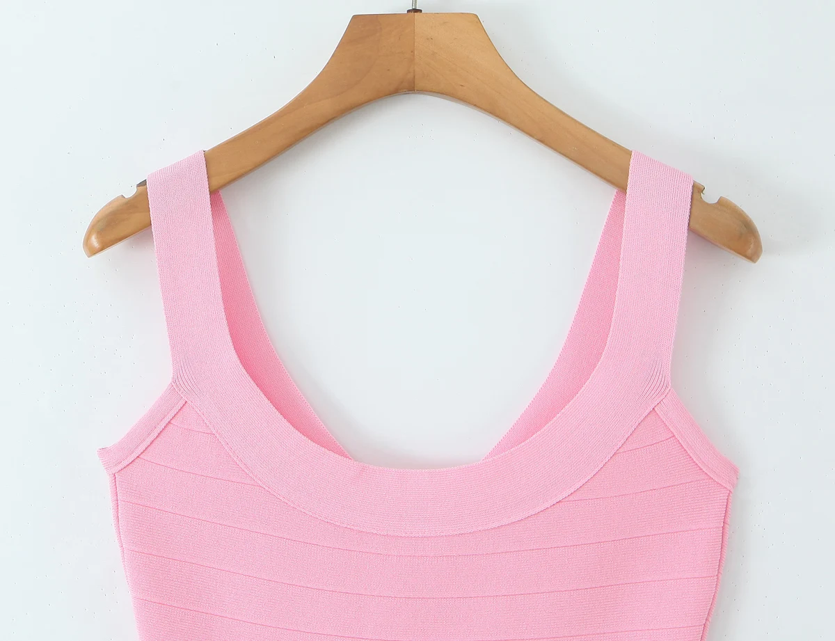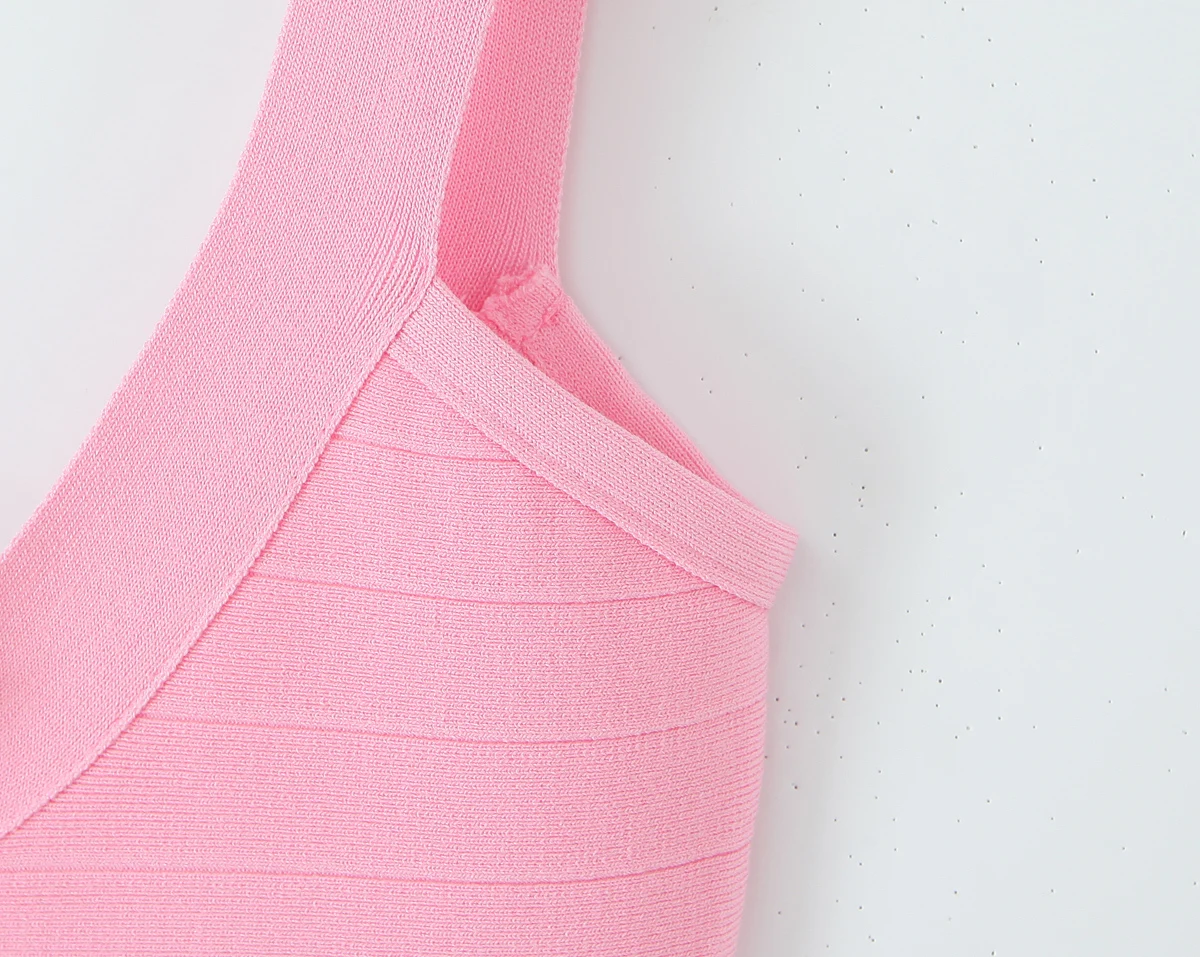 2025 Mini abito sexy con scollo a O lavorato a maglia da donna con cerniera posteriore pacchetto fianchi abiti corti dal carro armato abito attillato arancione rosa
