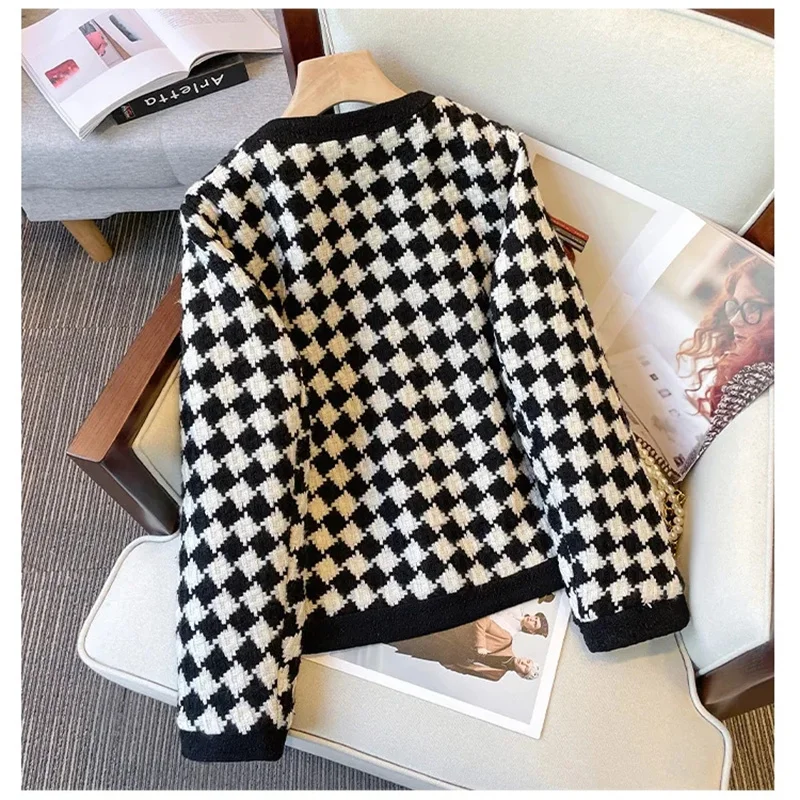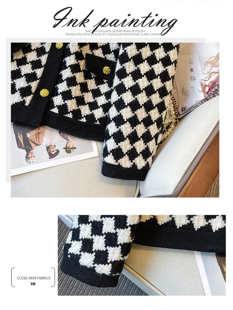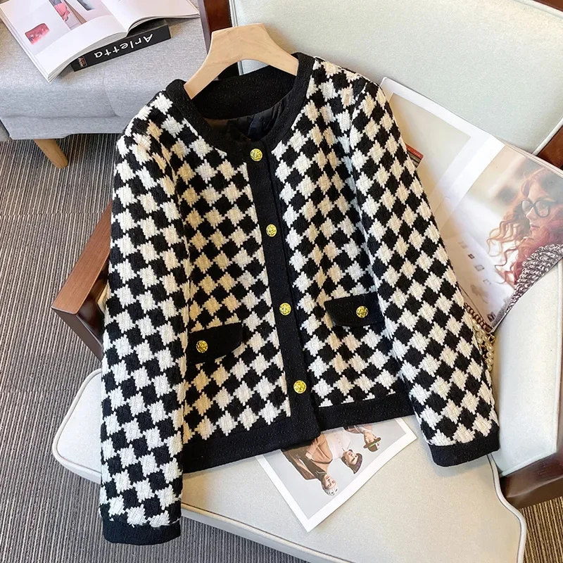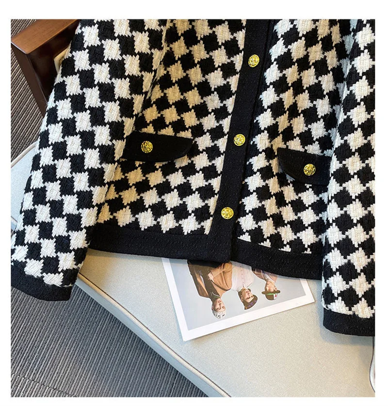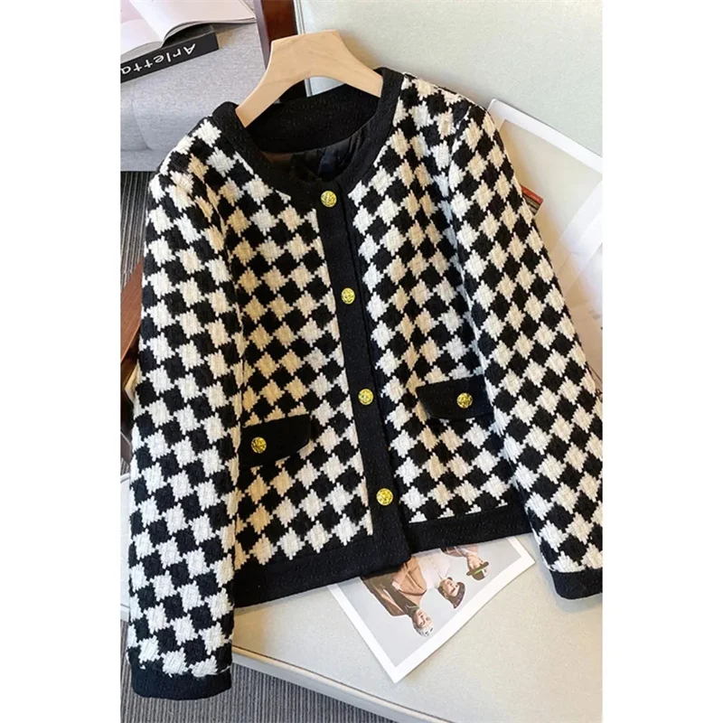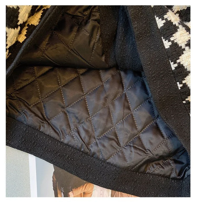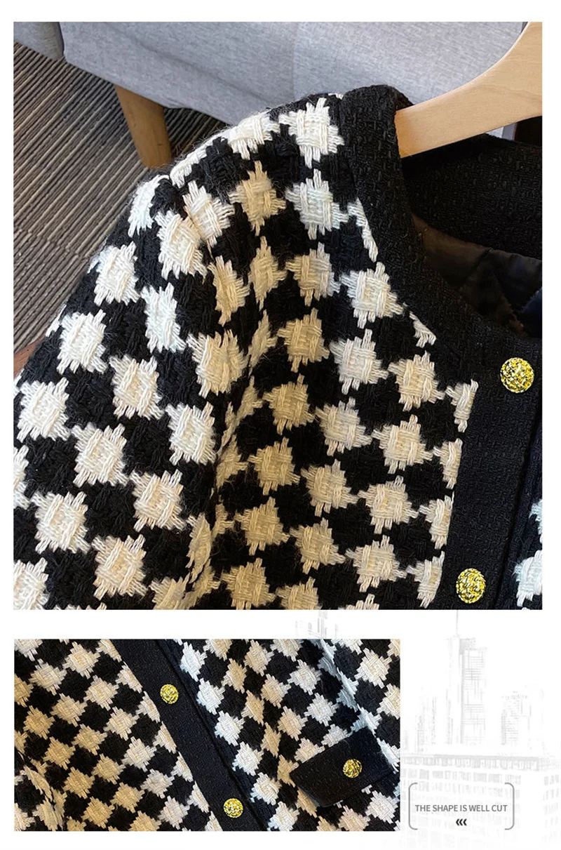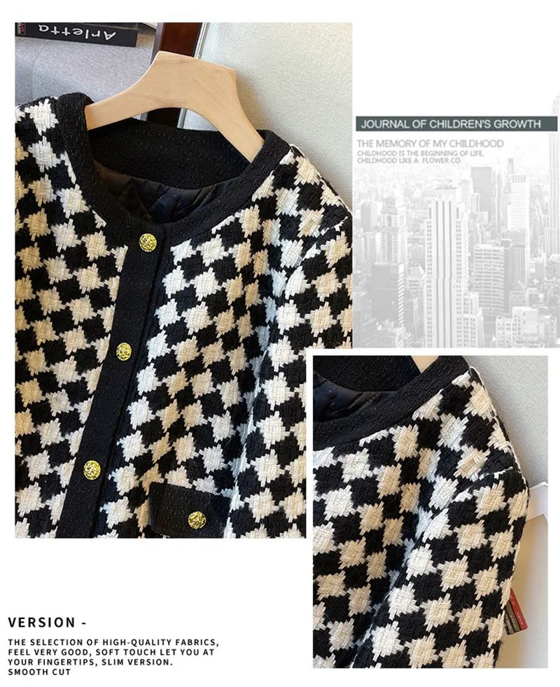 2025 New plaid Long Sleeve Fashion Woolen Coat Women Autumn Winter Loose Temperament Round Neck Short Wool Outerwear Female Tops