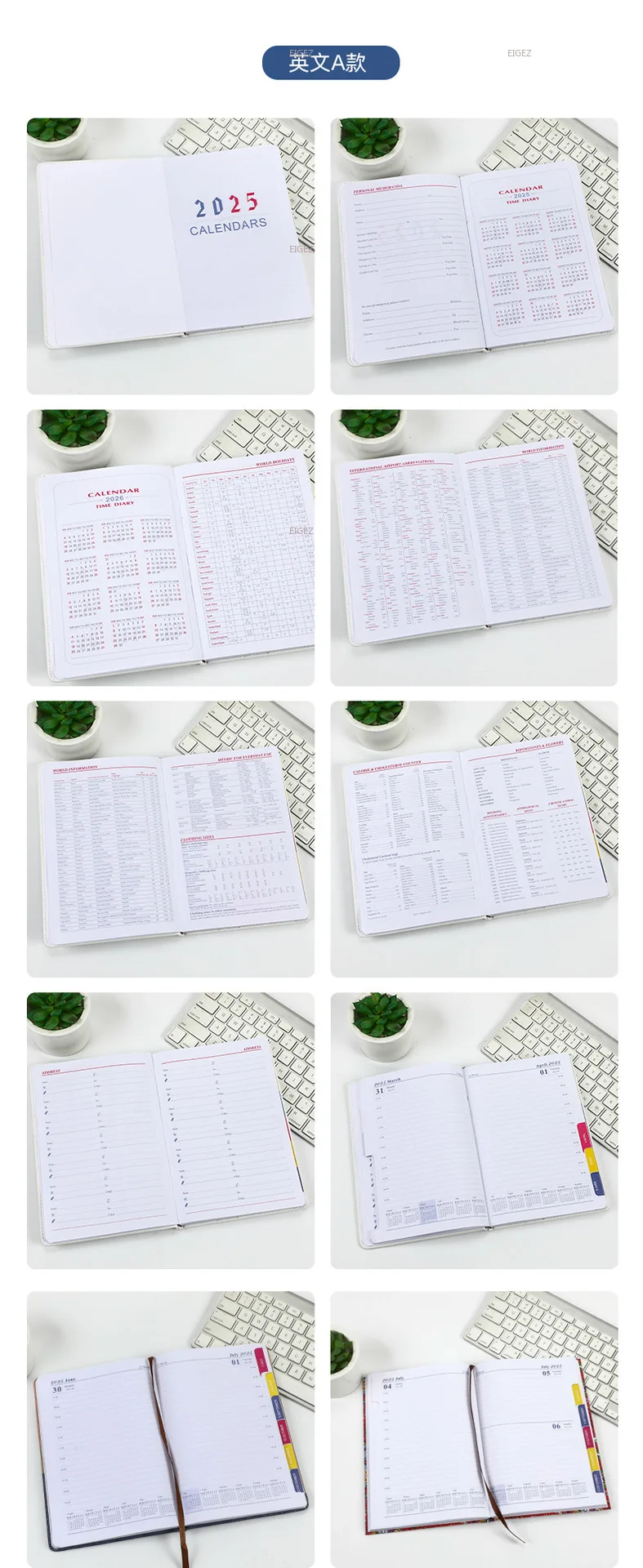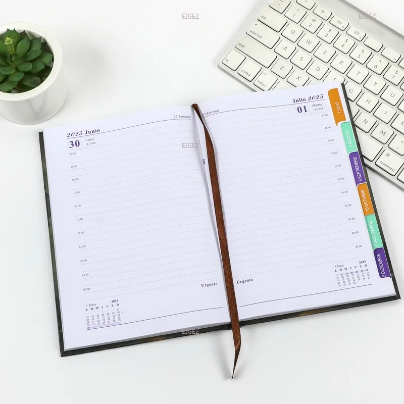 2025 Notebook inglese Calendario cartaceo Piano giornaliero spagnolo transfrontaliero Agenda Pianificazione Organizzazione delle attività di apprendimento