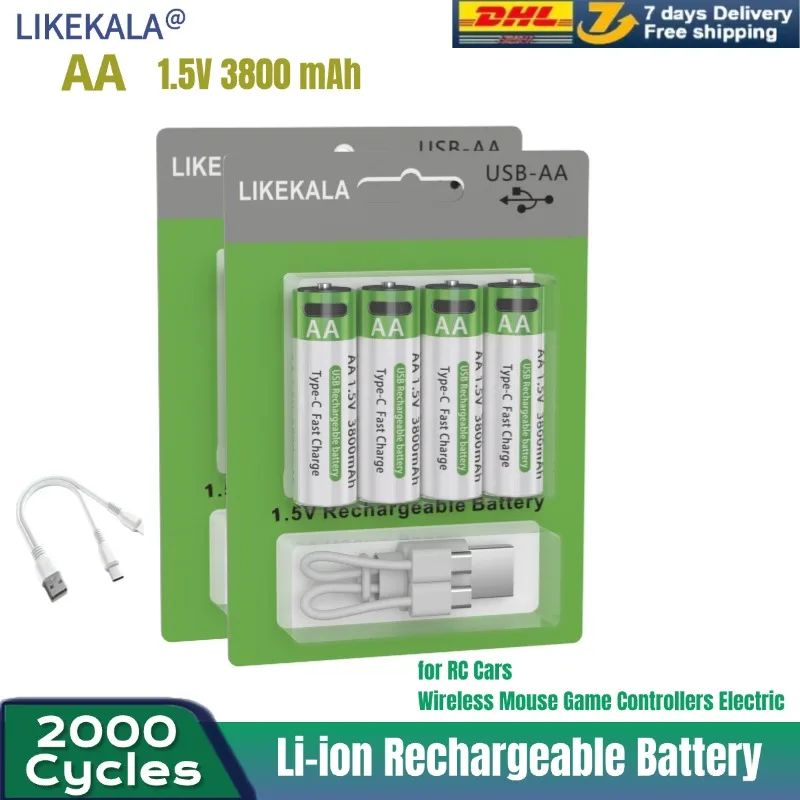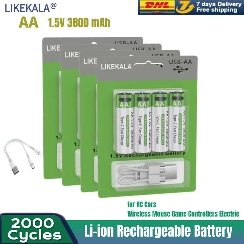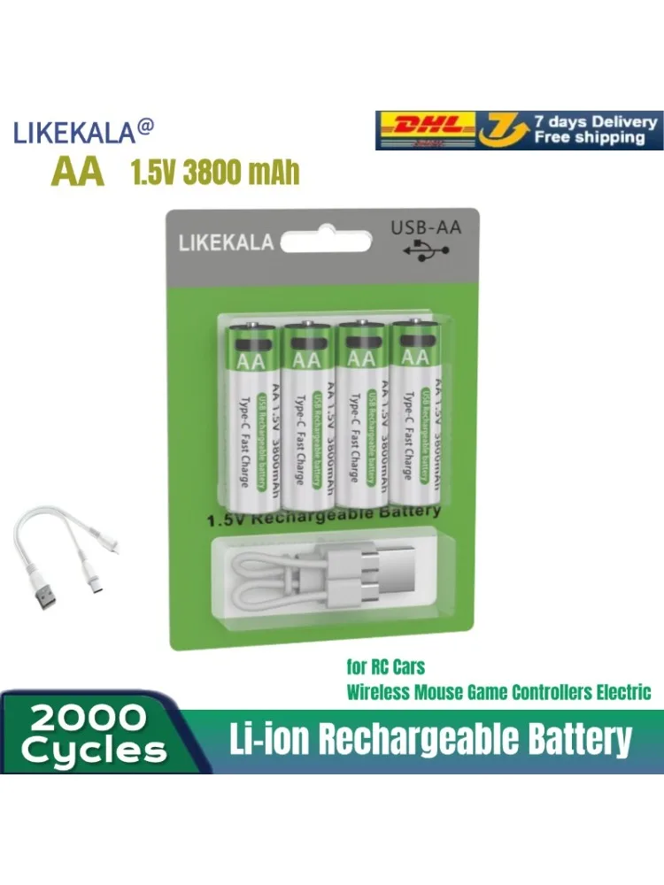 Nuova etichetta Batteria ricaricabile da 5500 mAh AA 1,5 V. Diodo luminescente MP3 con nuova batteria ricaricabile agli ioni di litio.