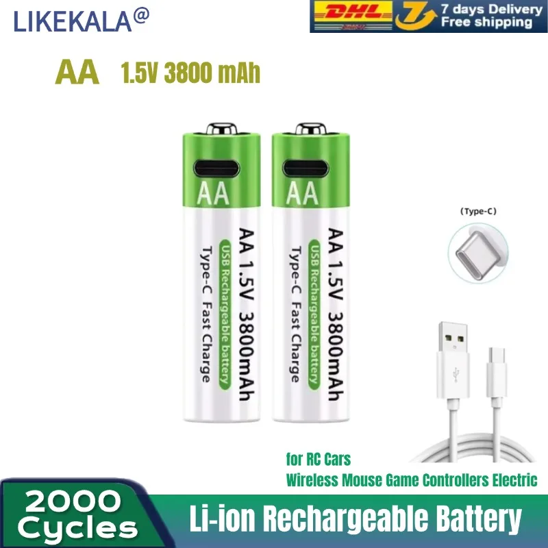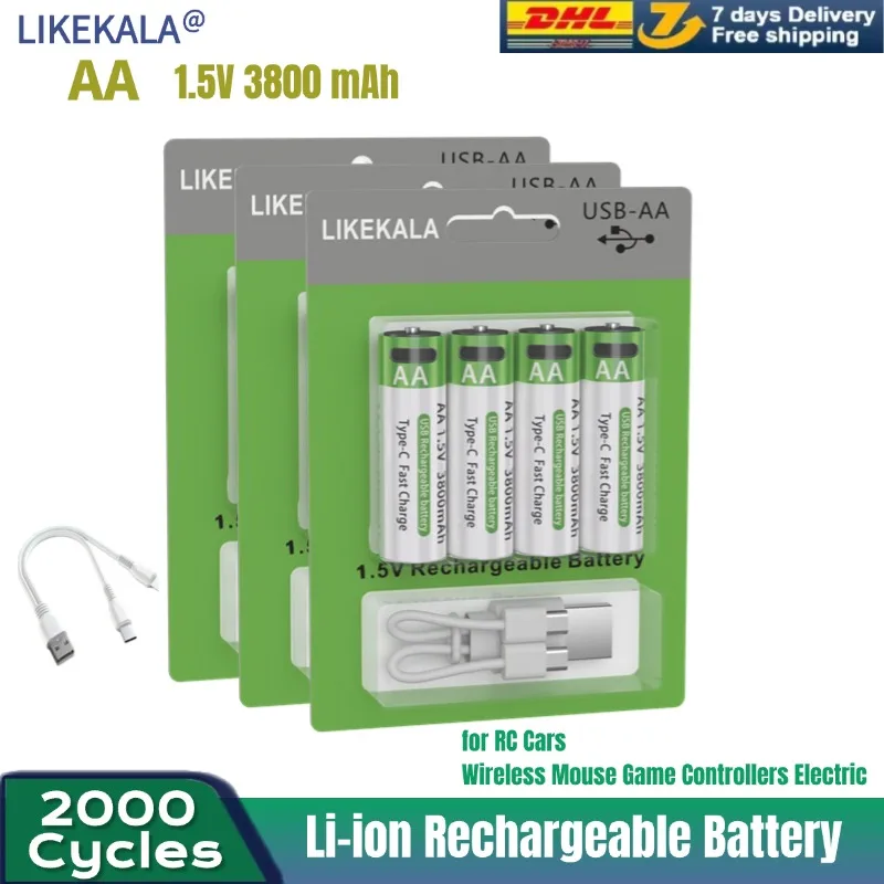 Nuova etichetta Batteria ricaricabile da 5500 mAh AA 1,5 V. Diodo luminescente MP3 con nuova batteria ricaricabile agli ioni di litio.
