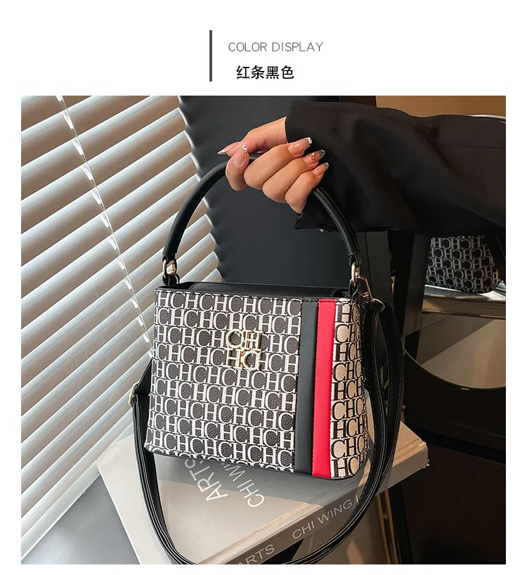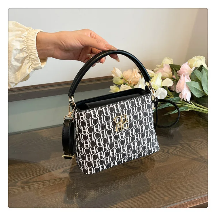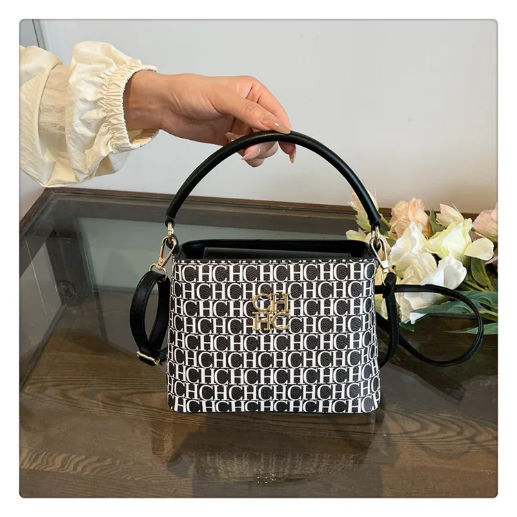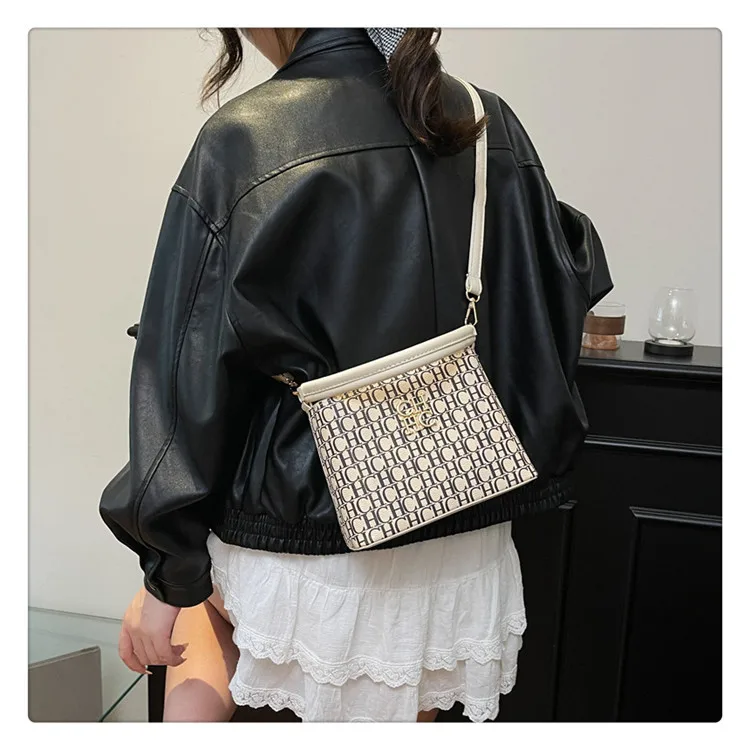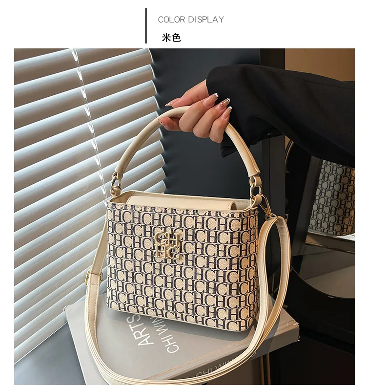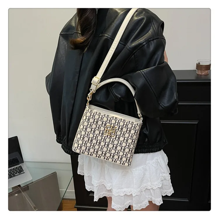 2025 Nuova borsa a secchiello: borsa a tracolla/spalla da donna alla moda con stampa di lettere vintage, spaziosa e leggera per l’uso quotidiano