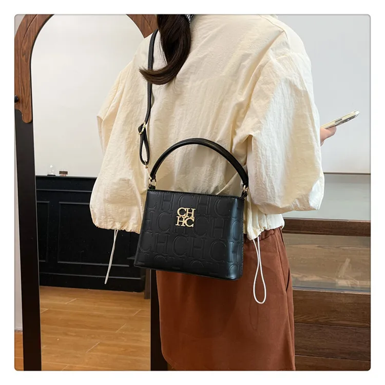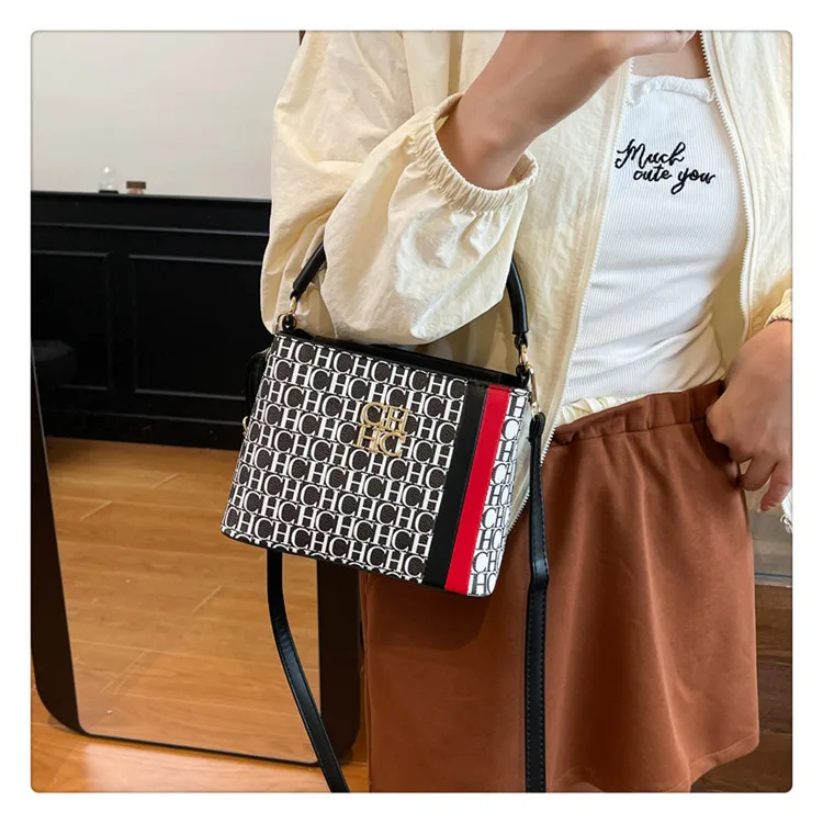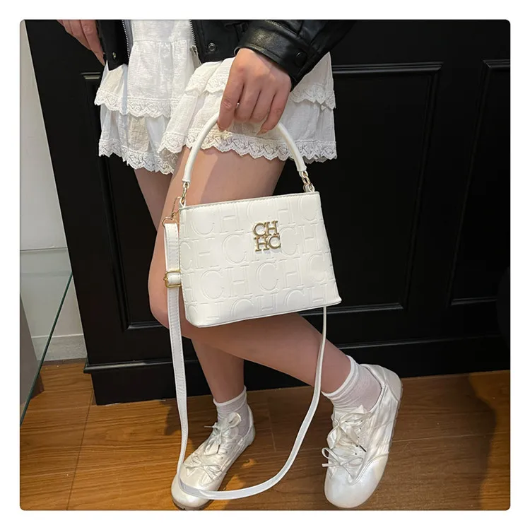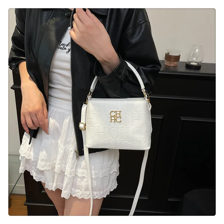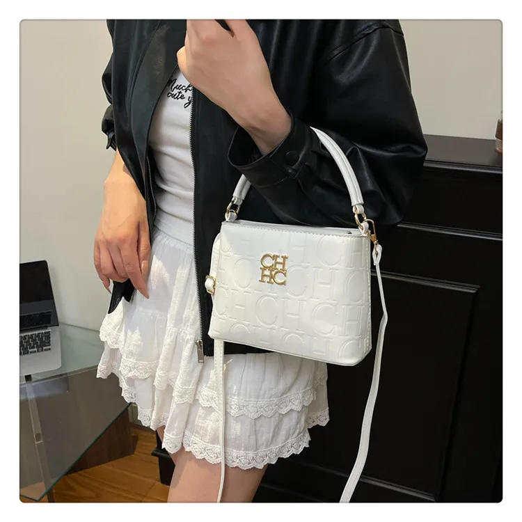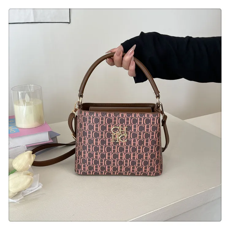 2025 Nuova borsa a secchiello: borsa a tracolla/spalla da donna alla moda con stampa di lettere vintage, spaziosa e leggera per l’uso quotidiano