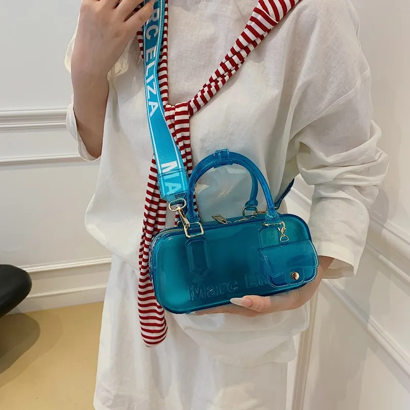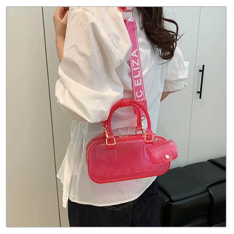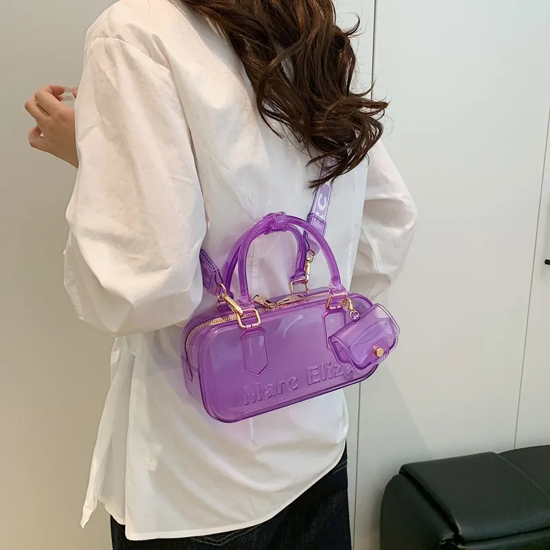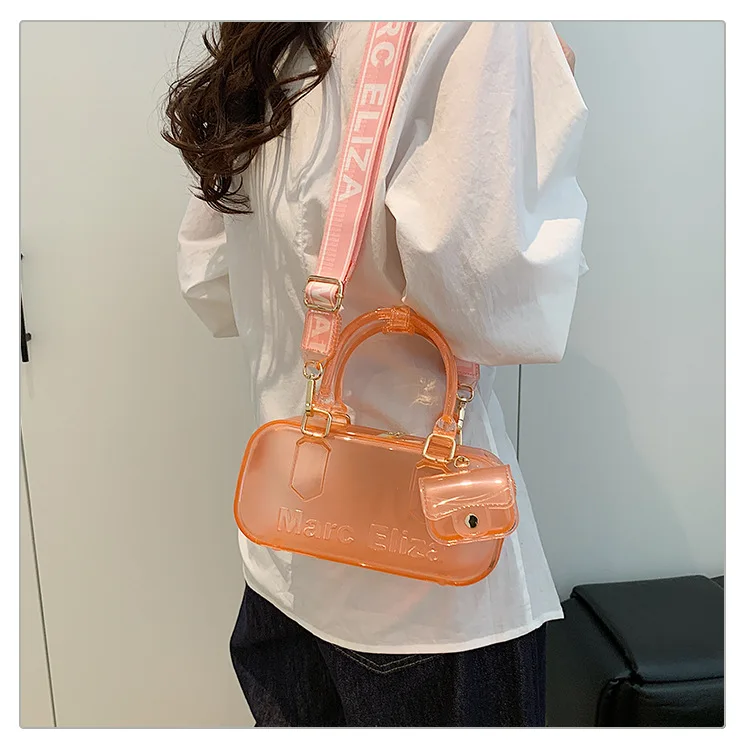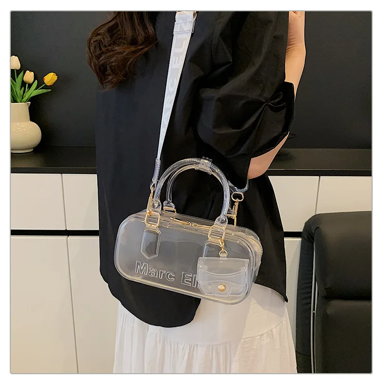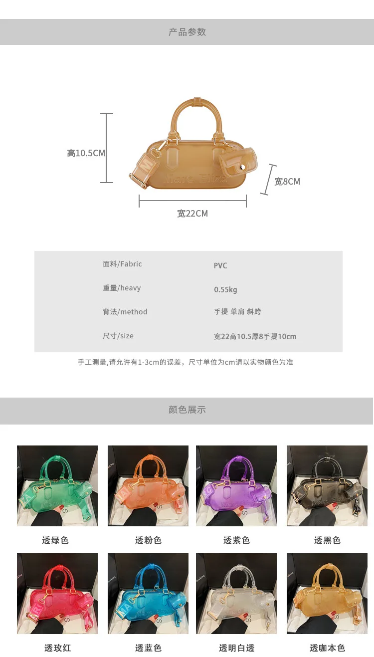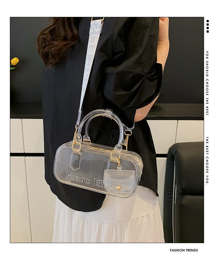2025 Nuova borsa in gelatina trasparente: borsa alla moda in PVC, elegante borsa quadrata piccola a tracolla e a tracolla
