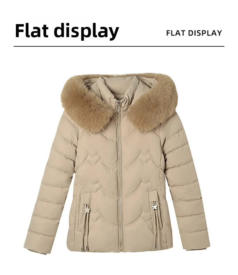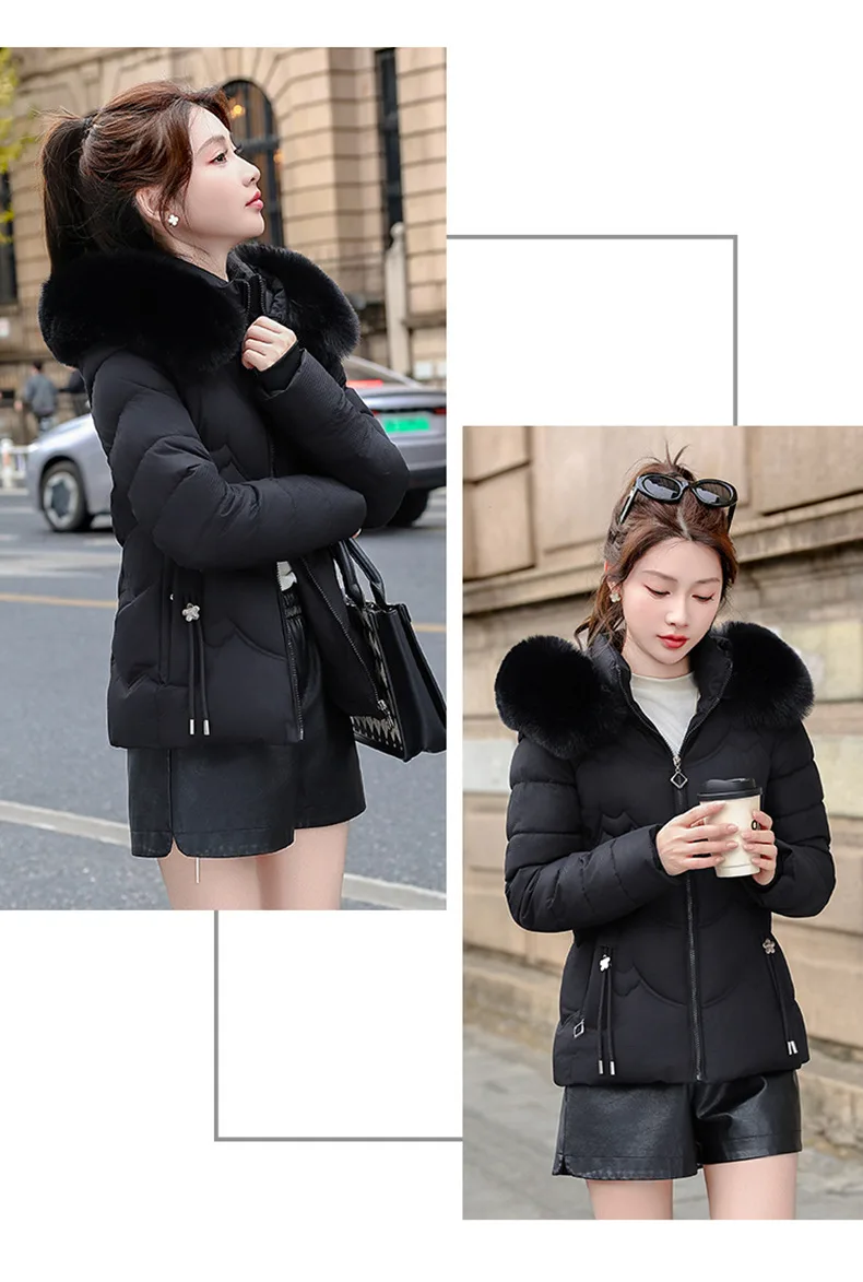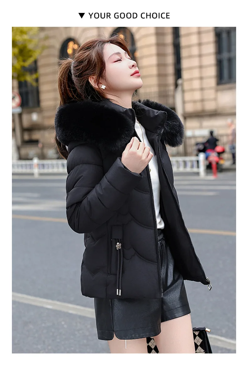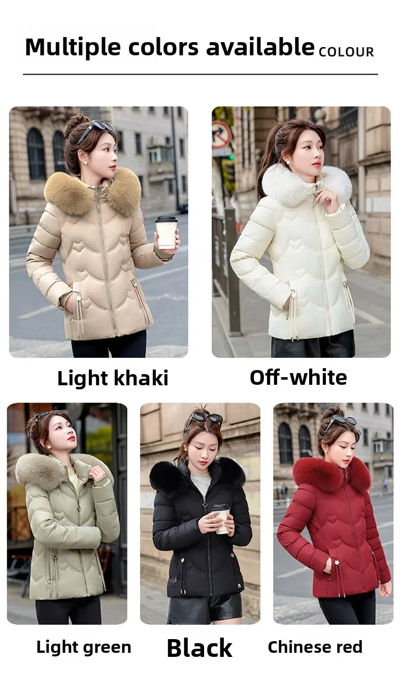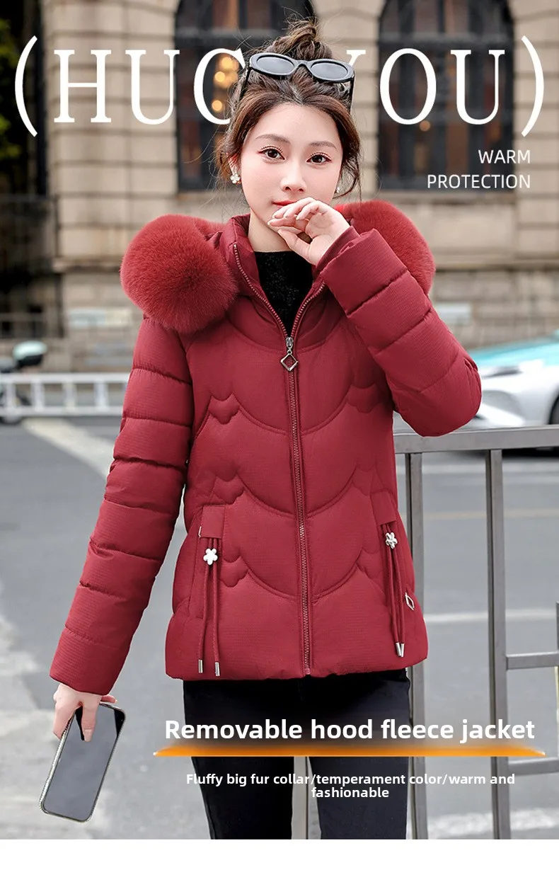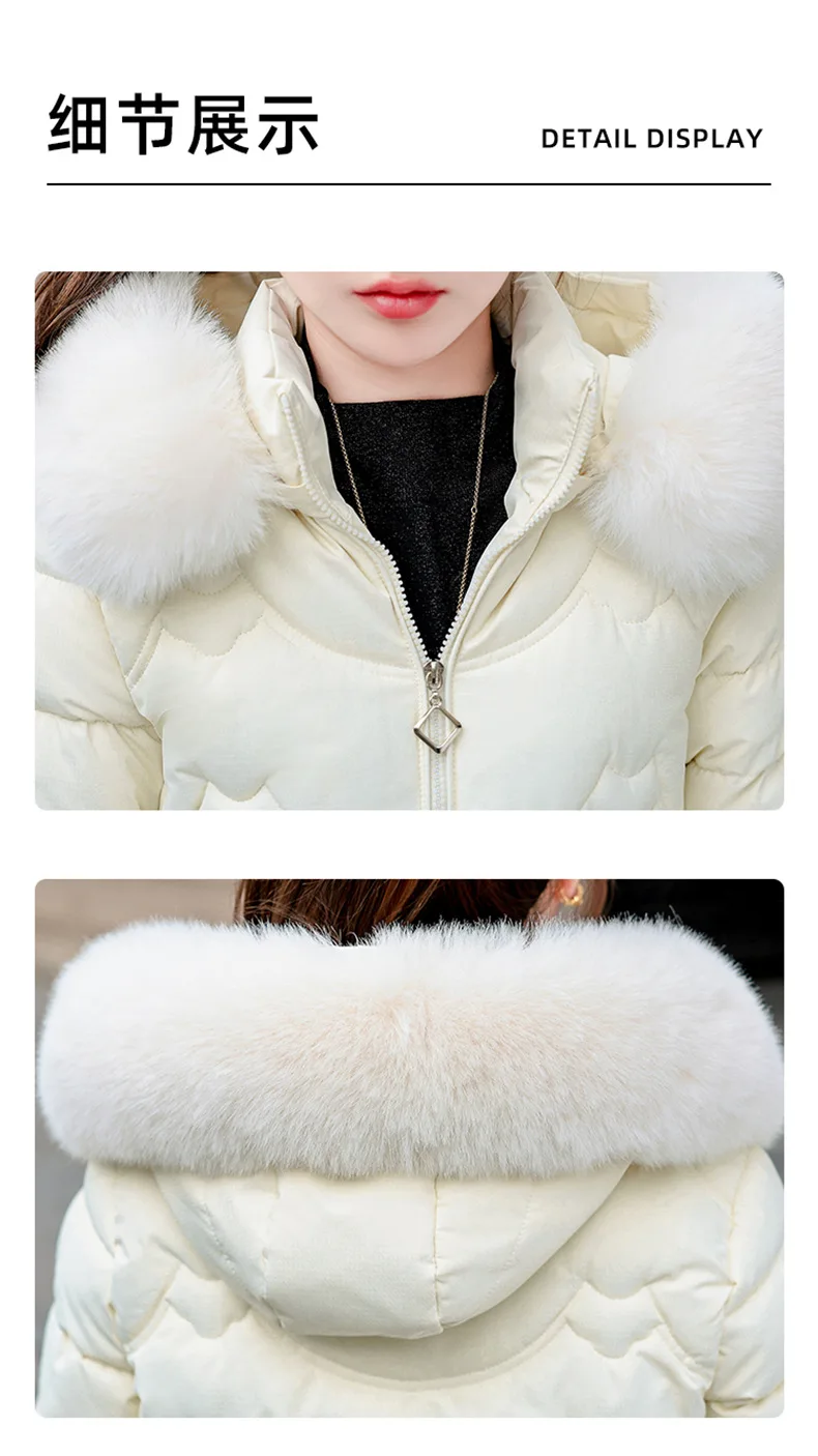 2025 Nuova giacca calda con cappello di pelliccia staccabile, cappotto di cotone spesso autunno e inverno, cappotto di cotone a maniche lunghe, cappotto di cotone Parker