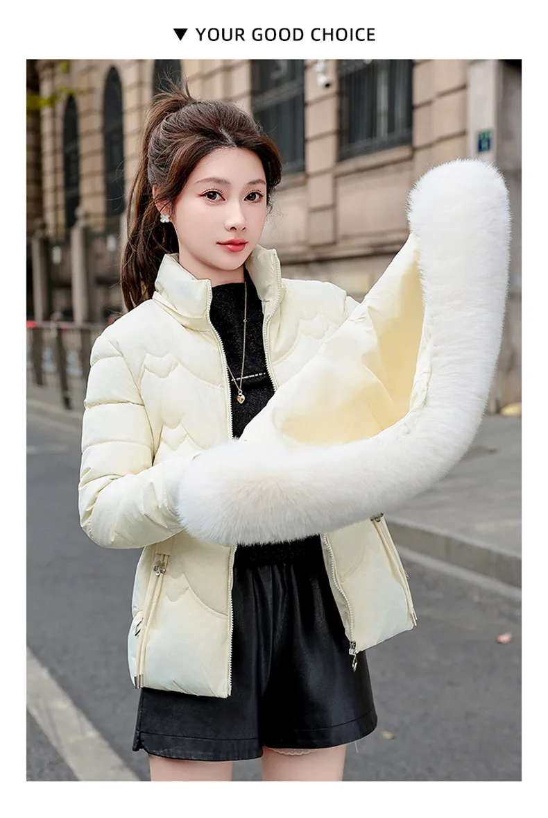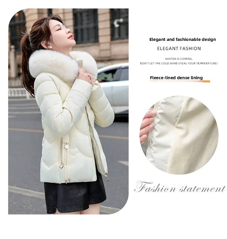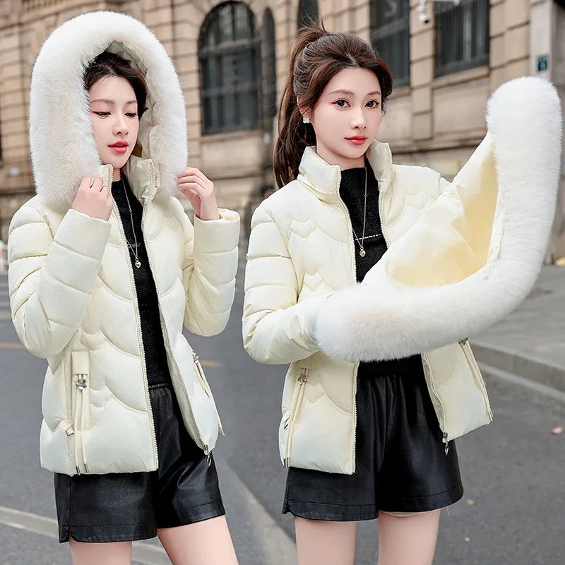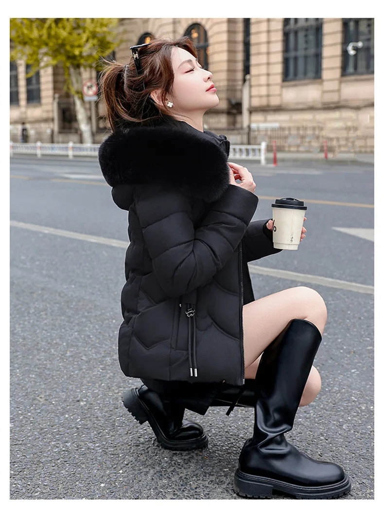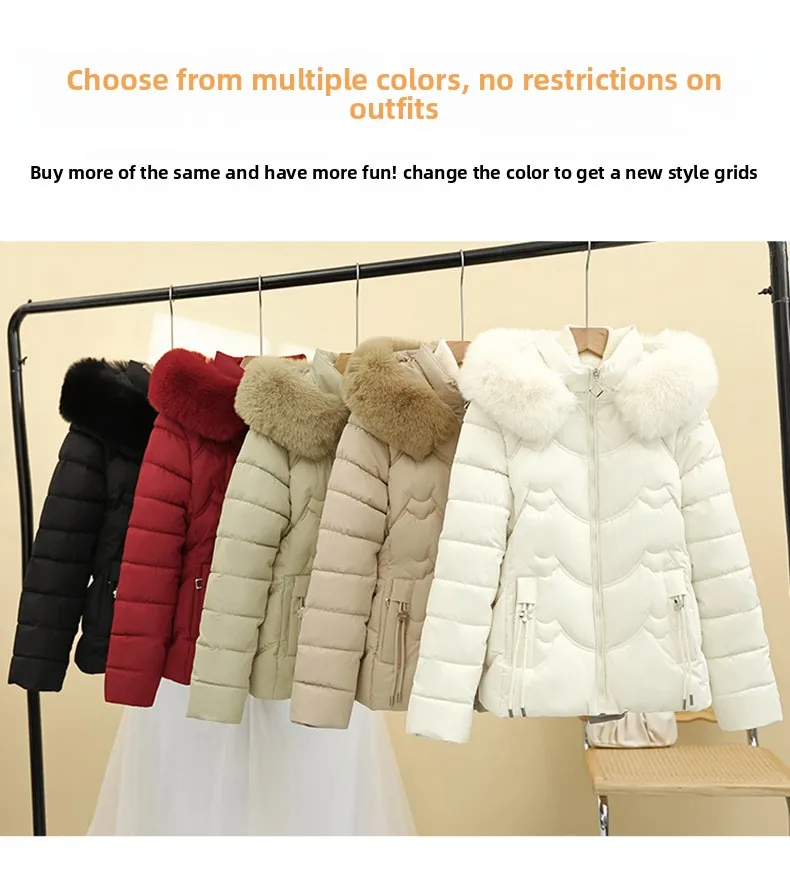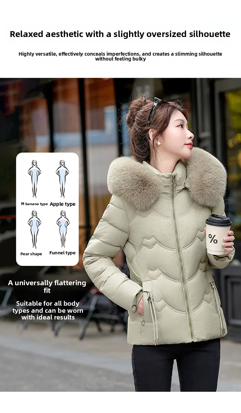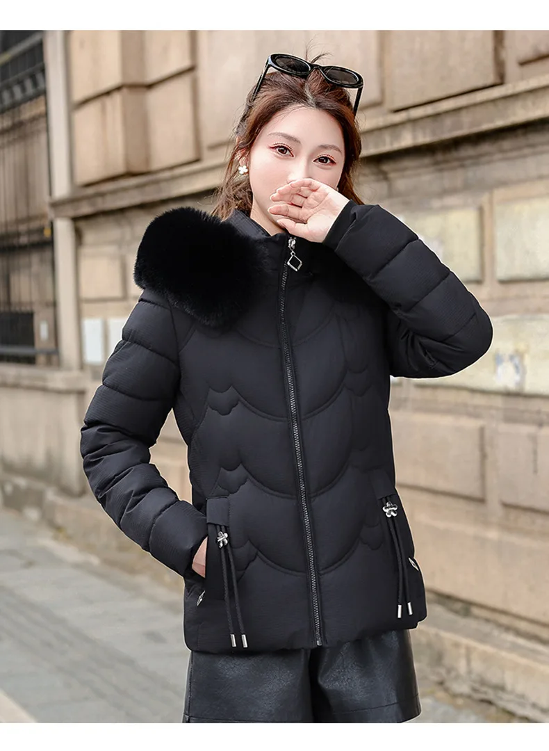 2025 Nuova giacca calda con cappello di pelliccia staccabile, cappotto di cotone spesso autunno e inverno, cappotto di cotone a maniche lunghe, cappotto di cotone Parker