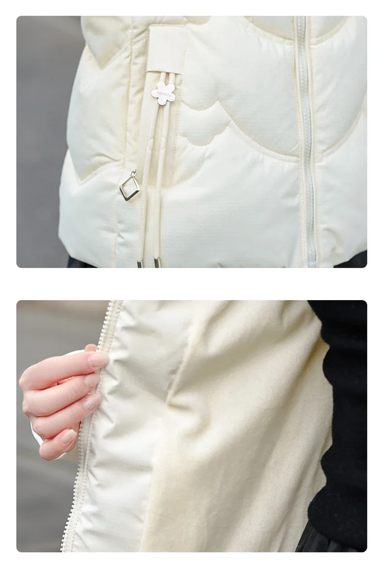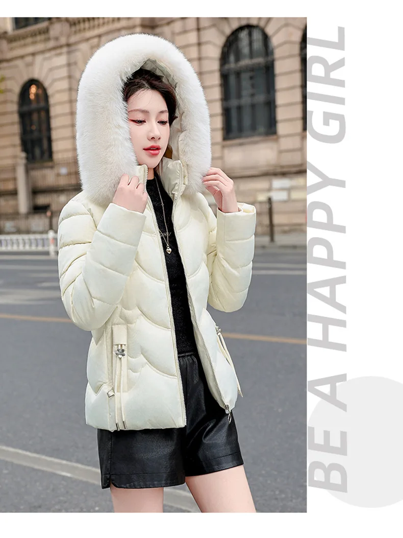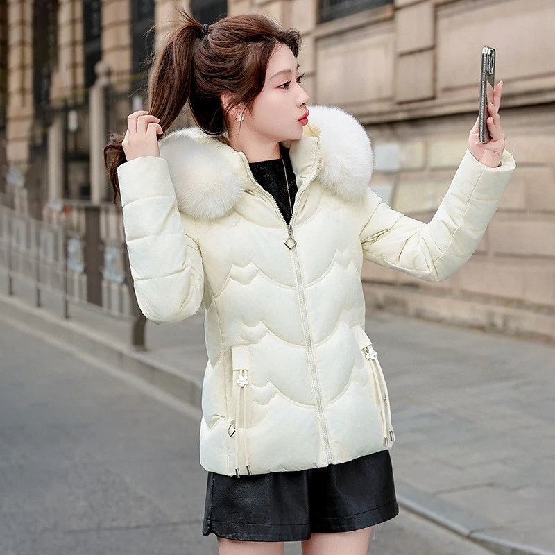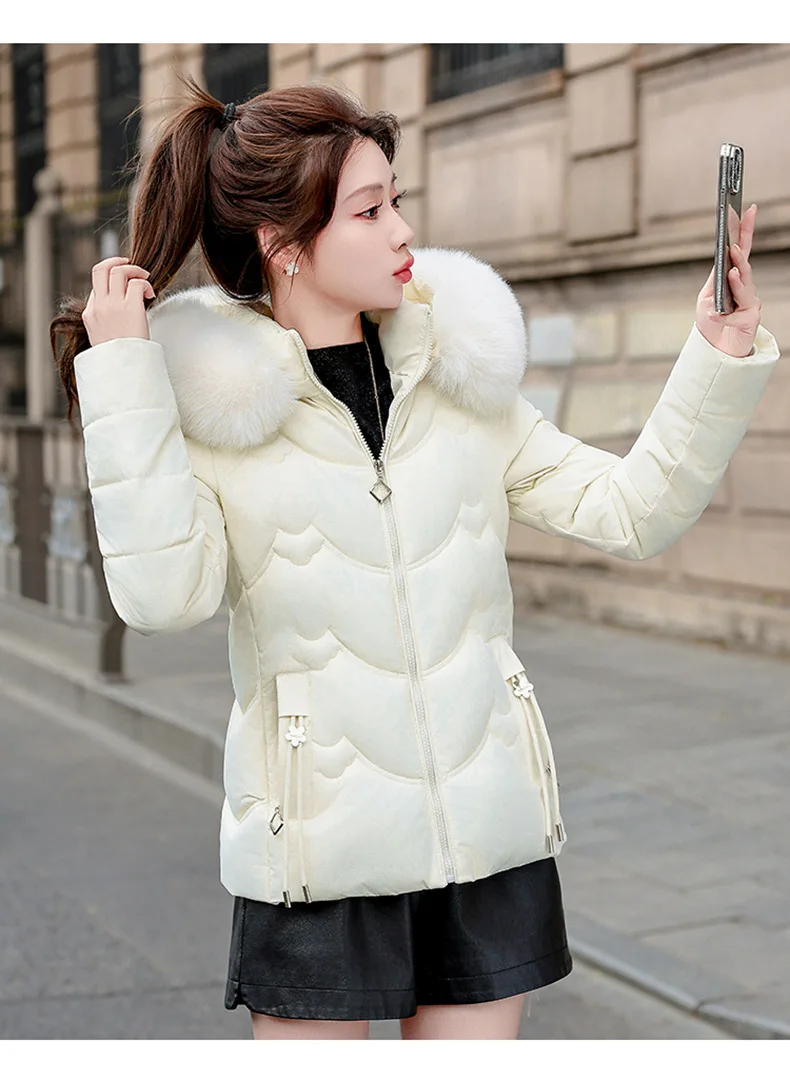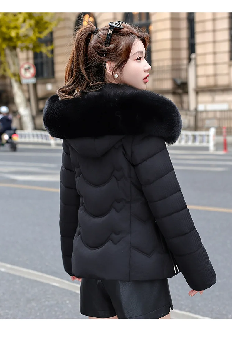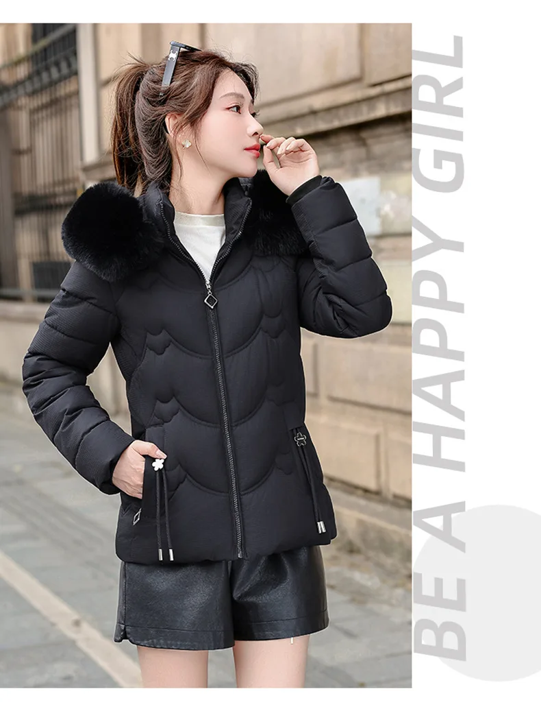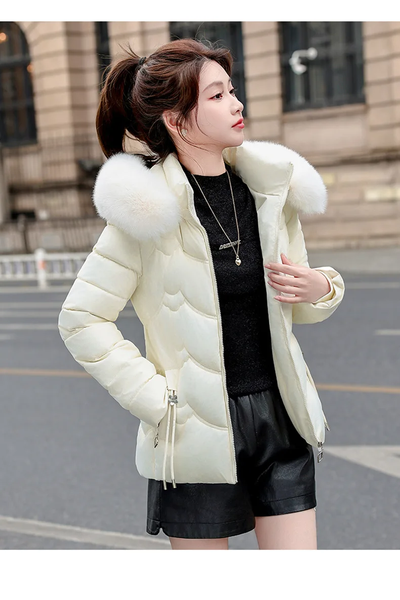 2025 Nuova giacca calda con cappello di pelliccia staccabile, cappotto di cotone spesso autunno e inverno, cappotto di cotone a maniche lunghe, cappotto di cotone Parker