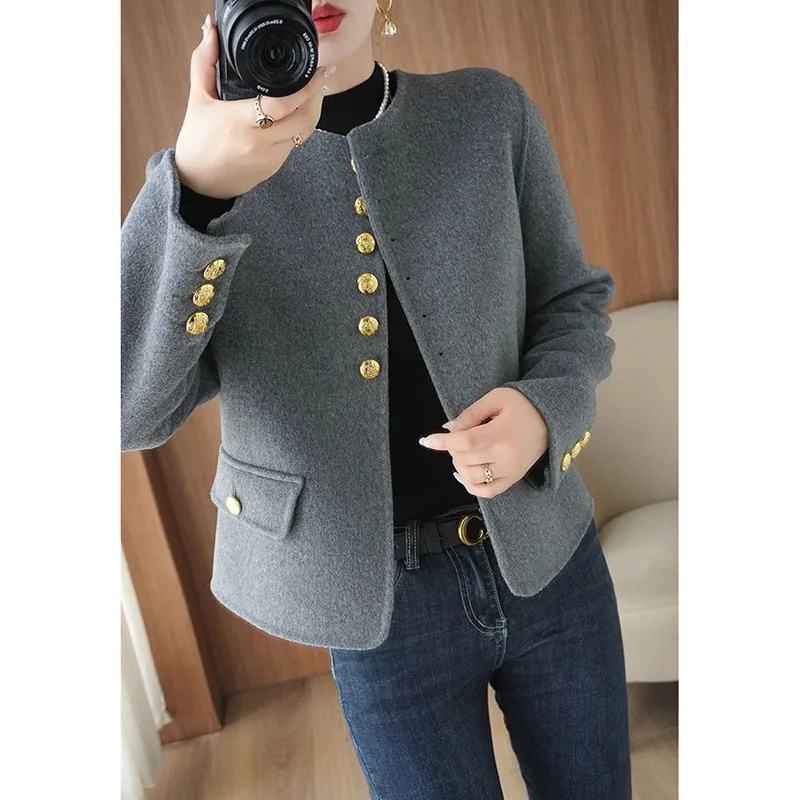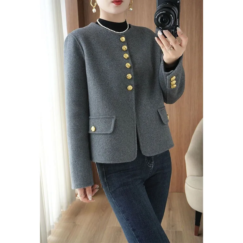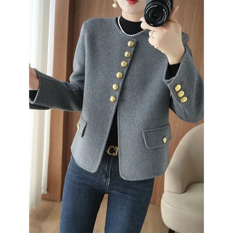2025 Nuova giacca corta di lana per donna Primavera Autunno Inverno Cappotto di lana double face Cappotto di moda versatile stile coreano Top