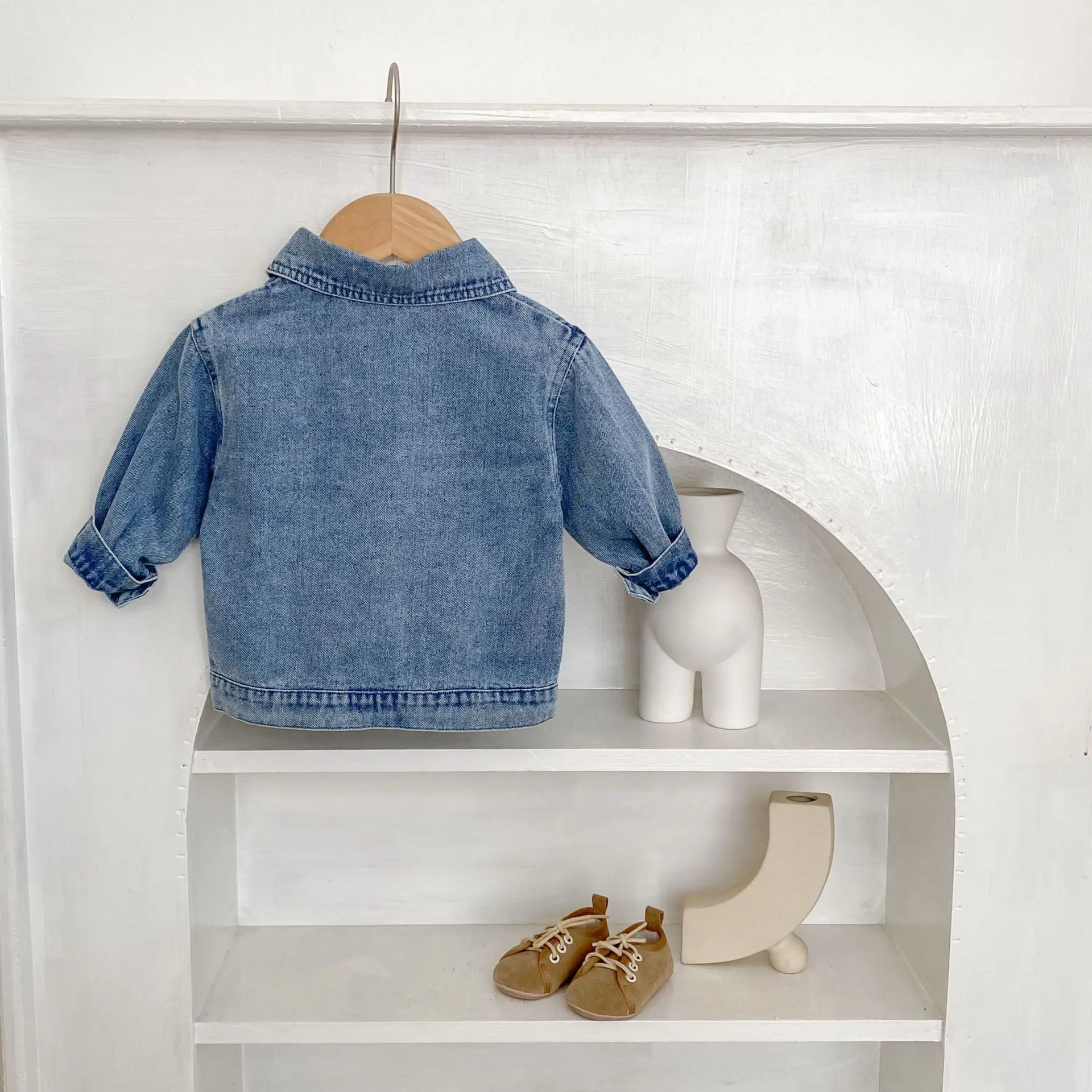 2025 Nuova giacca di jeans autunnale per ragazzi e ragazze, top di jeans casual e alla moda, cardigan con risvolto in denim