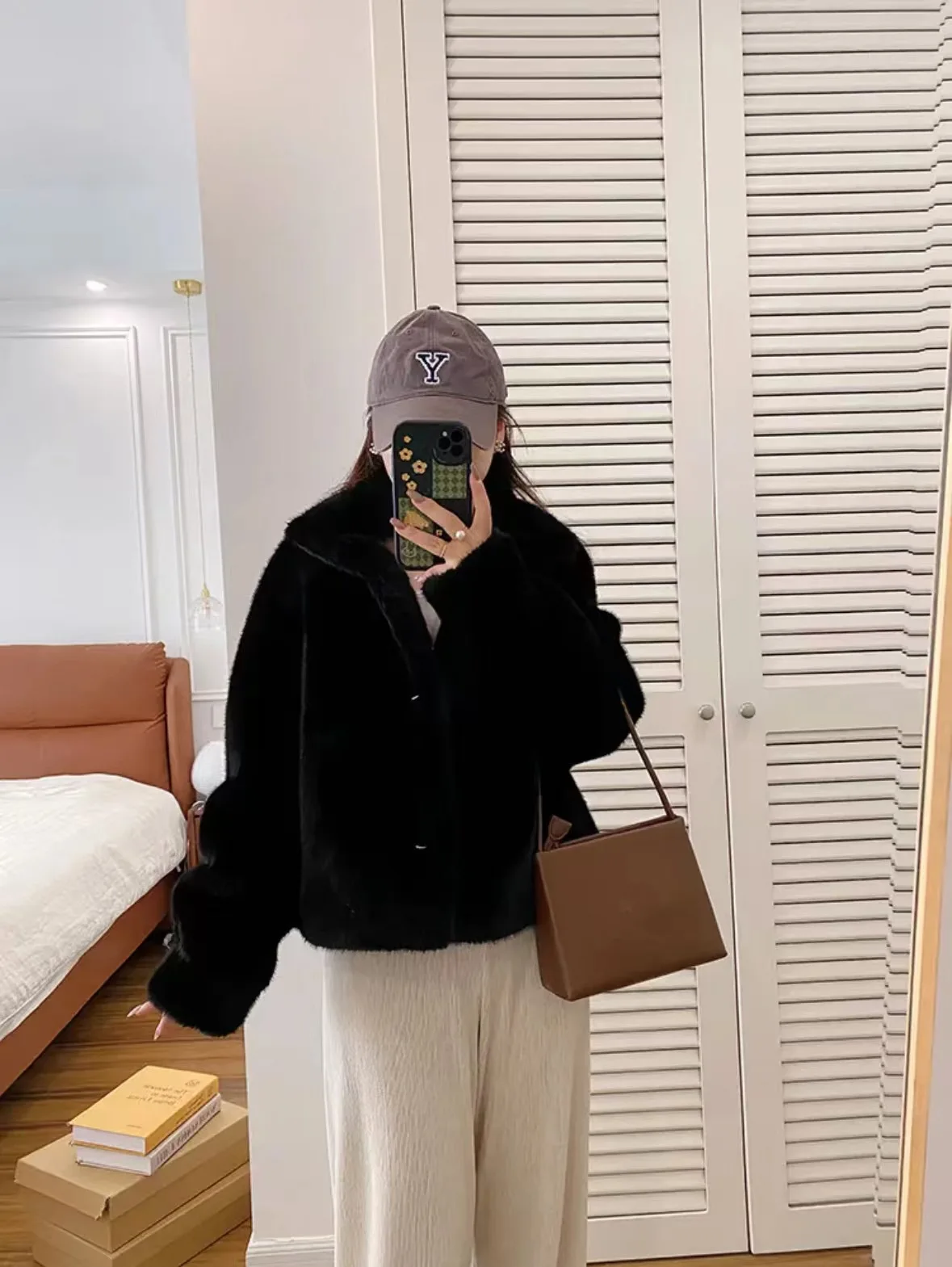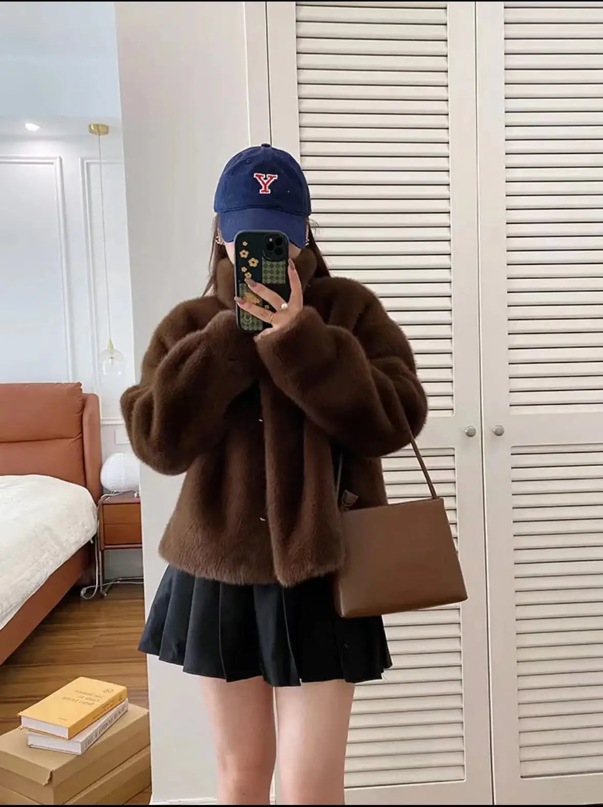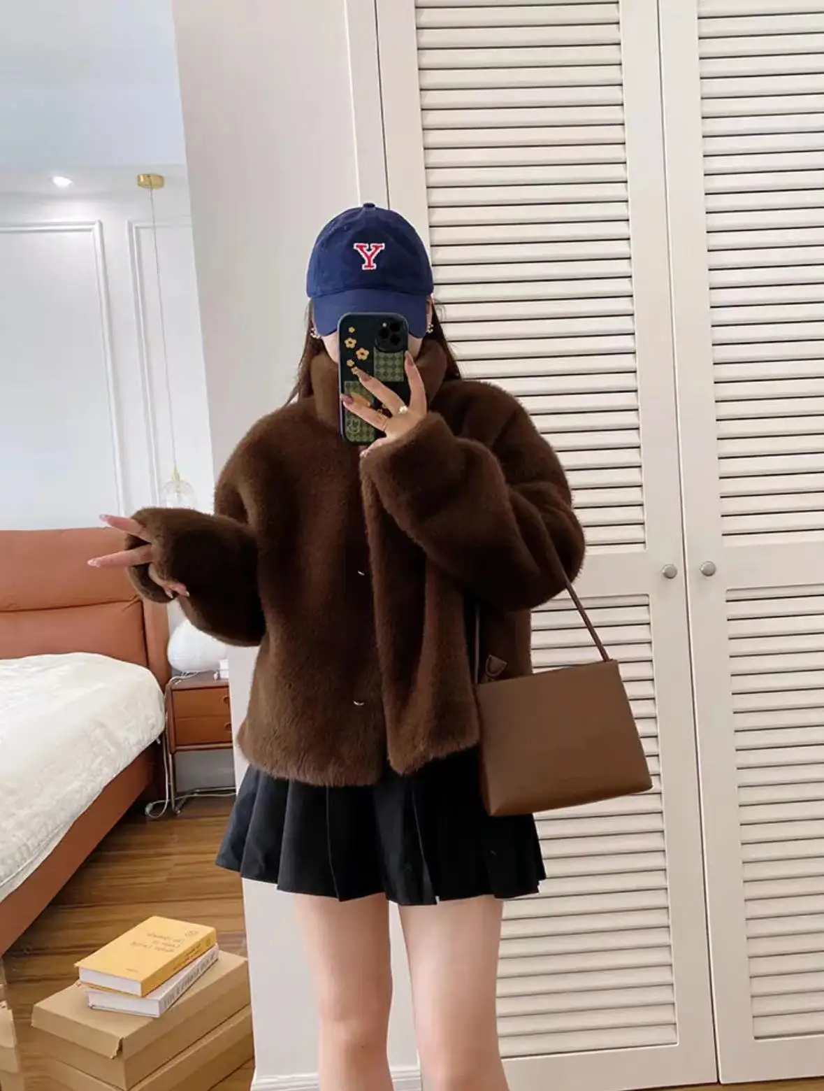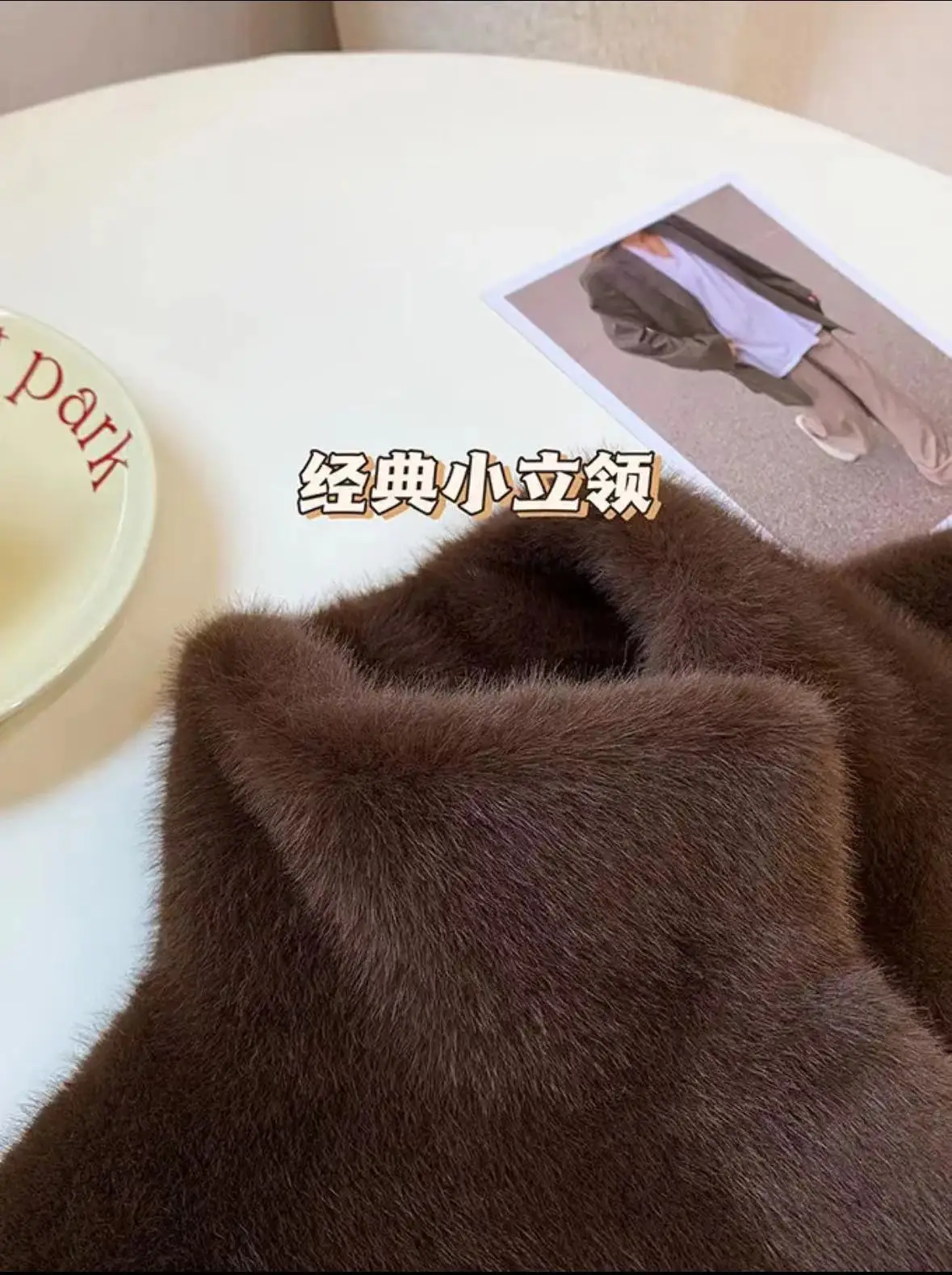 2025 Nuova giacca in pelliccia sintetica Pelliccia di visone dorato All’interno Colletto corto alla coreana Cappotto invernale da donna Nuovo arrivo