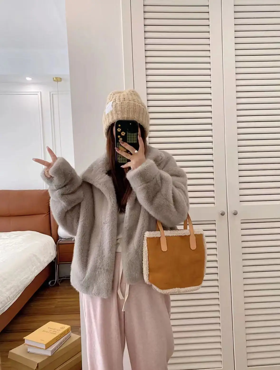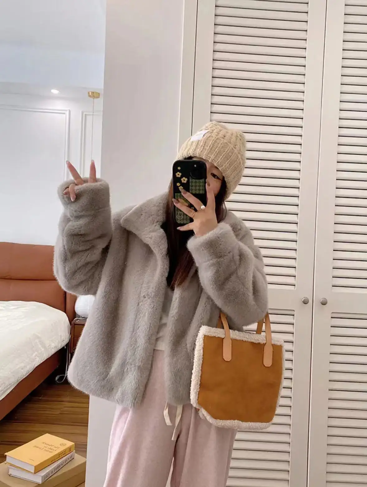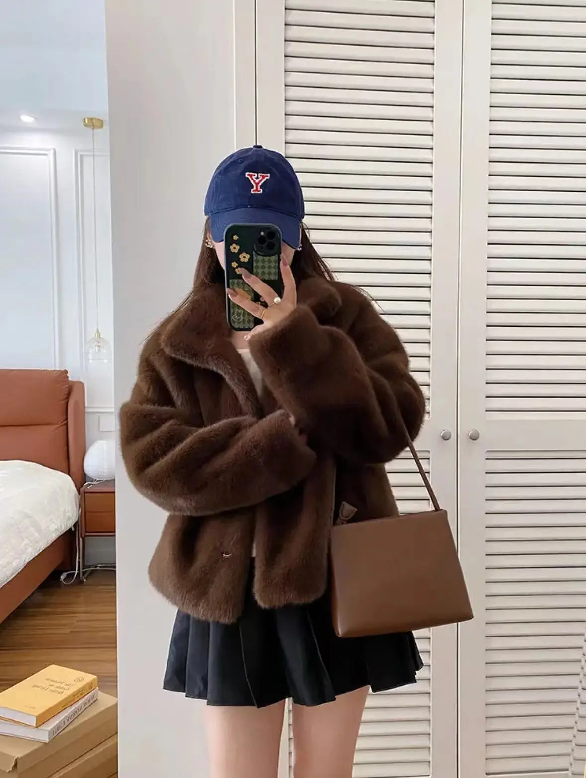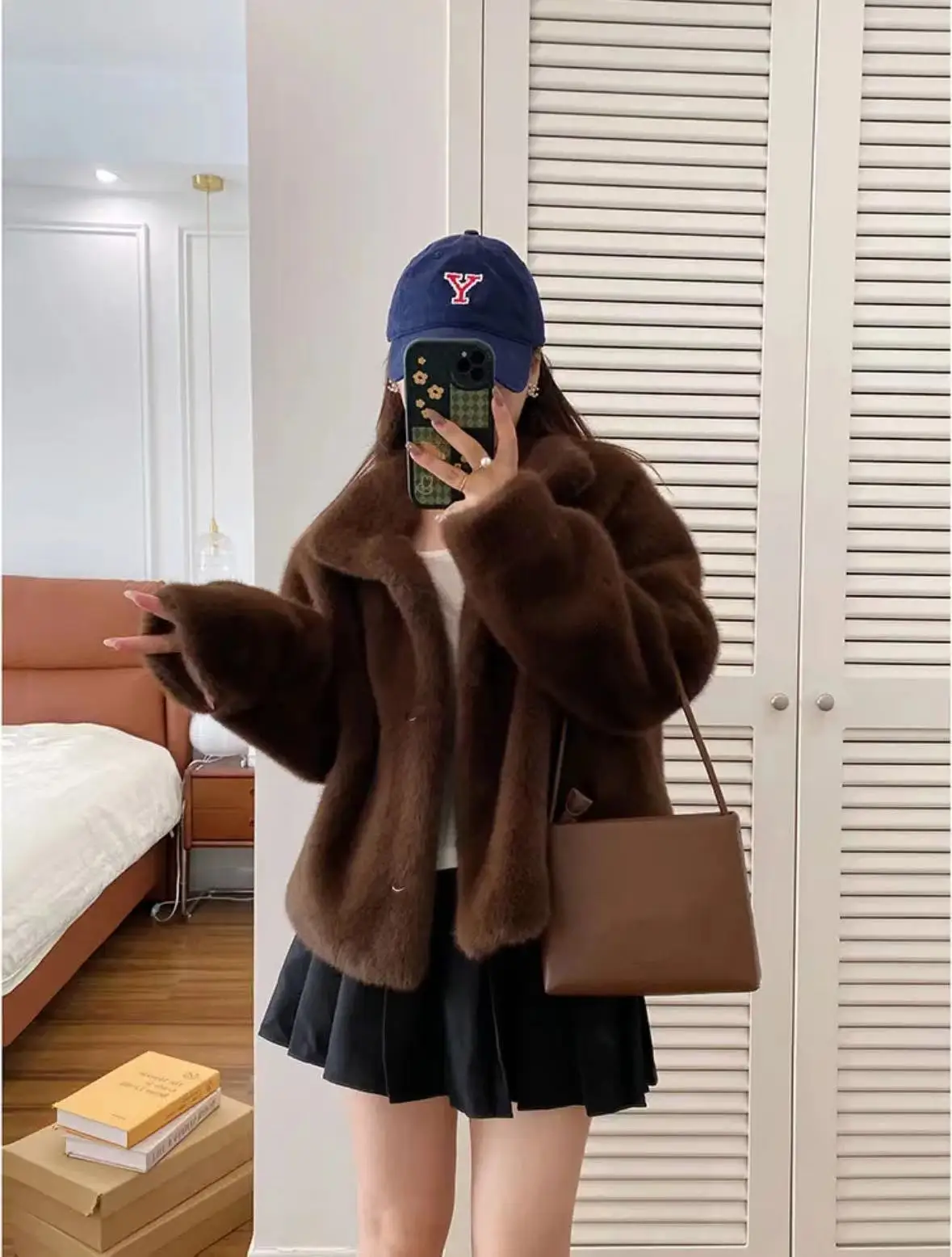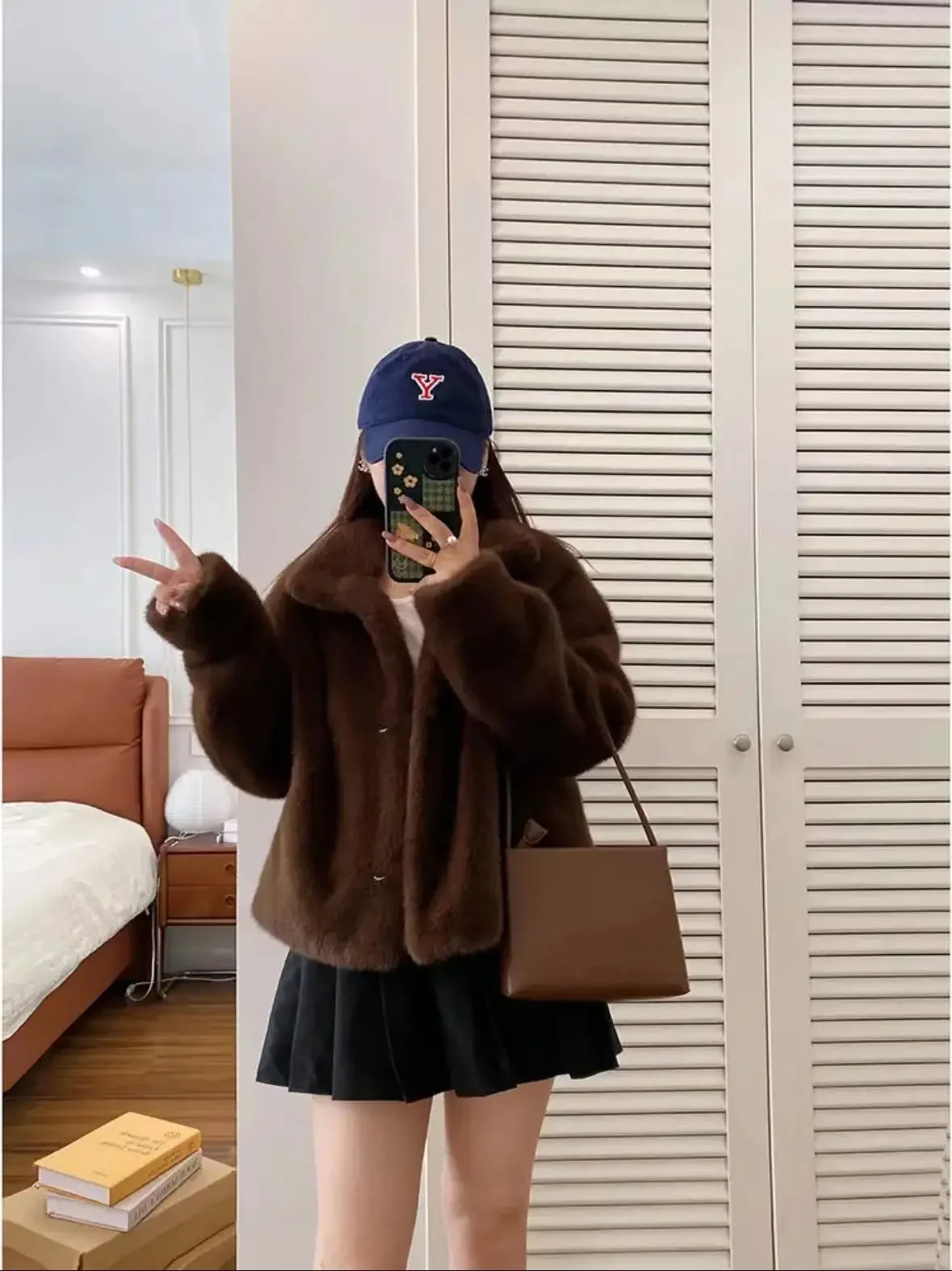 2025 Nuova giacca in pelliccia sintetica Pelliccia di visone dorato All’interno Colletto corto alla coreana Cappotto invernale da donna Nuovo arrivo