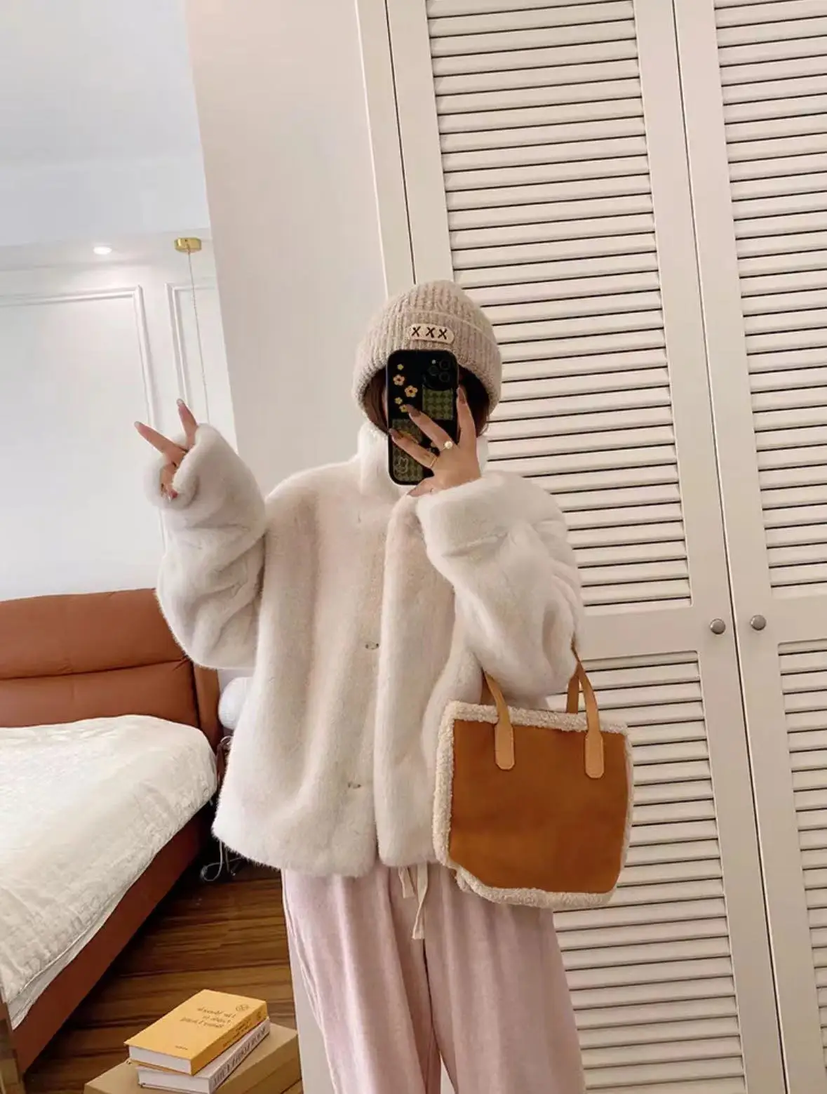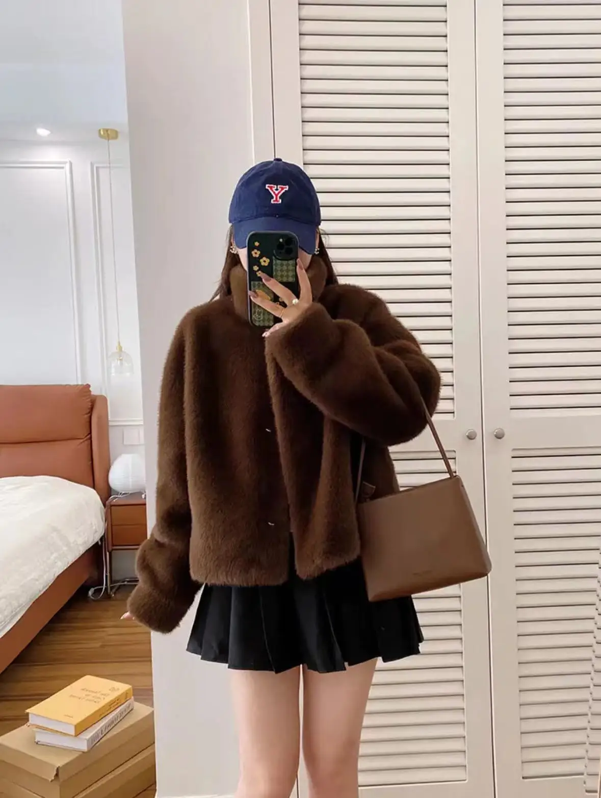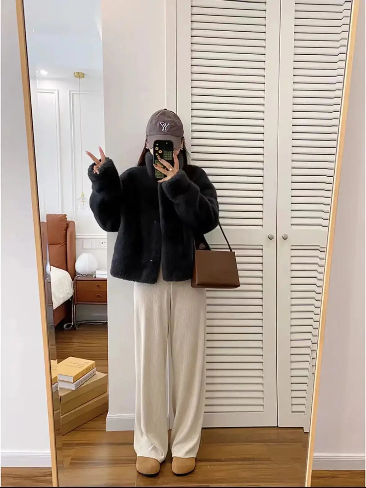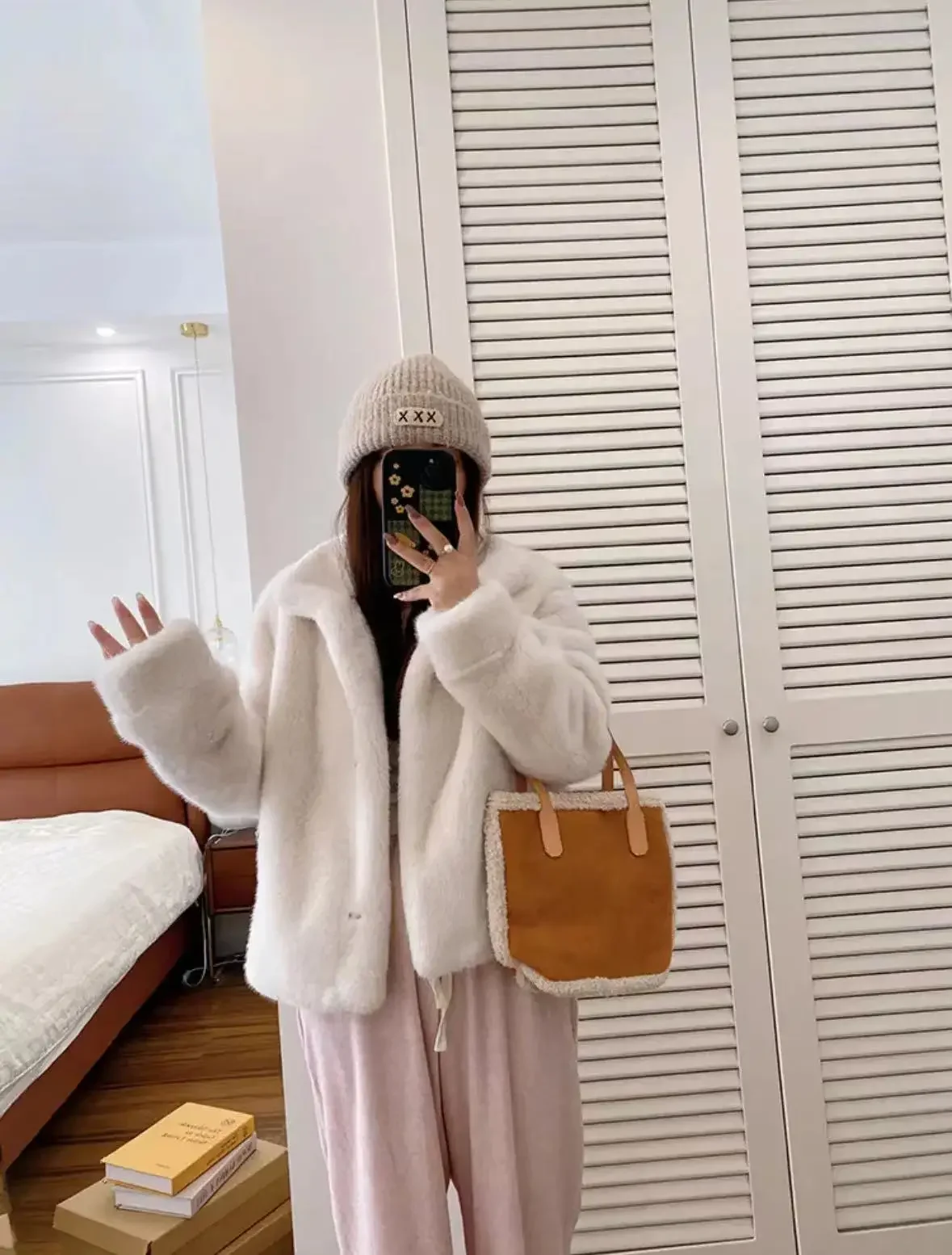 2025 Nuova giacca in pelliccia sintetica Pelliccia di visone dorato All’interno Colletto corto alla coreana Cappotto invernale da donna Nuovo arrivo