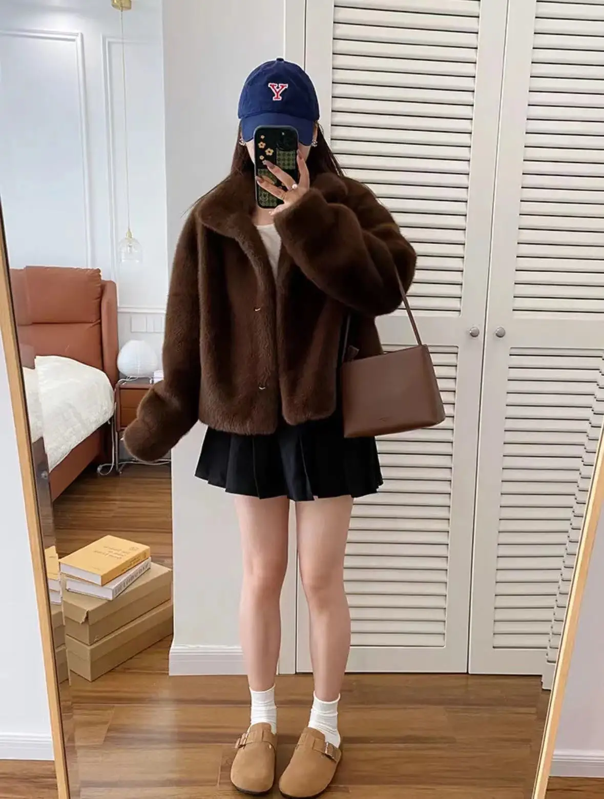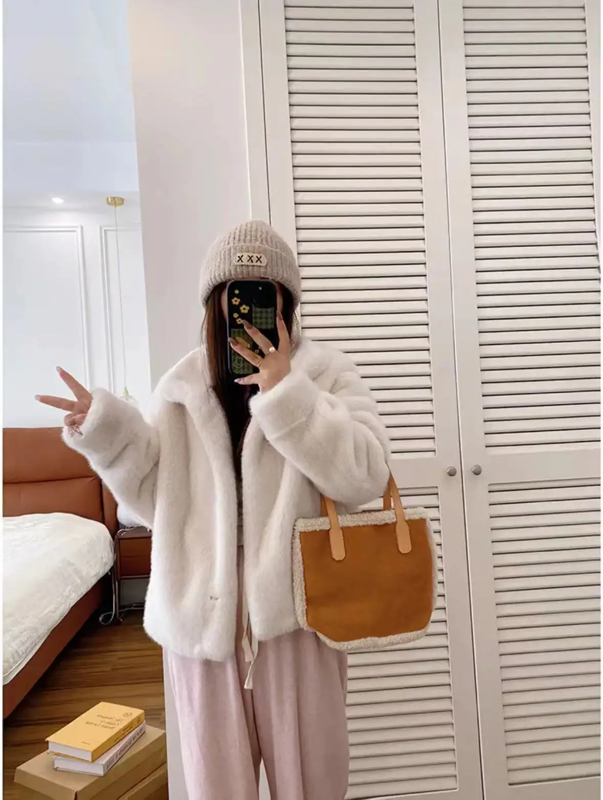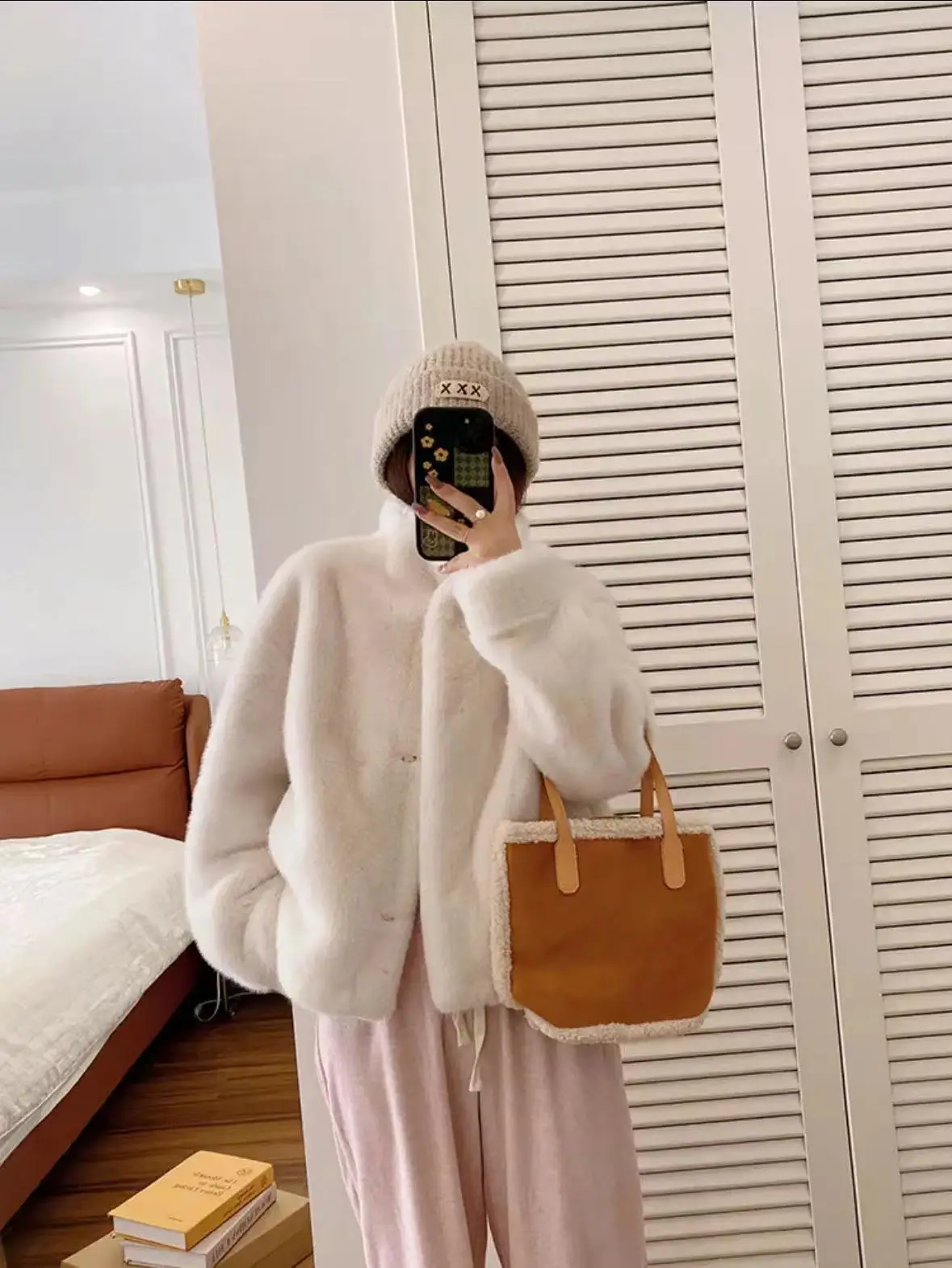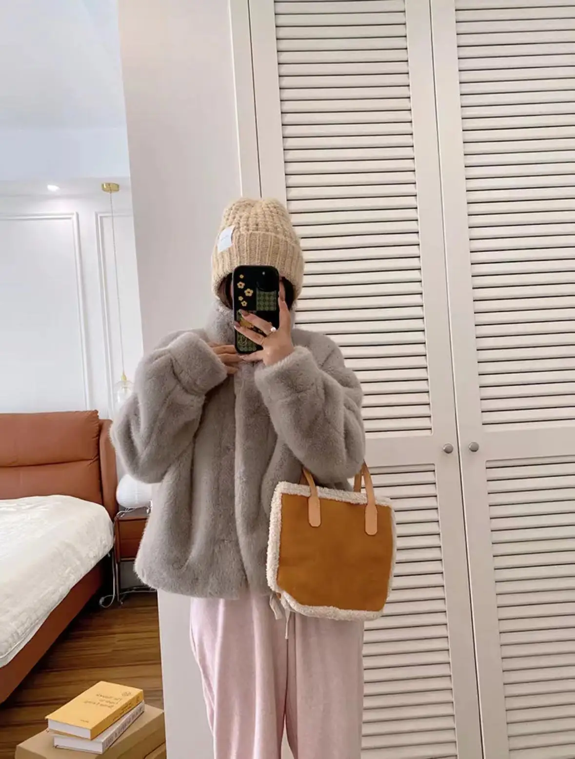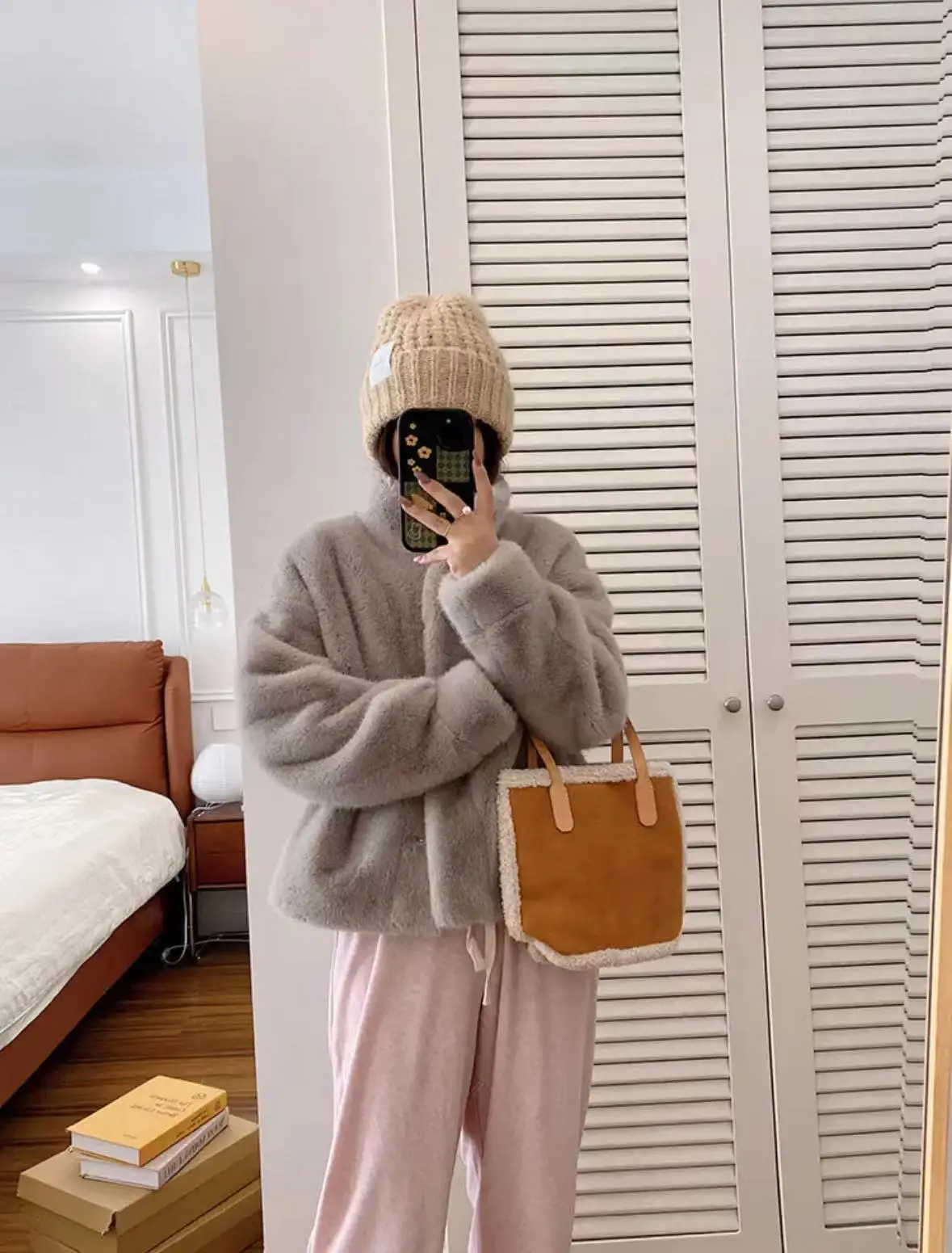 2025 Nuova giacca in pelliccia sintetica Pelliccia di visone dorato All’interno Colletto corto alla coreana Cappotto invernale da donna Nuovo arrivo