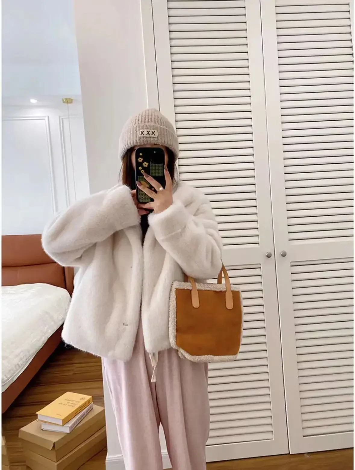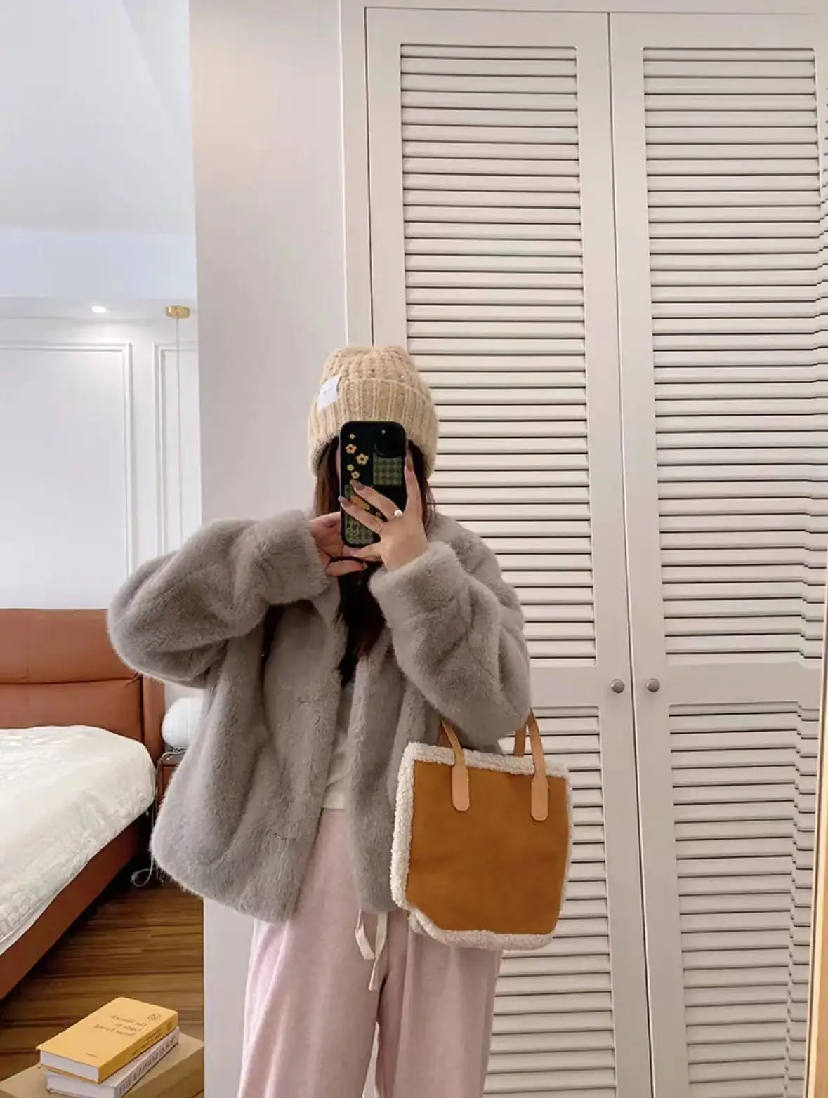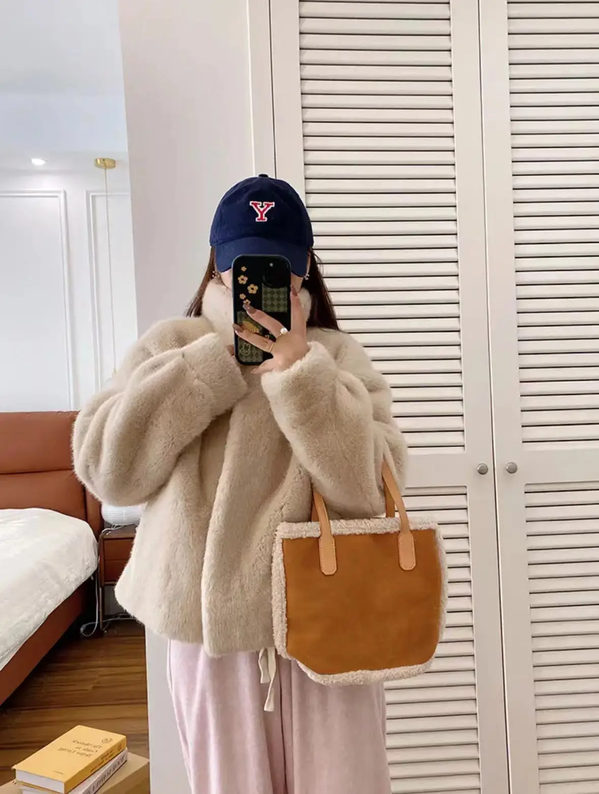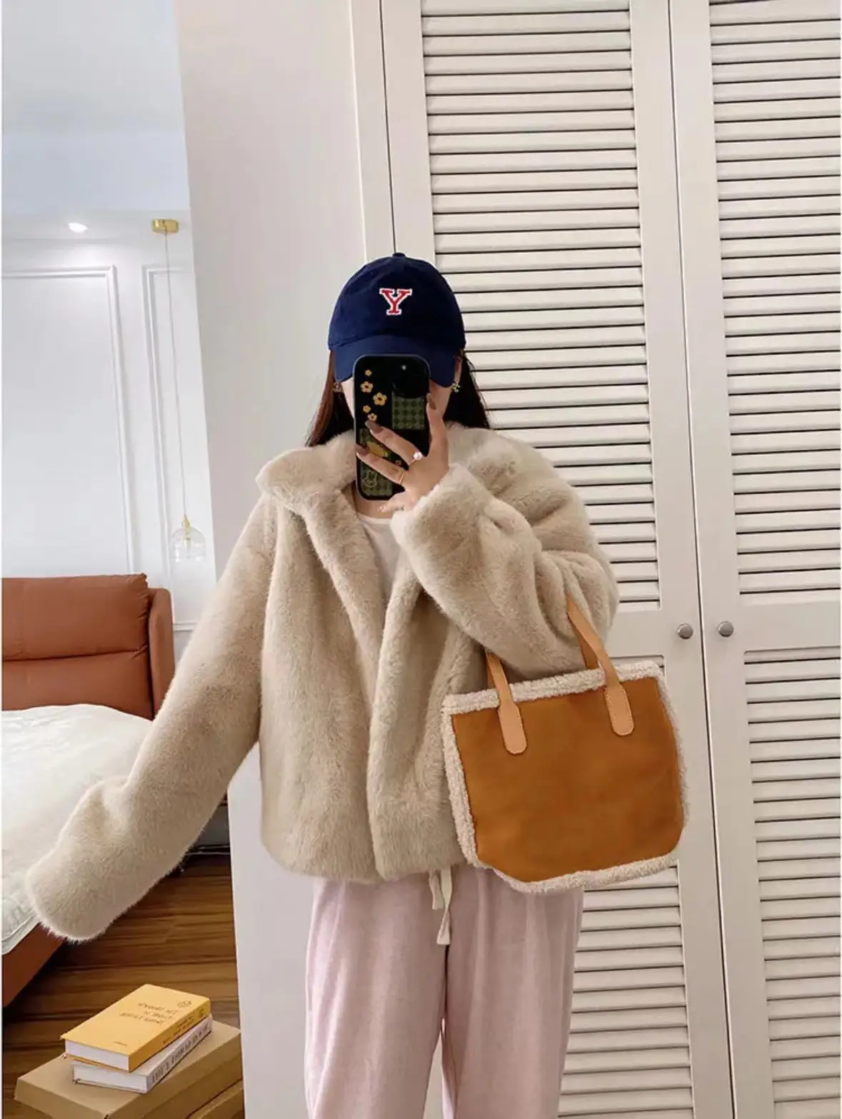 2025 Nuova giacca in pelliccia sintetica Pelliccia di visone dorato All’interno Colletto corto alla coreana Cappotto invernale da donna Nuovo arrivo