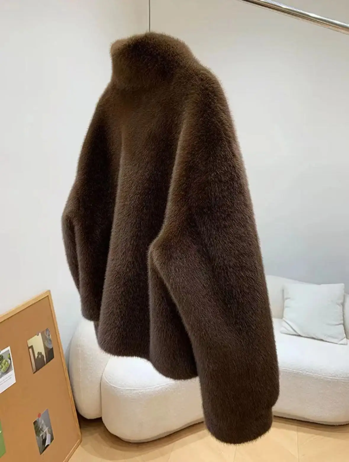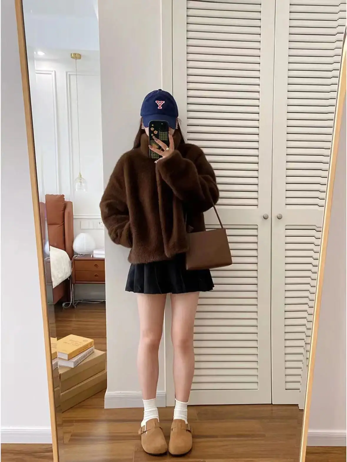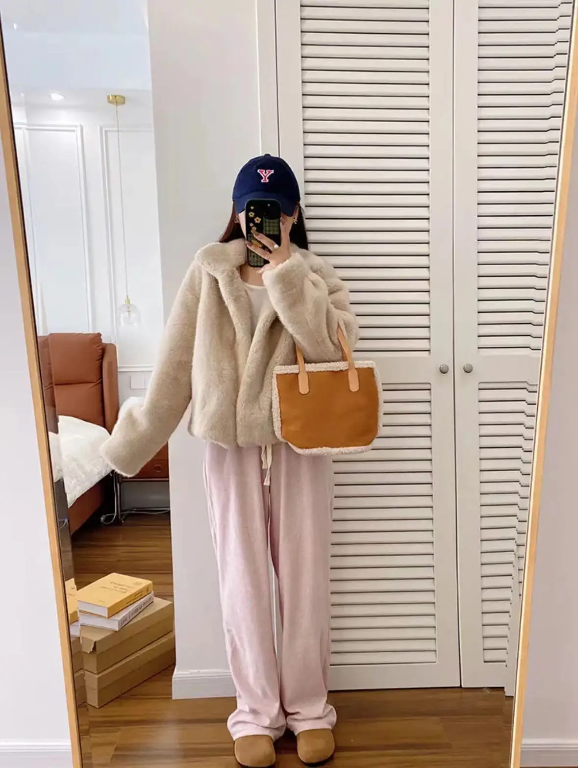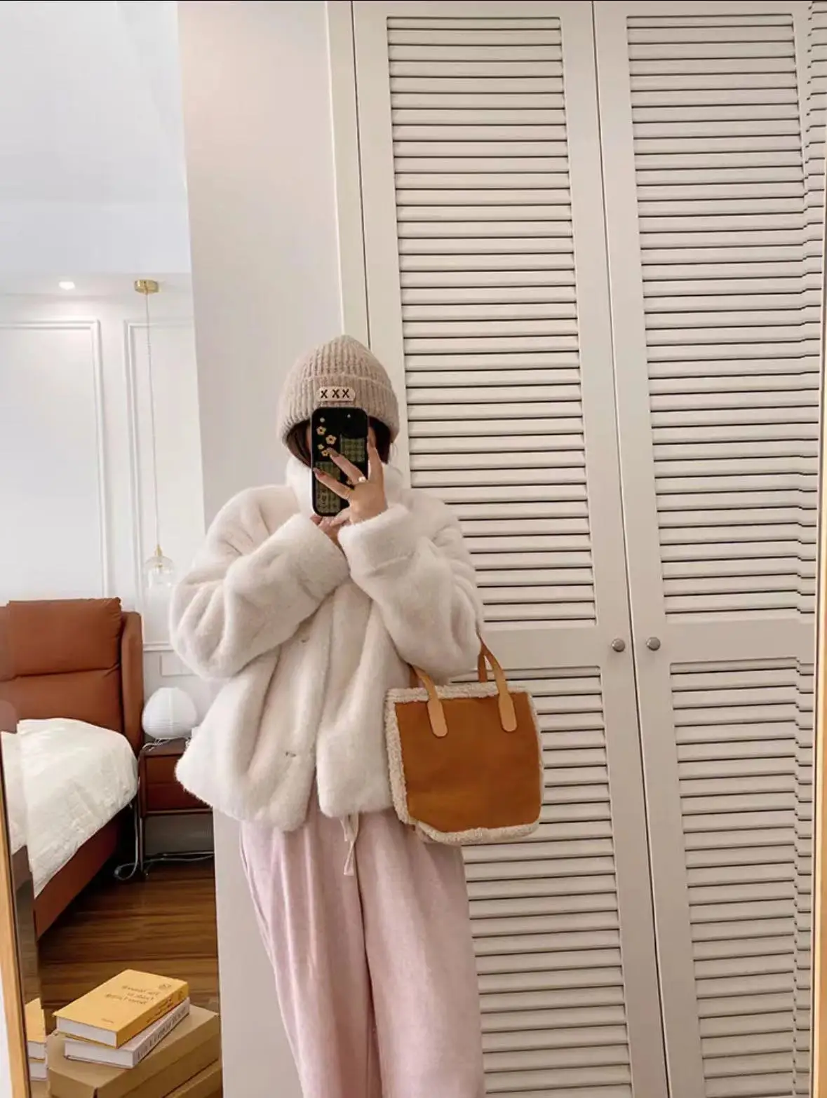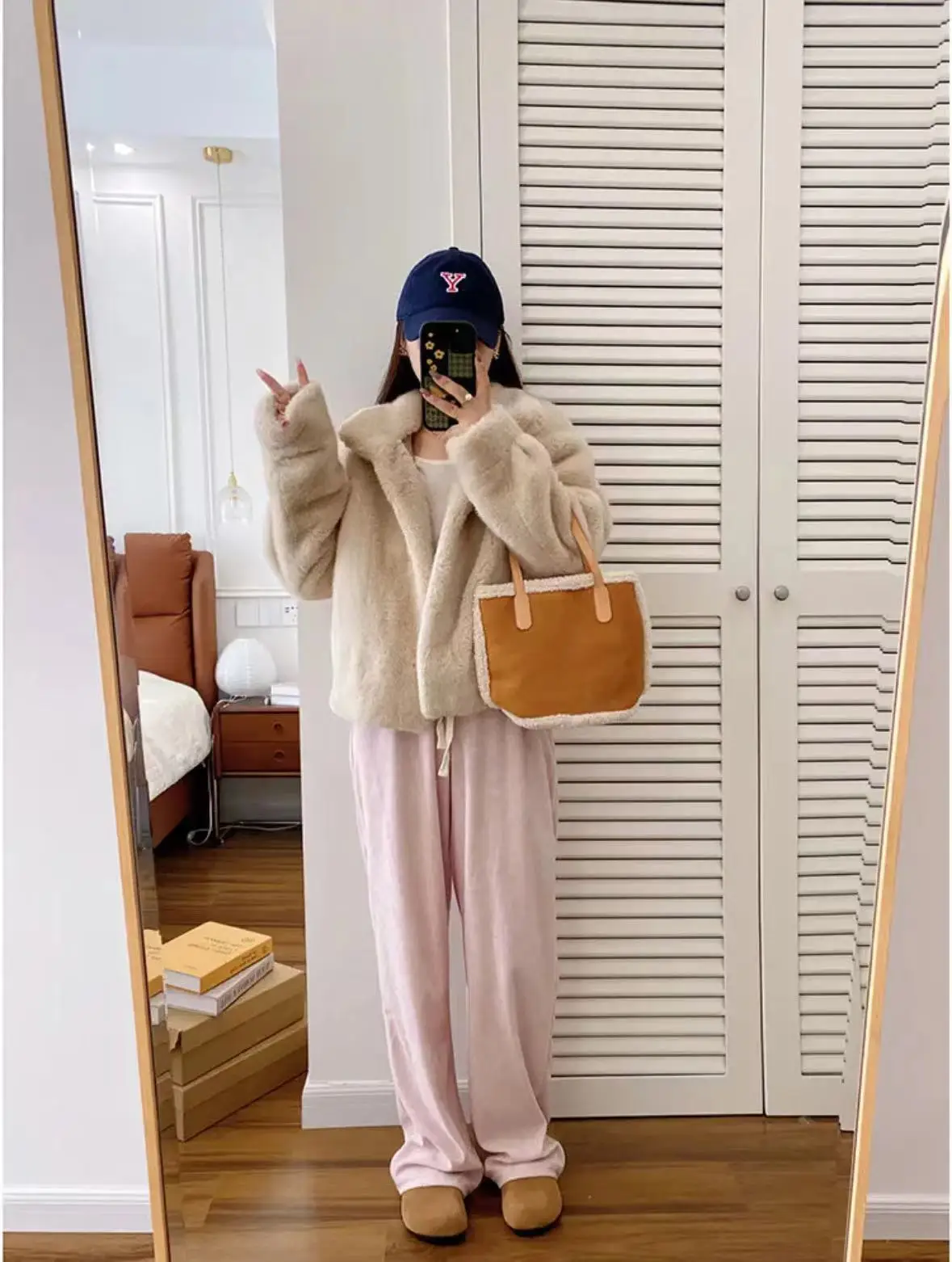 2025 Nuova giacca in pelliccia sintetica Pelliccia di visone dorato All’interno Colletto corto alla coreana Cappotto invernale da donna Nuovo arrivo