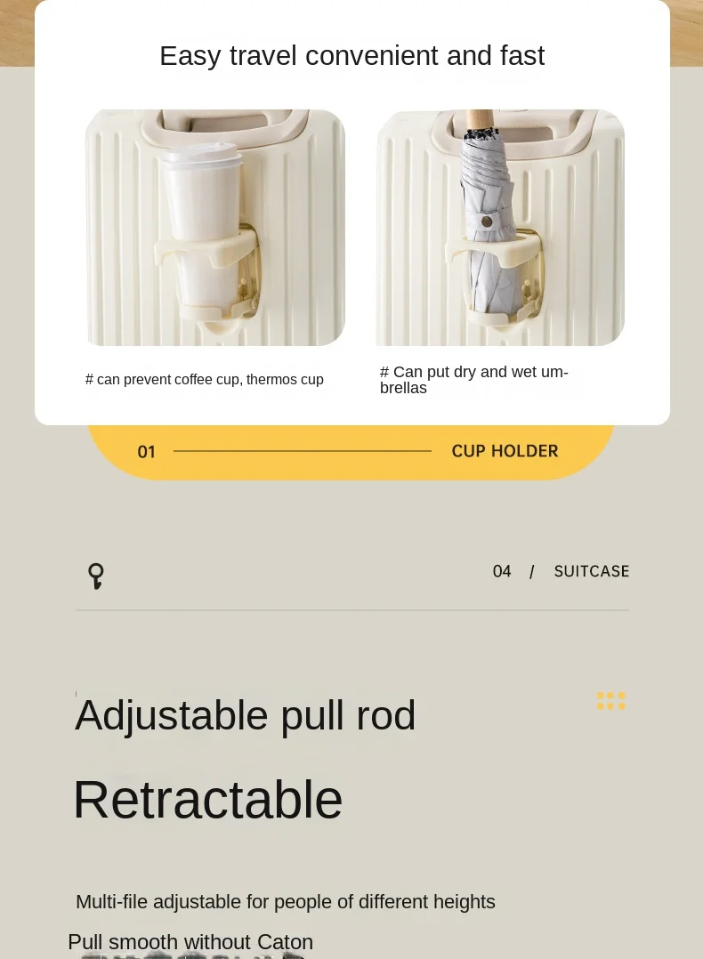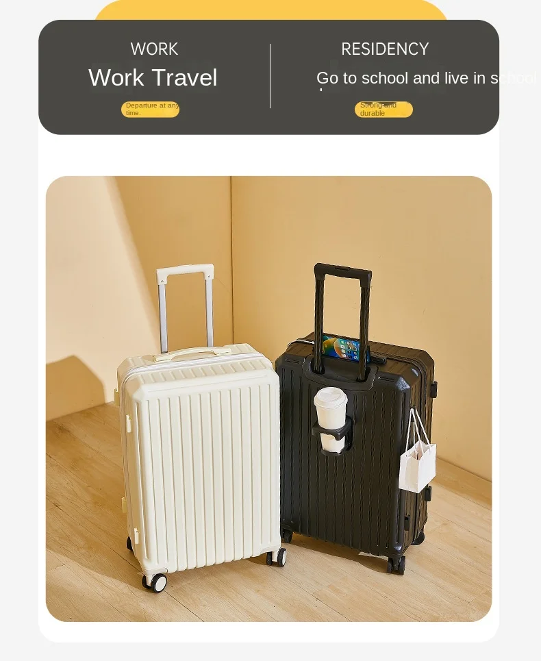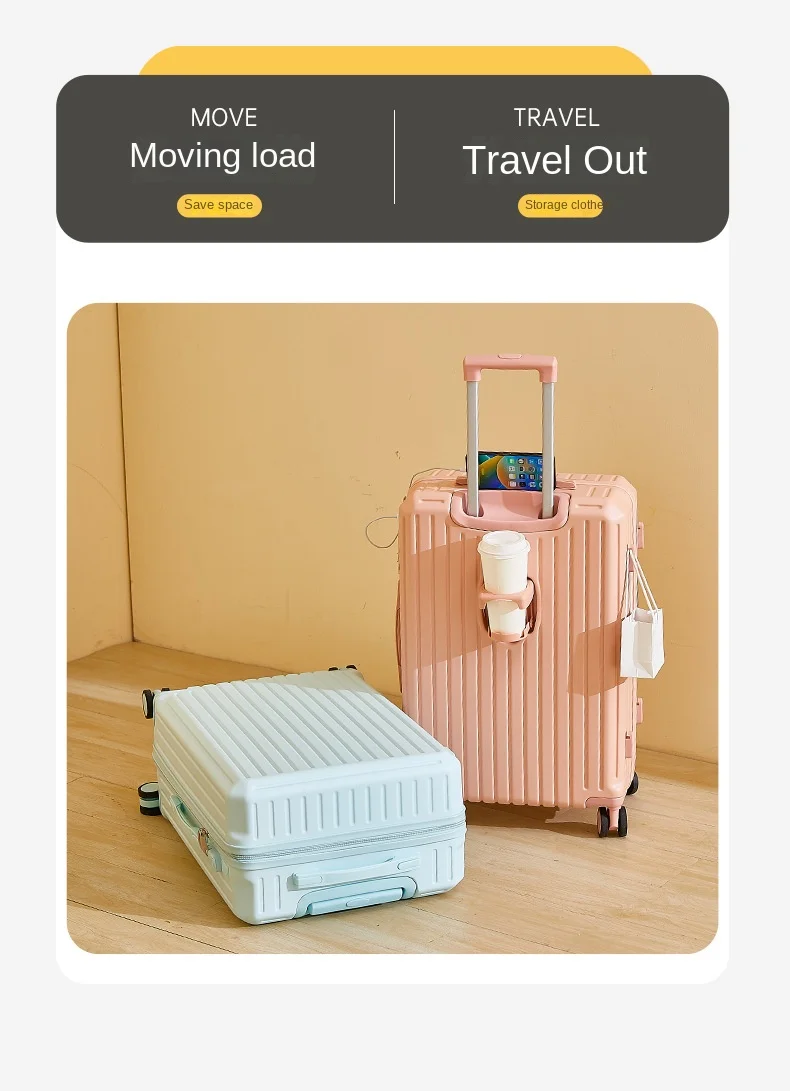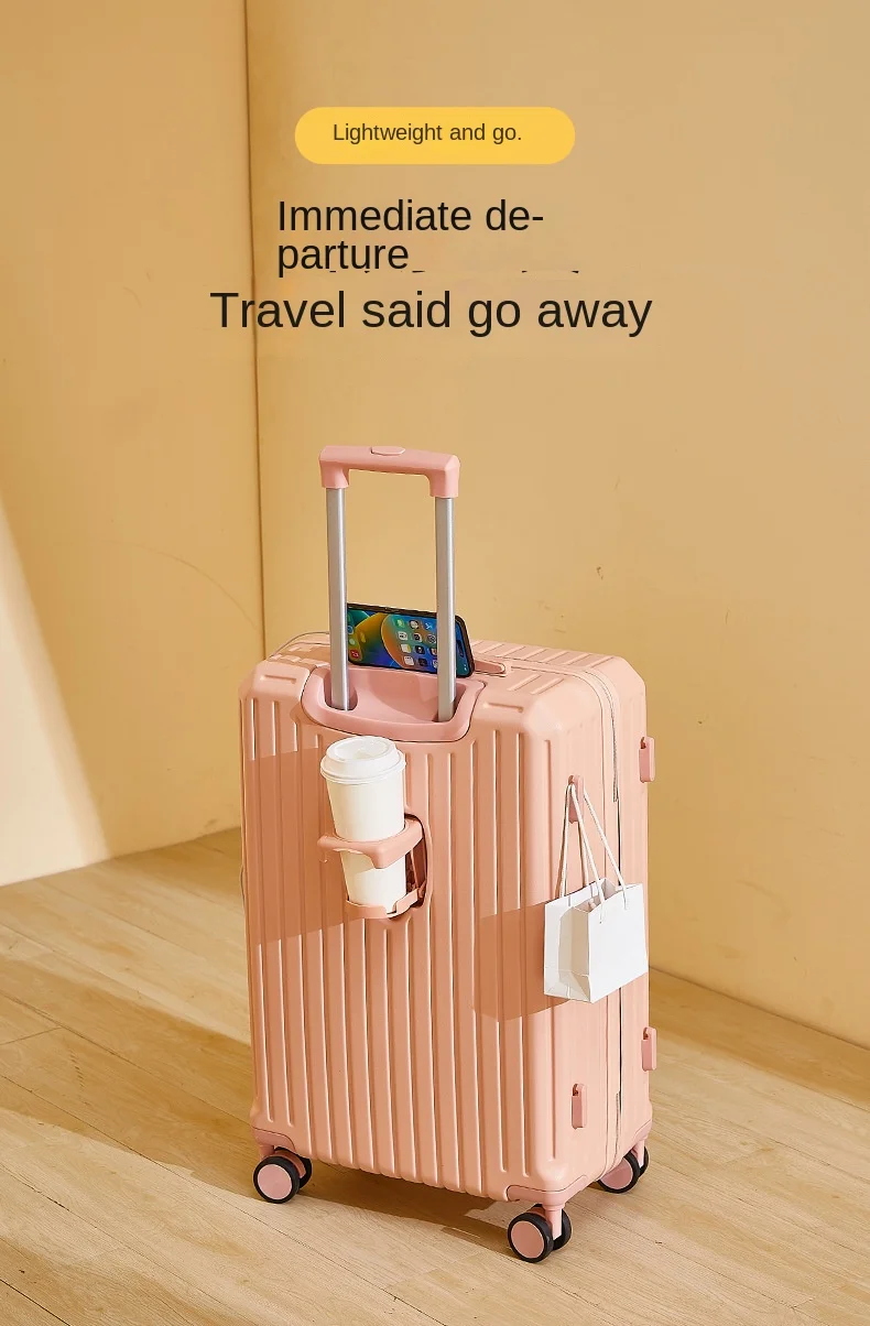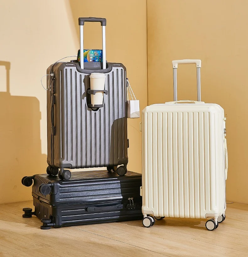 2025 Nuova valigia multifunzione Ricarica USB Valigia da cabina Portabicchieri Mute Ruota universale Valigia da viaggio per bagagli da 20-28 pollici