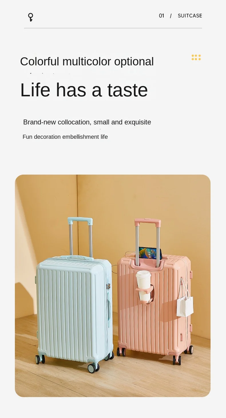 2025 Nuova valigia multifunzione Ricarica USB Valigia da cabina Portabicchieri Mute Ruota universale Valigia da viaggio per bagagli da 20-28 pollici 12025 Nuova valigia multifunzione Ricarica USB Valigia da cabina Portabicchieri Mute Ruota universale Valigia da viaggio per bagagli da 20-28 pollici