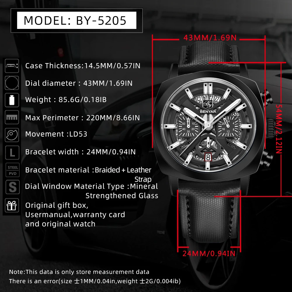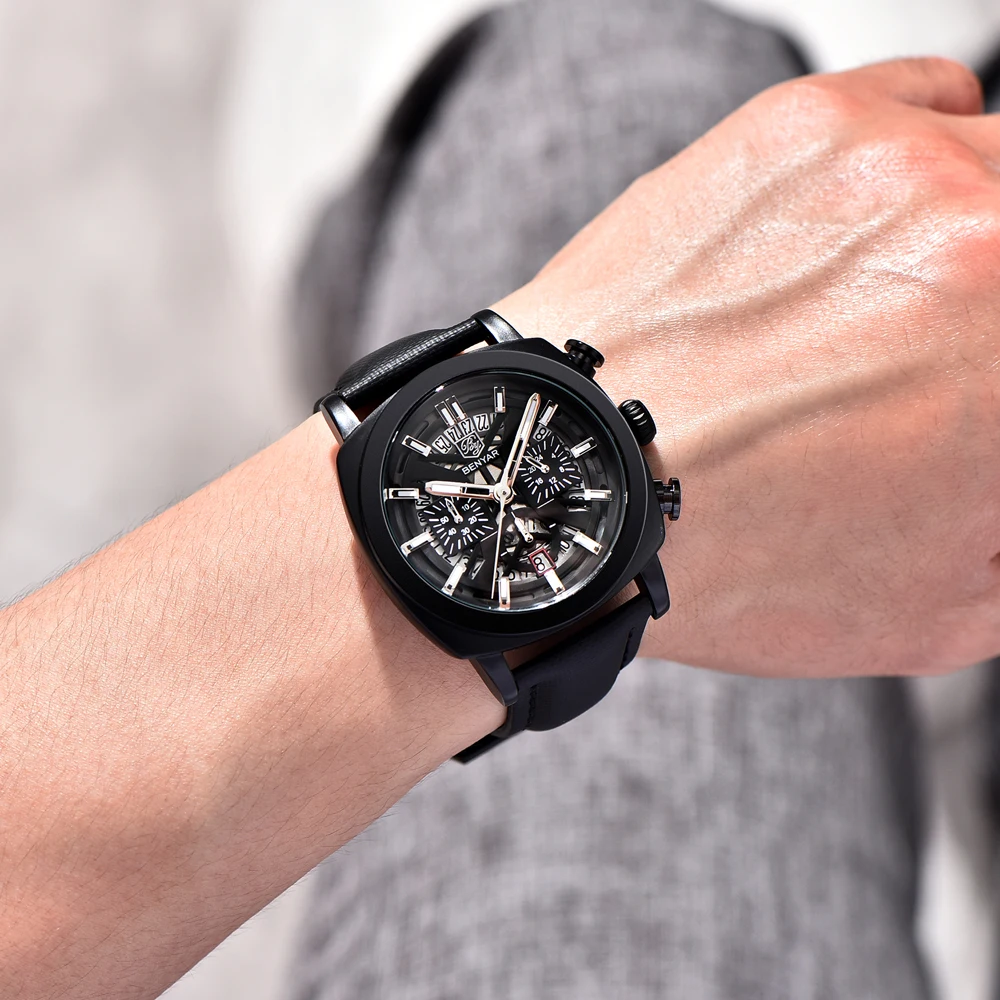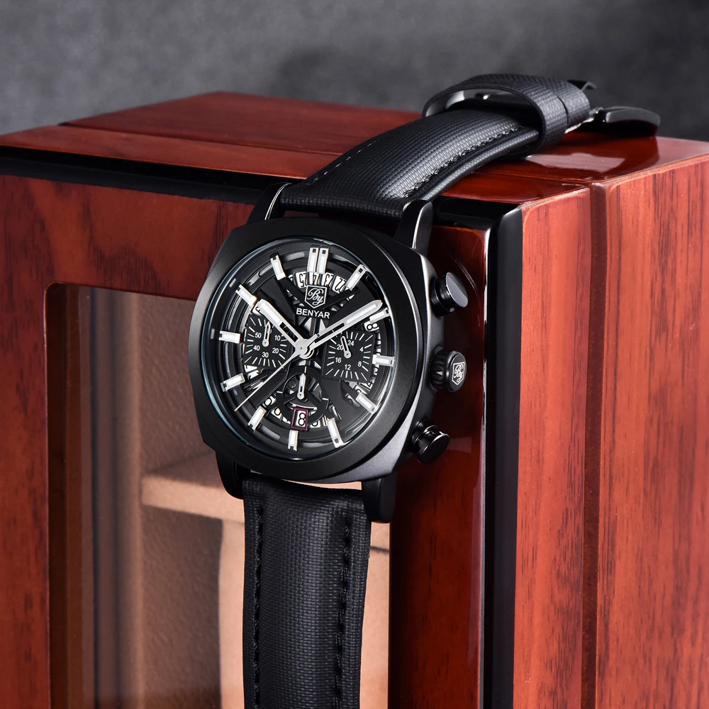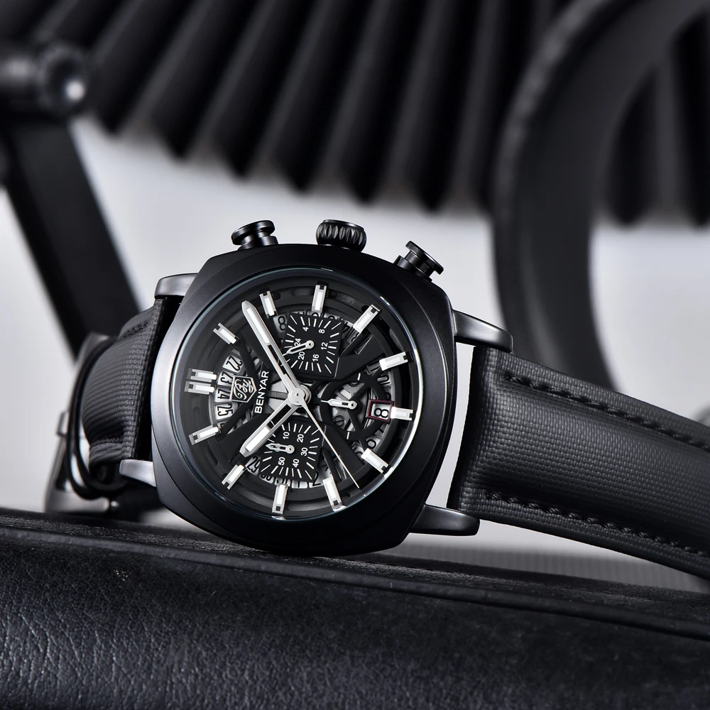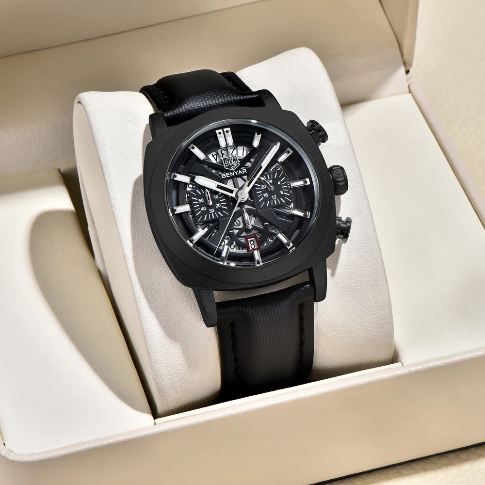 2025 Nuovi orologi da uomo BENYAR Orologi da polso al quarzo di lusso superiore Orologio cronografo per uomo Orologio sportivo in pelle impermeabile luminoso