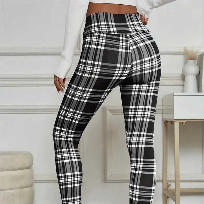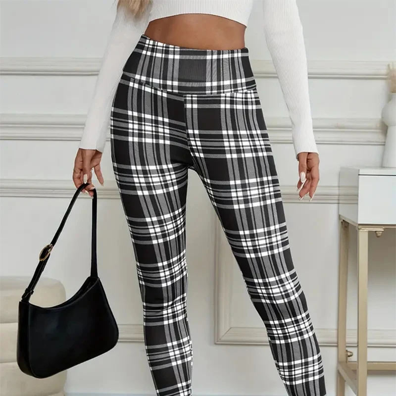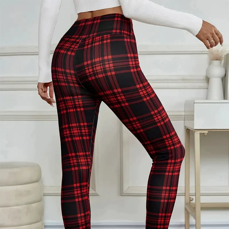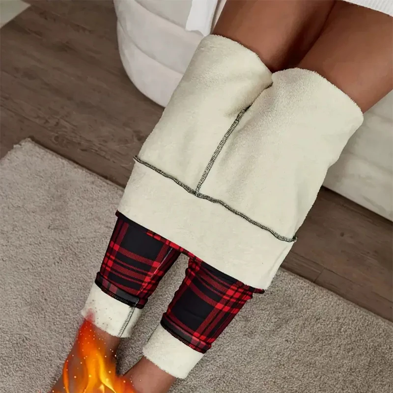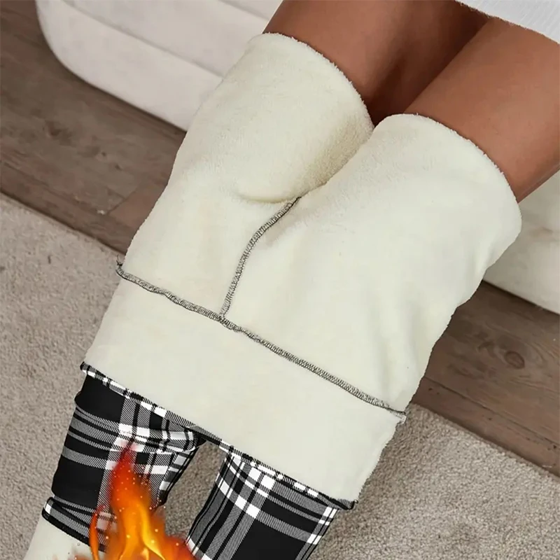 2025 nuovi pantaloni foderati in pile da donna scozzesi inverno sexy slim fit pantaloni di cotone alla caviglia donna leggings spessi elastici a vita alta