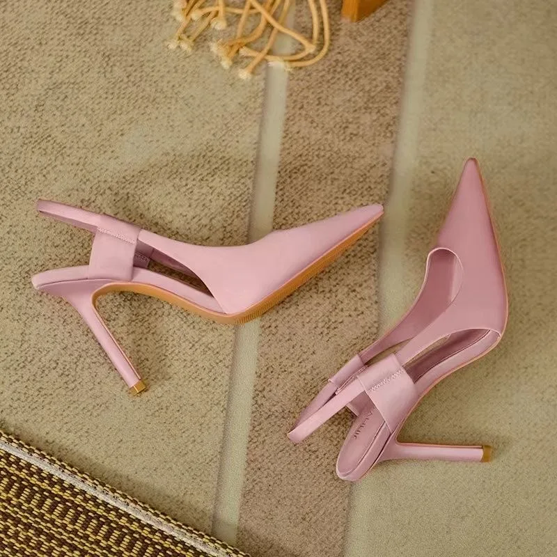 2025 nuovi sandali da donna con tacco alto fata rosa moda banchetto tacchi versatili punta a punta bocca superficiale scarpe da donna in morbida pelle